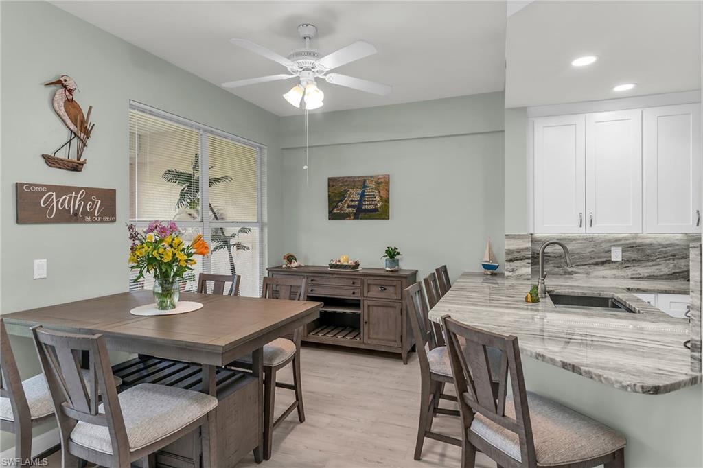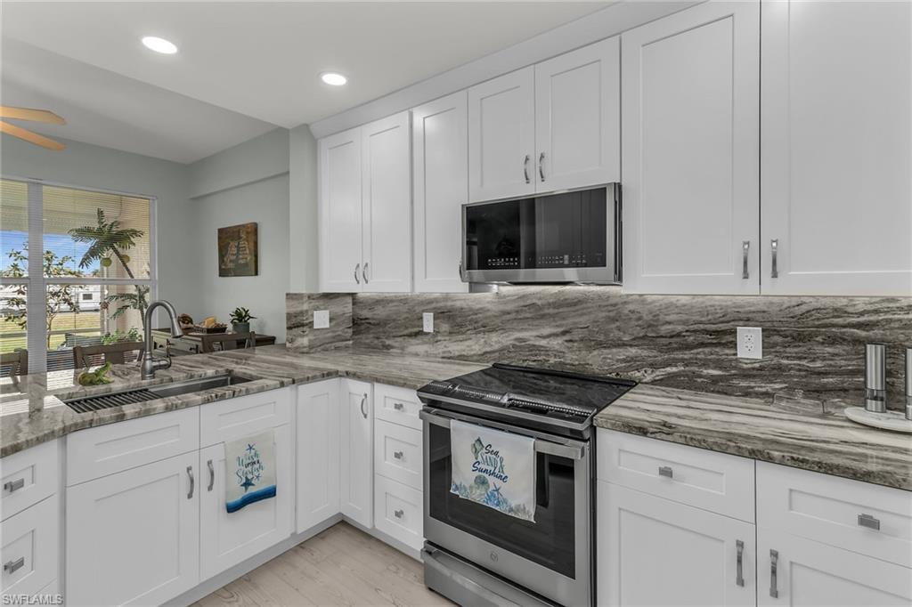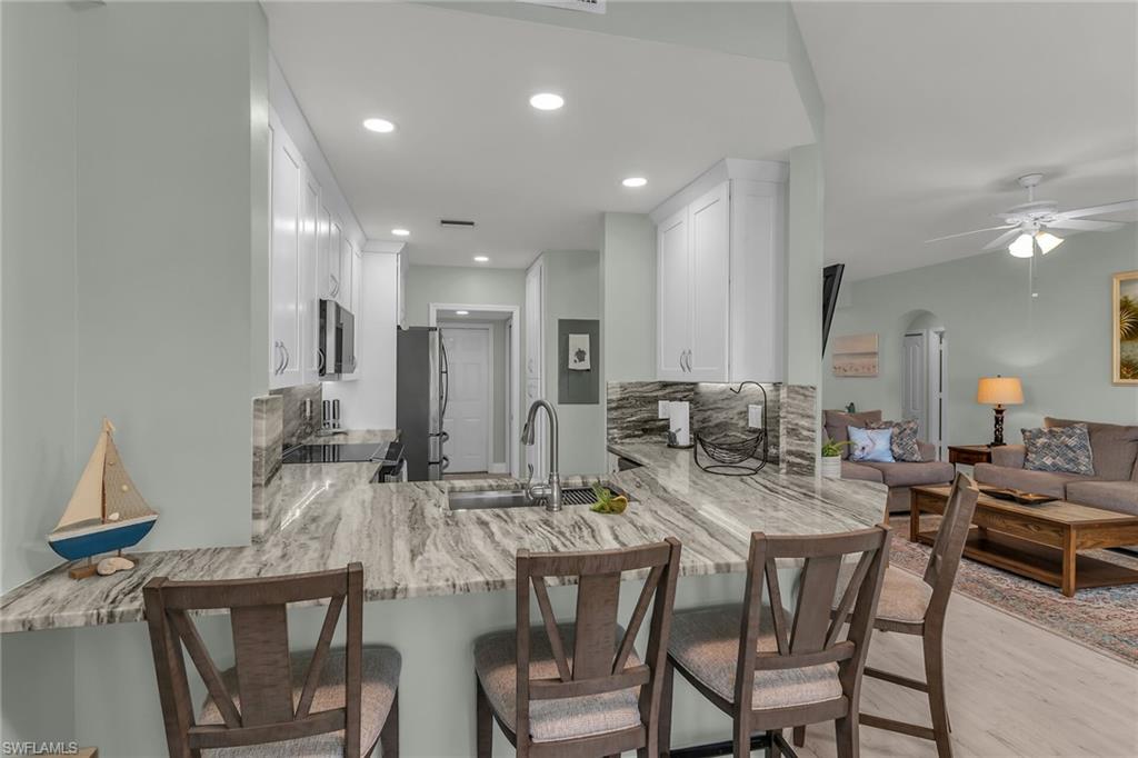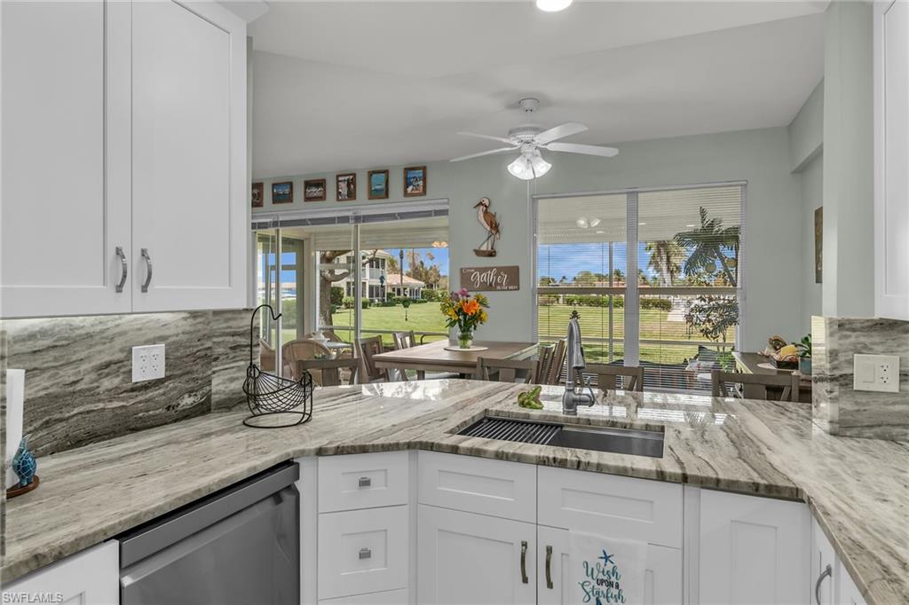 Welcome to a delightful coastal retreat in the heart of Port of the Islands, where your backyard leads straight to the Gulf of America. Nestled along the Faka Union Canal, Sunrise Cay Unit 102 is a first-floor 2-bedroom, 2-bathroom condo offering a seamless blend of comfort, style, and adventure - complete with an attached single-car garage, private boat slip, and Jet Dock. Step inside and fall in love with the light, bright interior featuring stunning kitchen upgrades, flowing granite countertops with rich natural patterns, stainless steel appliances, and beautiful white coastal cabinets that create a gourmet kitchen even the finest cooks would envy. The coastal tile flooring throughout the living area ties it all together, and open water views draw your gaze straight out to the Port of the Islands marina. Whether you're sipping morning coffee on the screened-in lanai or prepping your next boat day, every detail invites you to unwind and enjoy the Florida lifestyle. The boater's dream becomes reality here - with direct Gulf access through the Ten Thousand Islands, just minutes from your dock. Spend your days fishing the backwaters, beach hopping by boat, or cruising through scenic mangrove trails. When you're not out on the water, enjoy the community pool, meet friendly neighbors, and soak up the laid-back atmosphere of Sunrise Cay, a special enclave within Port of the Islands. Unit 102 offers incredible value for direct-access waterfront living - with no bridges and no compromises. Located just 20 minutes to Marco Island, 30 minutes to downtown Naples, and 15 minutes to local shopping and dining, Port of the Islands is one of Southwest Florida’s last hidden gems. You deserve to live it from sunrise to sunset. Start your coastal dream today at Sunrise Cay Unit 102.