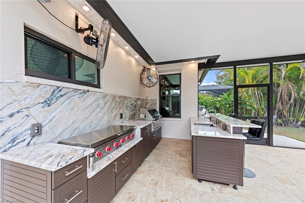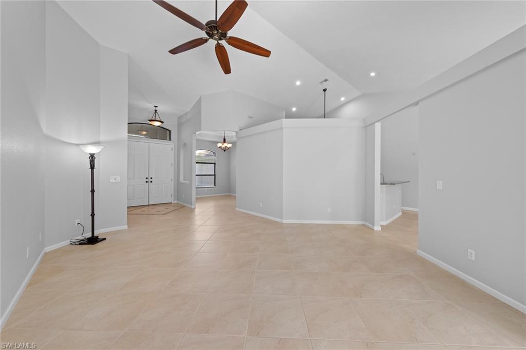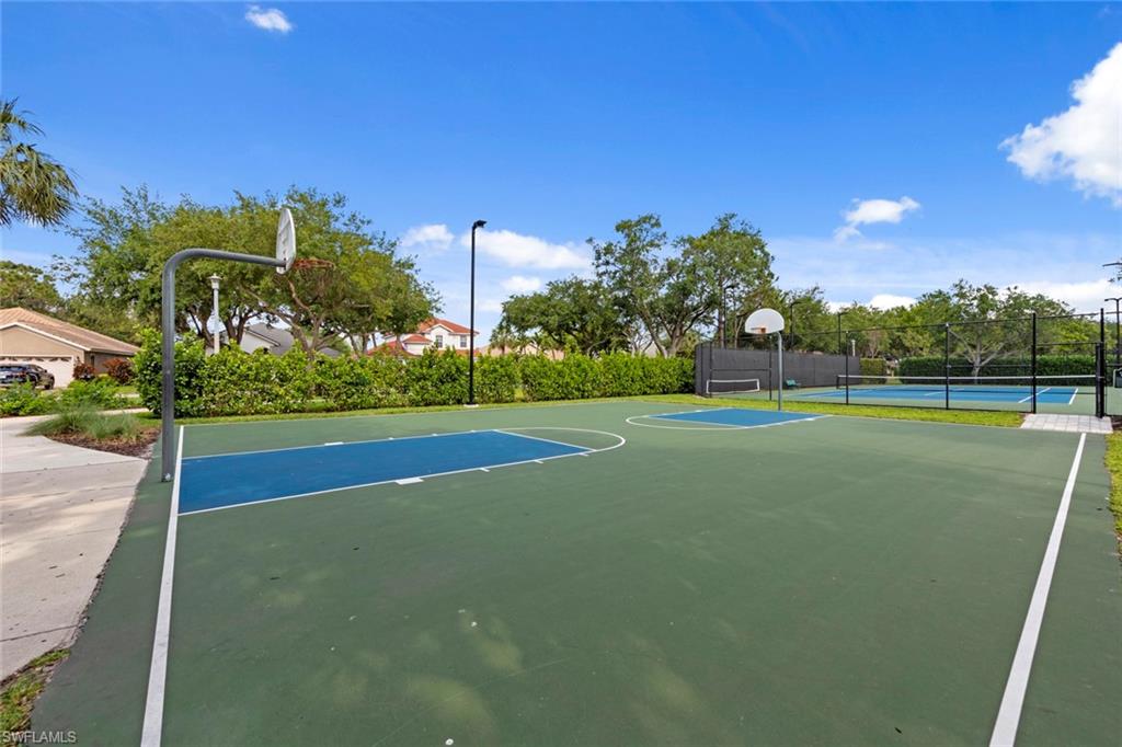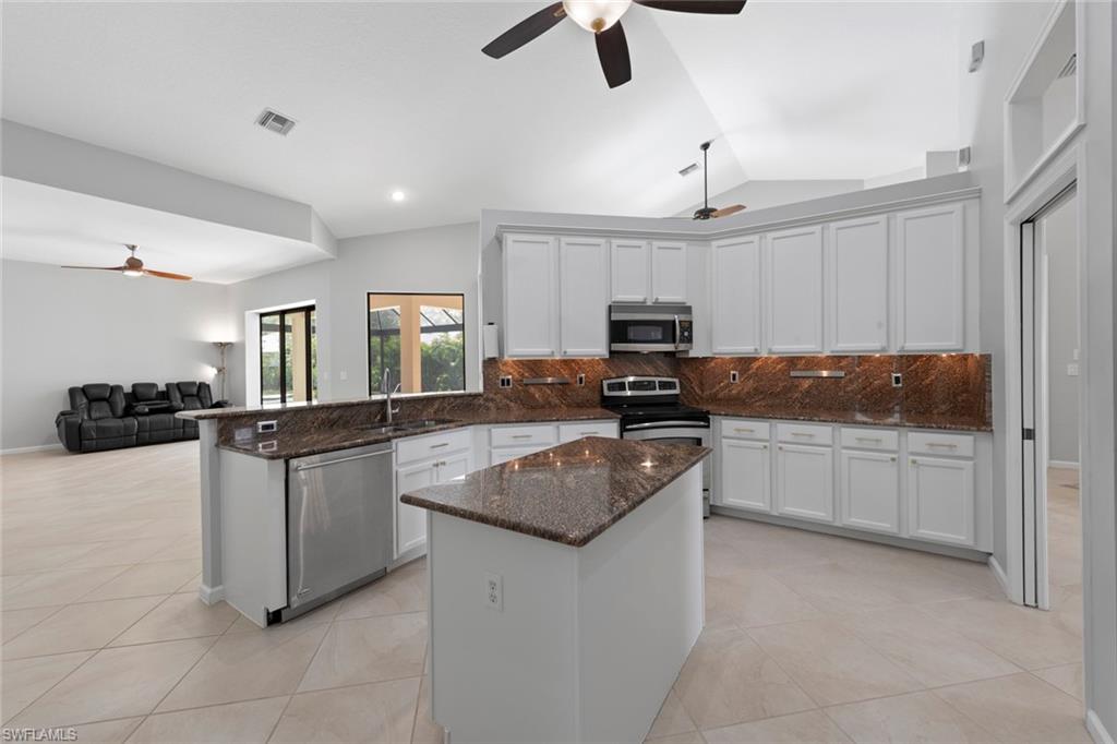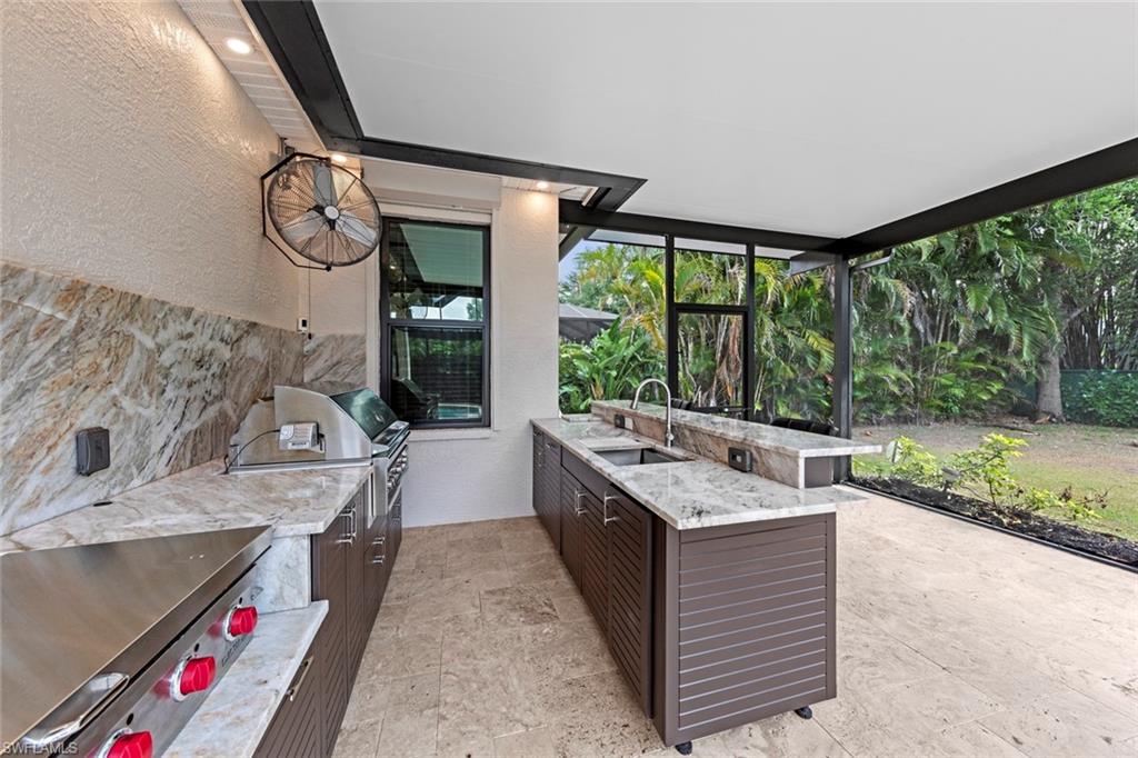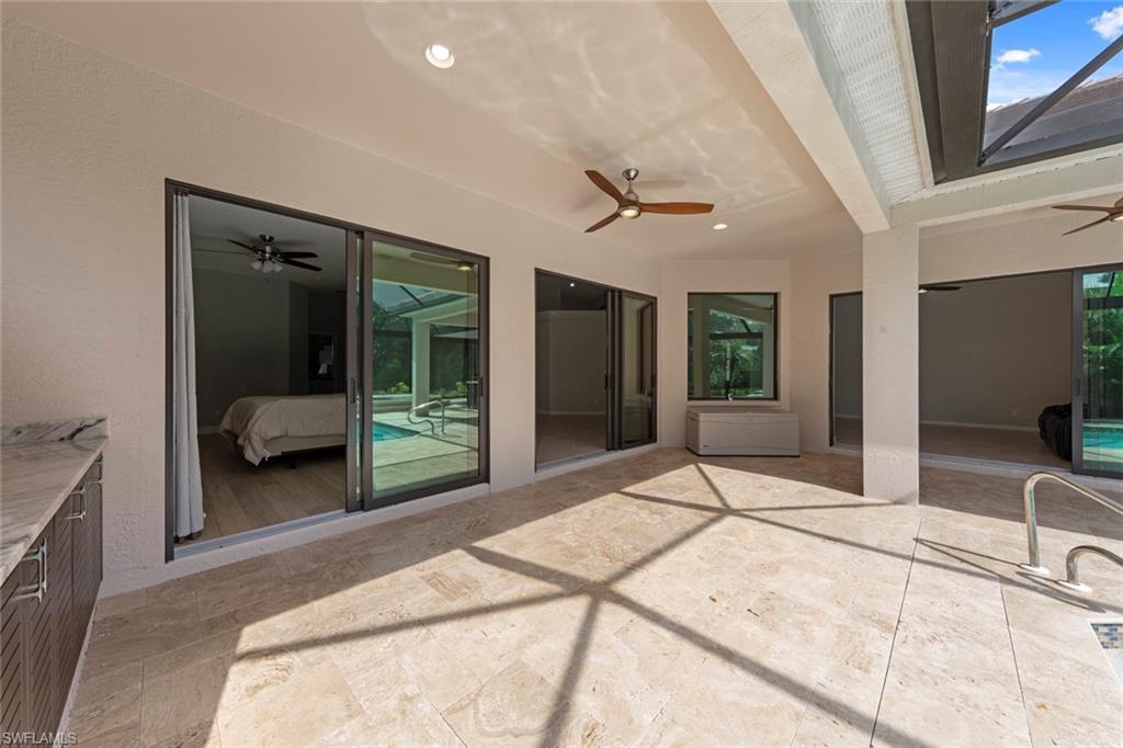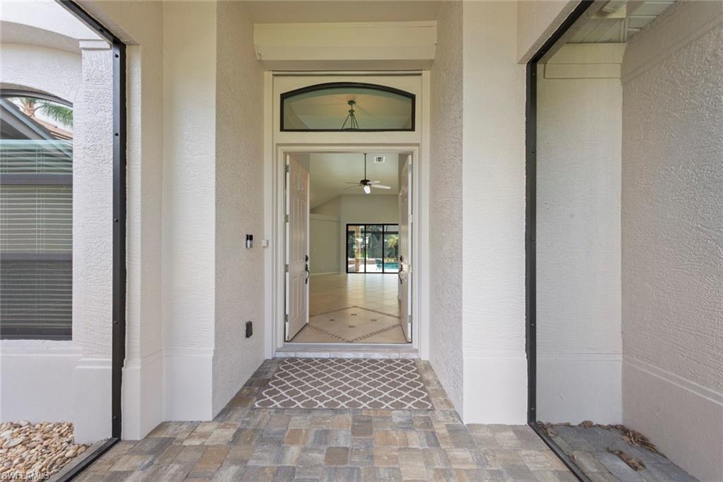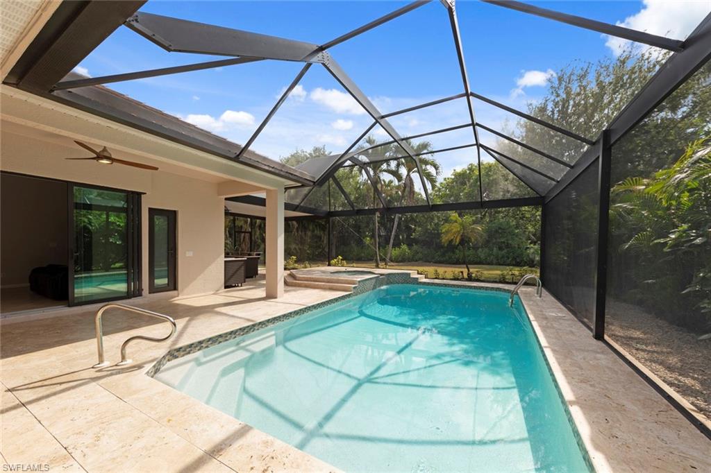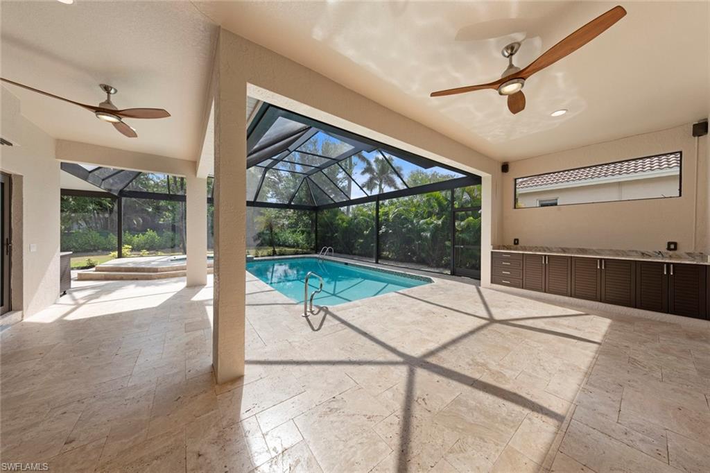 This rarely available Magnolia floor plan offers a flexible layout perfect for a variety of lifestyles. Thoughtfully designed split bedroom home offering four bedrooms and three full baths, family room with breakfast nook, over-sized living room and separate dining room. Whether you're working from home, growing your family, or looking for space to enjoy hobbies, this home checks all the boxes.. The true standout feature of this home is the newly remodeled outdoor retreat and grill lover’s dream kitchen. All new travertine decking, new extended cage are with insulated roof over a fully equipped outdoor kitchen—complete with a flat top grill, dishwasher, cabinetry, and more. Saltwater pool remodeled in 2021 with beautiful resurfacing and coping, app-operated Jandy system. Just beyond this amazing lanai is an abundance of private green space ideal for play or planting! More major updgrades: roof (2019), hurricane impact windows/sliders(2024), AC(2022), more to see on upgrade sheet. Autumn Woods offers a gated community with a clubhouse, fitness center, pool, pickleball, tennis, basketball, playground, and more—all in a prime location near top schools, Gulf beaches, and shopping/dining at Mercato and Waterside Shops.