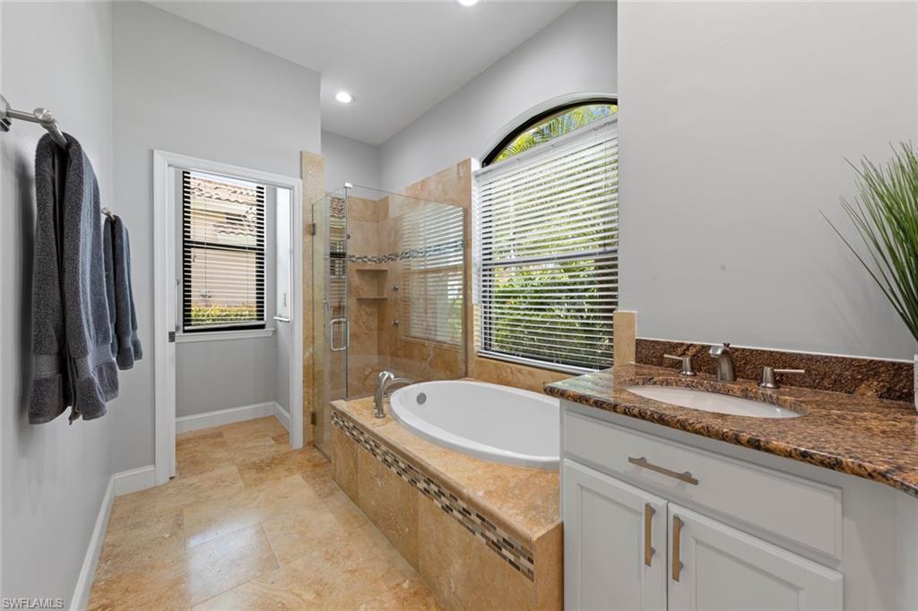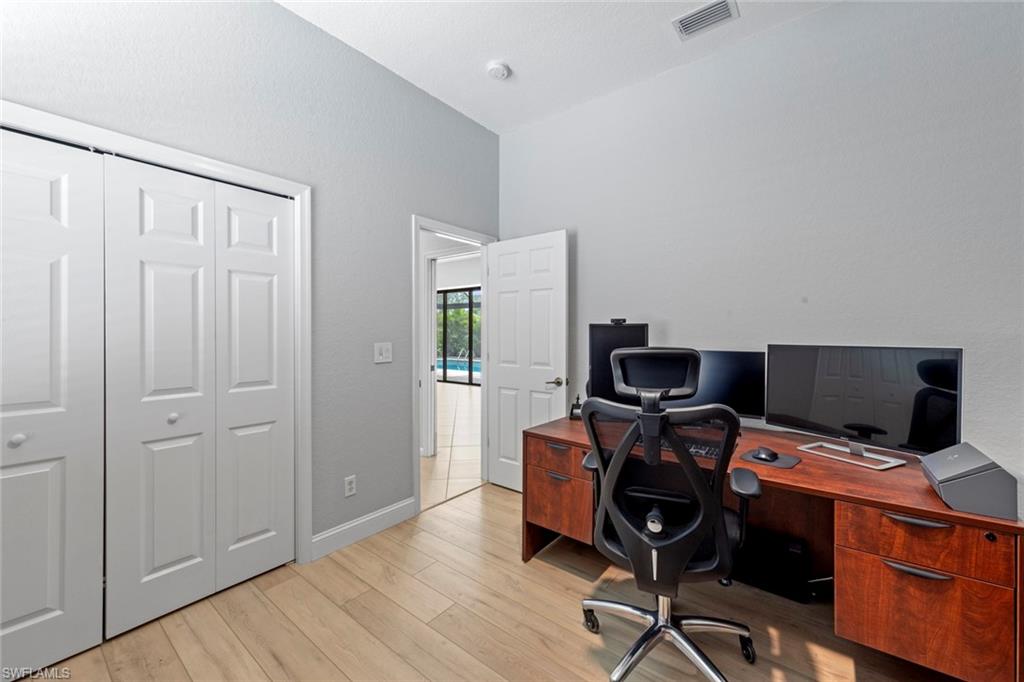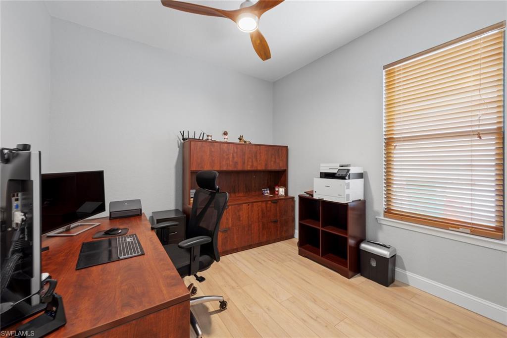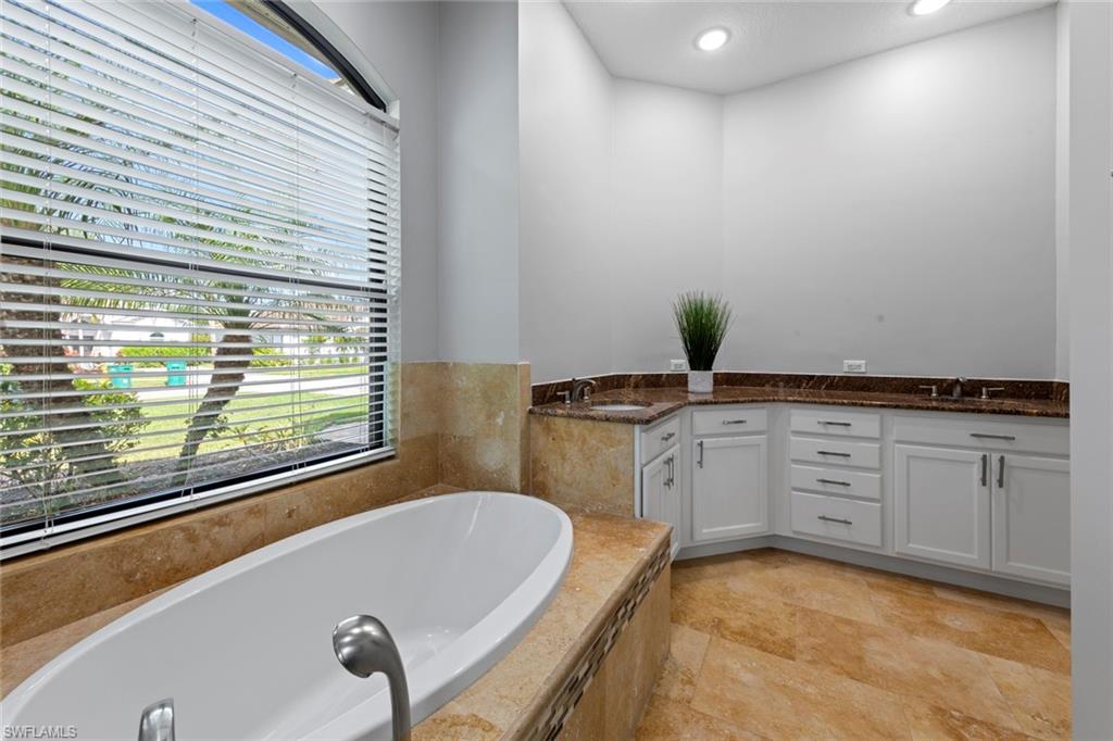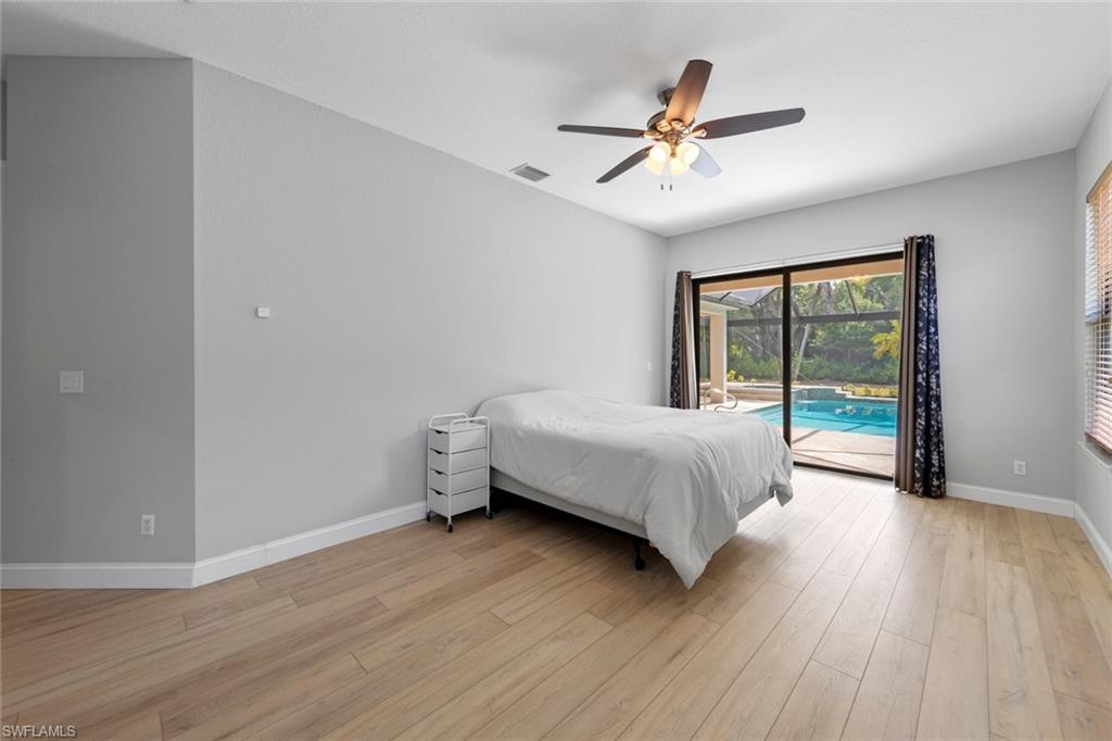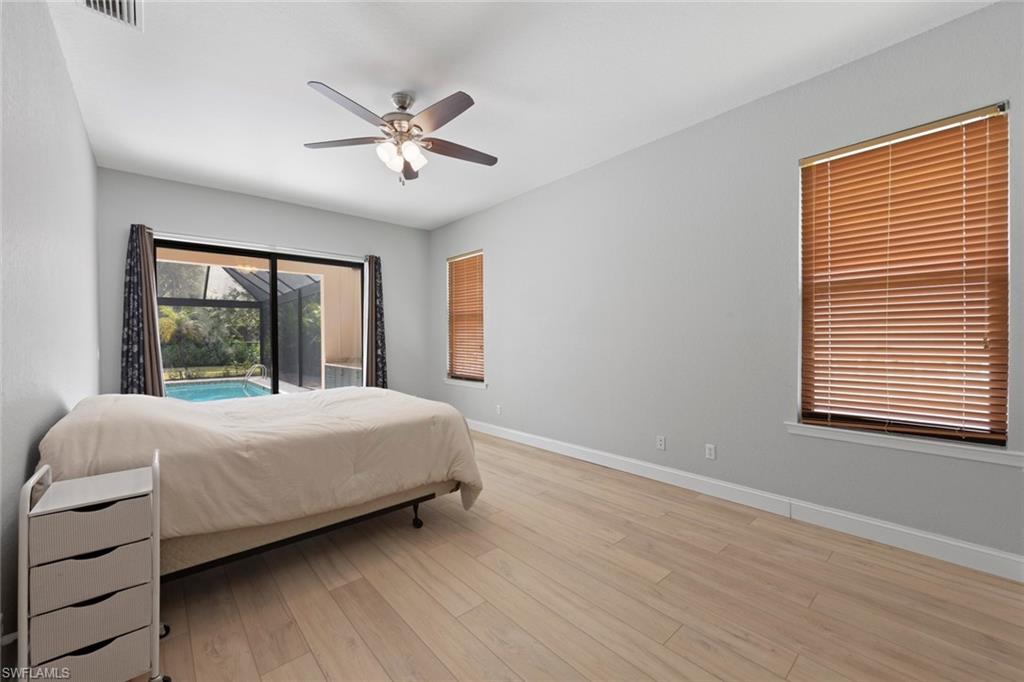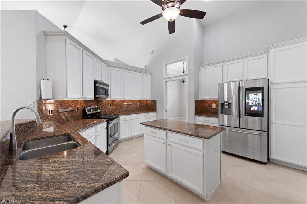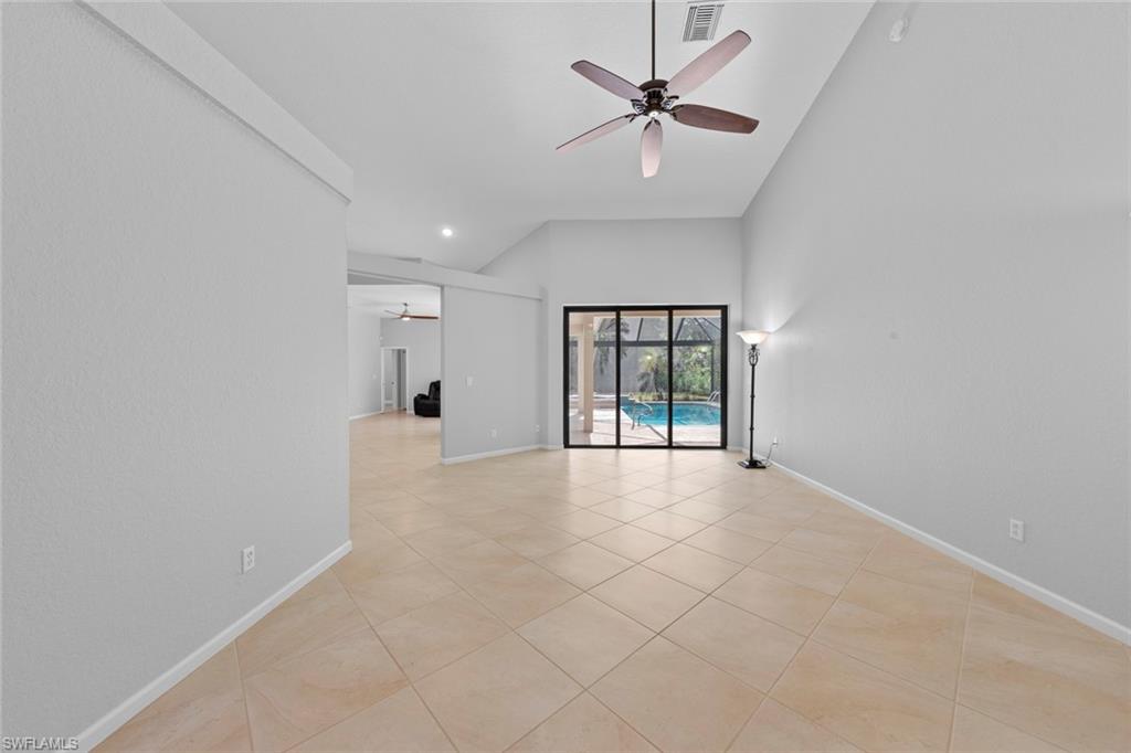 This rarely available Magnolia floor plan offers a flexible layout perfect for a variety of lifestyles. Thoughtfully designed split bedroom home offering four bedrooms and three full baths, family room with breakfast nook, over-sized living room and separate dining room. Whether you're working from home, growing your family, or looking for space to enjoy hobbies, this home checks all the boxes.. The true standout feature of this home is the newly remodeled outdoor retreat and grill lover’s dream kitchen. All new travertine decking, new extended cage are with insulated roof over a fully equipped outdoor kitchen—complete with a flat top grill, dishwasher, cabinetry, and more. Saltwater pool remodeled in 2021 with beautiful resurfacing and coping, app-operated Jandy system. Just beyond this amazing lanai is an abundance of private green space ideal for play or planting! More major updgrades: roof (2019), hurricane impact windows/sliders(2024), AC(2022), more to see on upgrade sheet. Autumn Woods offers a gated community with a clubhouse, fitness center, pool, pickleball, tennis, basketball, playground, and more—all in a prime location near top schools, Gulf beaches, and shopping/dining at Mercato and Waterside Shops.
