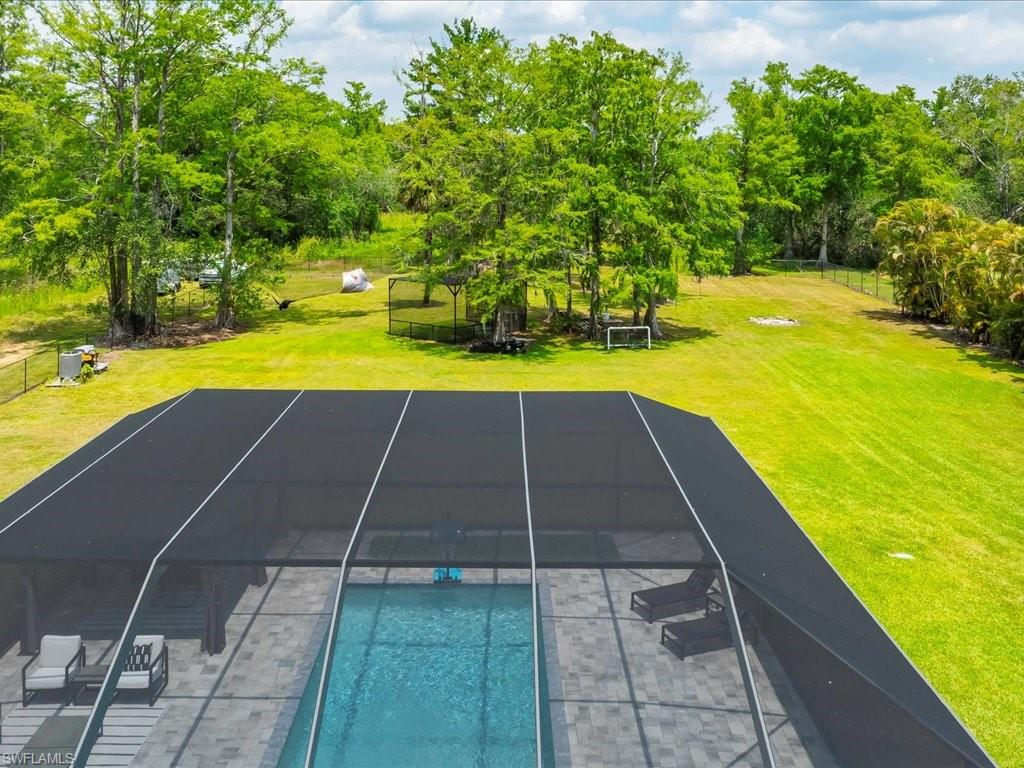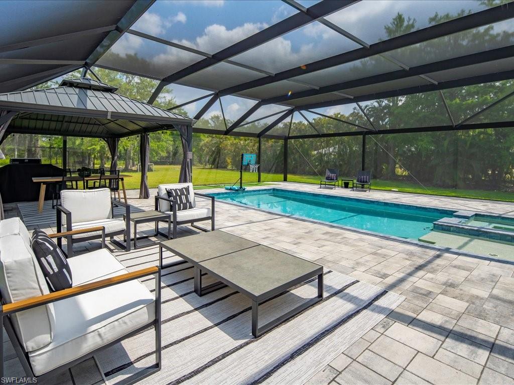 Modern luxe meets casual elegance in this sprawling residence featuring four bedrooms and two bathrooms in more than 2,400 square feet. Located in Logan Woods, this beautiful home boasts more than 2.8 acres and was fully remodeled in 2023 to create a practically brand new house with new A/C, new water heater, new roof (2022), new hurricane impact windows and doors, energy efficient spray foam insulation, new electric panels, new kitchen, new bathrooms, new well, new septic field (2024), whole home reverse osmosis system, new flooring, Lutron lighting, all new appliances, and much more. A 2,500-square-foot patio encloses a new saltwater pool with no-see-um screens, and plenty of space to enjoy the Florida sun. A detached three-car-garage will store your vehicles, as well as all of the toys needed to play in your spacious fully fenced yard featuring a fire pit and beautiful natural landscape. Don't miss your opportunity to live a carefree lifestyle with all of the luxury and none of the restrictions in this gorgeous estate home.