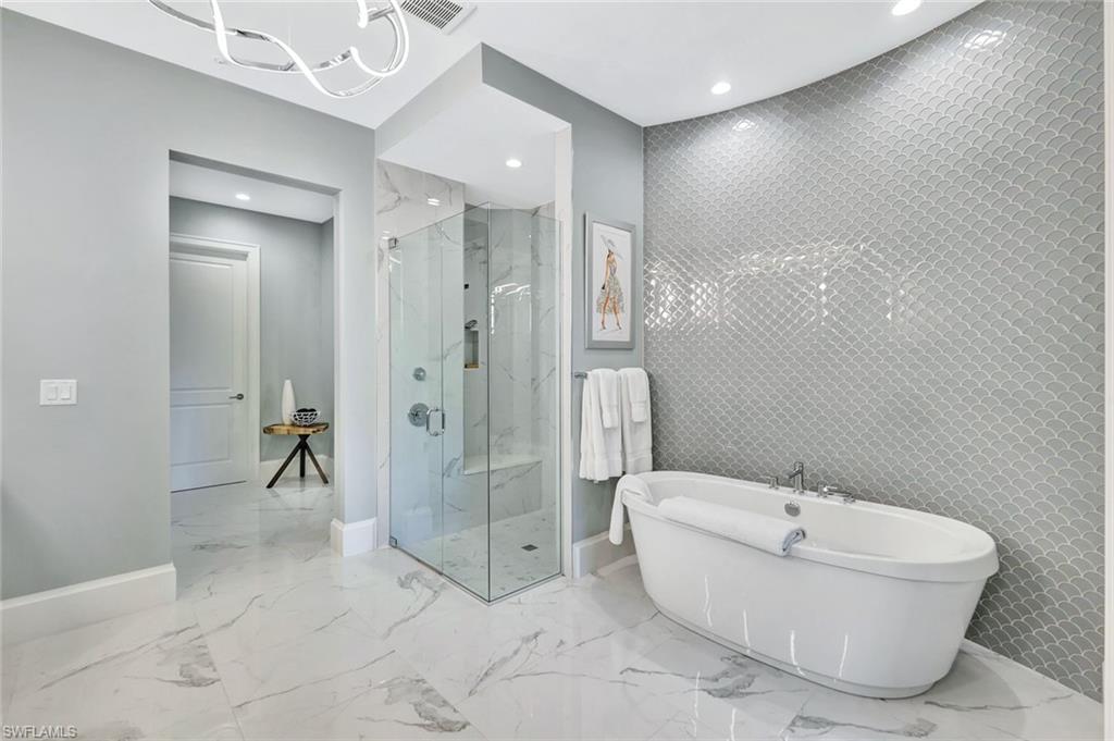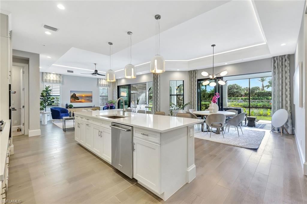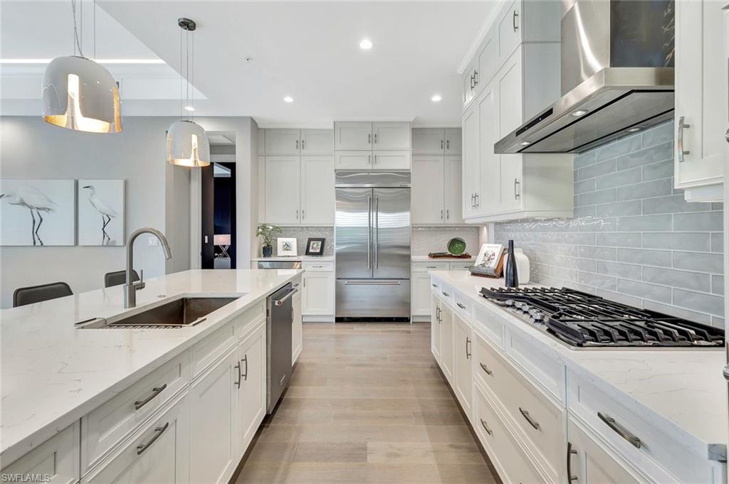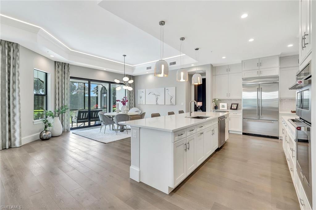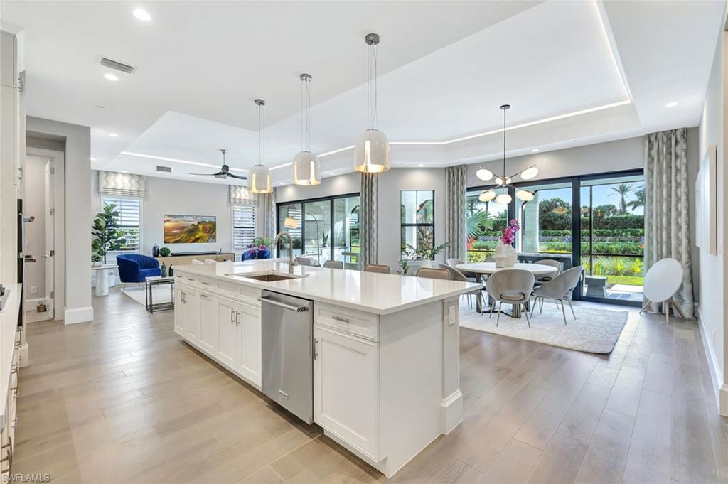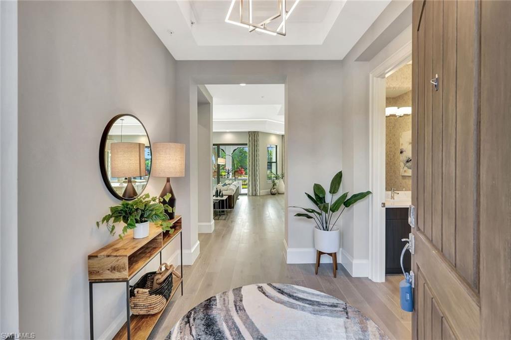 Back on the market in Talis Park! Updated with fresh, modern decor and refined contemporary finishes. This stunning first floor coach home (Messina Model) offers a little over 2500 square feet and boasts 3 bedrooms, 3.5 bathrooms, and a 2-car garage with all the upgrades you could dream of. Not only is each guest bedroom spacious, but they are also ensuites which is perfect for out-of-town guests. The stainless-steel appliances and gas cooktop in the kitchen are perfect for any home chef, while the 8' solid core 2 panel interior doors and crown molding throughout add an elegant touch to every room. The newer air conditioner with germicide light ensures a comfortable and healthy living environment year-round. Step outside to the outdoor kitchen with a new tile backsplash, perfect for entertaining guests on warm Florida evenings. The private screened lanai features marble flooring, creating a seamless transition from indoor to outdoor living. The garage is equipped with a lift for your golf cart, as well as extra shelving and a storage closet for all your organizational needs. This condo offers an elevated, move-in ready experience within one of Naples premier luxury communities. Talis Park's newly renovated golf course and driving range was designed by Greg Norman and Pete Dye and is ranked by Golf Digest as one of Florida's top 20 courses. A Short bike ride or golf cart drive to the clubhouse (voted Clubhouse of the year 2016 by Golf Inc. Magazine!) includes Core Fitness Center, Esprit Spa, Fiona’s Market Café, a resort style pool, and formal or casual dining in the award-winning restaurant. The community Sports Complex has 5 tennis courts, 4 pickleball courts, bocce, lap pool, and a dog park. A Sports Membership purchase is required. Don't miss your chance to own a piece of paradise in Talis Park, where every day feels like a vacation.