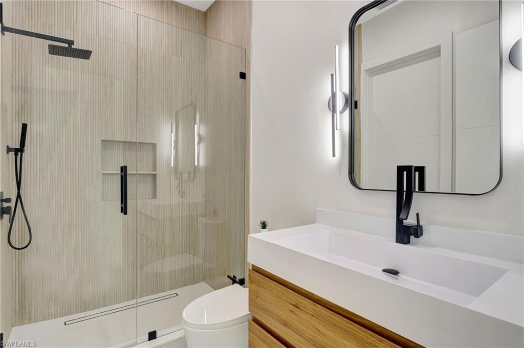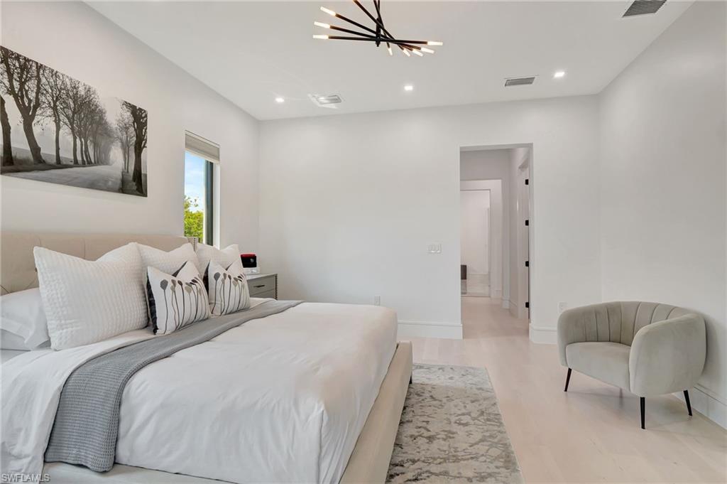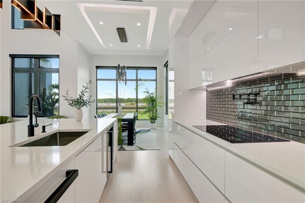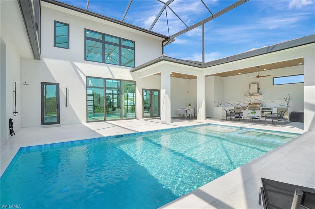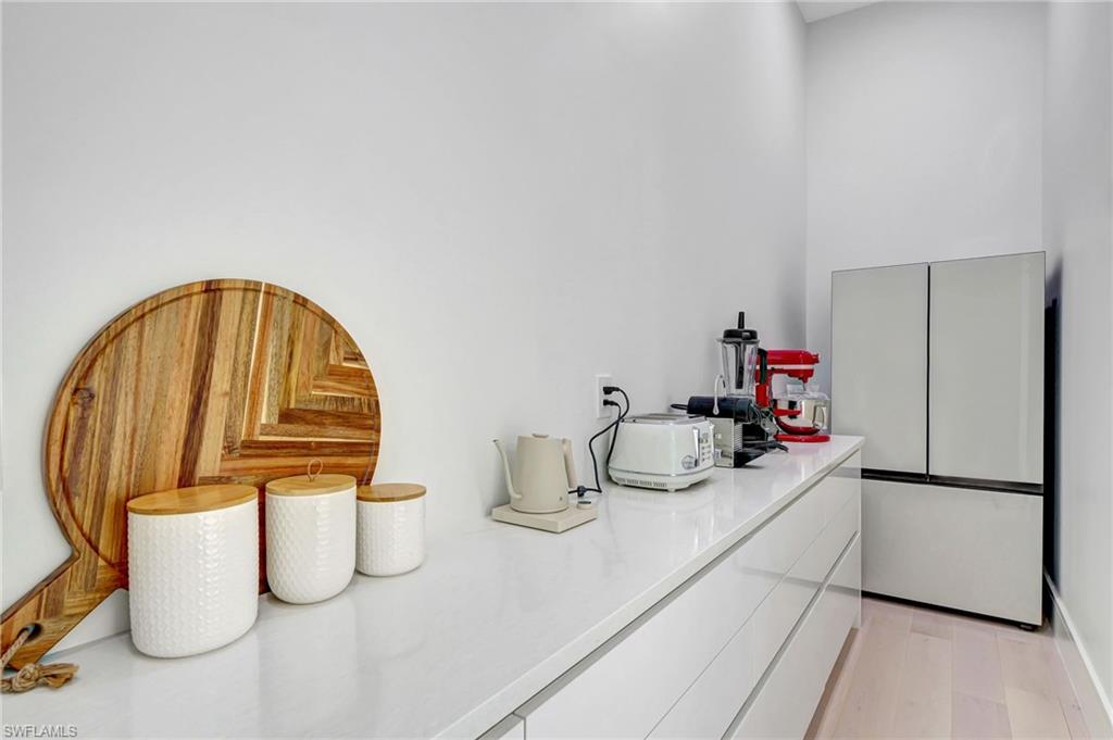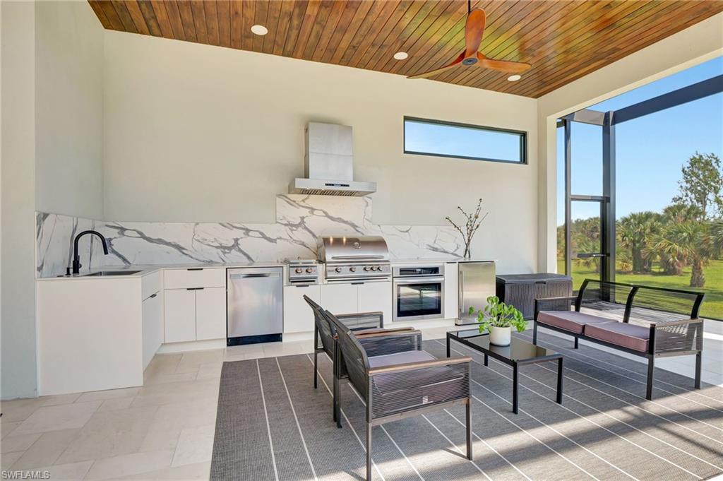 One of a kind custom design and build, on 2.27 Acres cleared, with beautiful palm trees lining the yard. No HOA Oversized master suite on ground floor and balcony overlooking pristine 160 acre lake. Corner office overlooking lake and yard. SUB ZERO APPLIANCES, hardwood floors, solid interior doors, impact resistant doors, windows, remote control black out shades. Located on the most beautiful and serene street in the Naples Estates. Butler pantry with 2nd refrigerator. 3 Bedrooms, Loft/TV room, Corner office, 3 full bathrooms and one ½ bath with access to pool. 22 ft high ceilings in the living and family room, 12 ft ceiling kitchen, 10ft ceilings throughout the rest of the house. Full outdoor kitchen with oven, dishwasher, grill, side burner and sink. Truly a unique peaceful corner of tropical paradise. Crew Bird Rookery Swamp Trails with 11 miles of nature trails is located at the end of Shady Hollow Blvd W, and Audubon Corkscrew Swamp Sanctuary with over 200 bird species located 2 miles away. Big Corkscrew Island Regional Park with pickle ball courts, tennis, basketball, soccer fields and an aquatic center is less than 2 miles away. Publix, CVS, dental clinic, and the Randal Curve development with car wash, health clinic, etc. are all within a 5 minute drive.