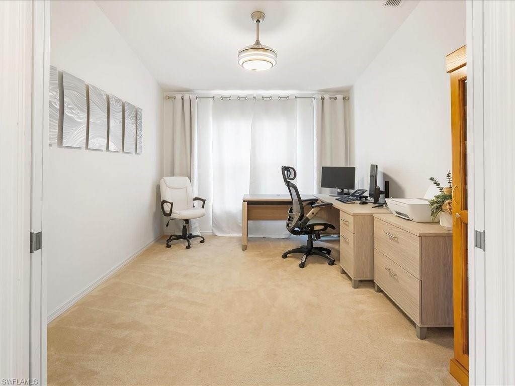 GOLF INCLUDED! This bright and spacious end-unit condo in Cypress Woods Golf & Country Club offers beautiful lake and golf course views! Featuring 2 bedrooms + a spacious den, 2 full bathrooms, and vaulted ceilings, this 1,250+ sq. ft. home lives large with an open-concept design and tons of natural light—thanks to the extra side window exclusive to end units. The NEW A/C unit (April 2025) adds peace of mind! Enjoy a split bedroom layout for privacy, an eat-in kitchen plus a formal dining space, and a screened western-facing lanai perfect for relaxing evenings. The primary suite features a walk-in closet and en-suite with walk-in shower. Cypress Woods is a bundled golf community—your membership is included! Enjoy a championship 18-hole golf course designed by Gordon Lewis, a renovated clubhouse with indoor & outdoor dining, resort-style pools & spa, tennis, pickleball, bocce, fitness center, and miles of walking and biking trails. This investor-friendly community offers excellent rental potential, and furniture is negotiable. Located in North Naples, you're just minutes from I-75, RSW Airport, beaches, shopping, dining, and top attractions like Mercato and downtown Naples. The owner says SELL—don’t miss your chance to own a move-in-ready golf condo in one of Naples’ most affordable gated golf communities!