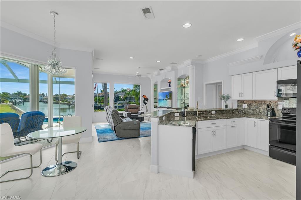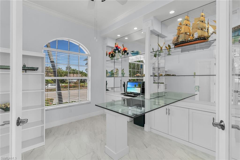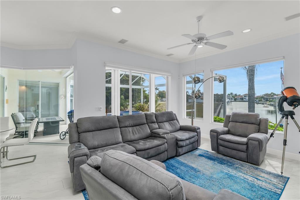 This exceptional home offers serene long water views and a bright, spacious design perfect for both relaxation and entertaining. The open floor plan features soaring volume ceilings and large windows, bathing the space in natural light from its southeast exposure. Details like elegant crown molding and a striking floor-to-ceiling window in the dinette add charm and sophistication. Hosting gatherings is a breeze with both a formal living room and a cozy family room, both of which connect seamlessly to the screened lanai and pool area. The lanai is your private retreat, ideal for lounging or enjoying the tropical surroundings. The thoughtfully designed split floor plan ensures privacy for the primary bedroom. This generous suite boasts a a tiled walk-in shower, a water closet, and an expansive walk-in closet. Both the den and family room include custom built-ins, offering additional style and functionality. The kitchen is a dream for the home chef, complete with a breakfast bar, dinette, pantry, and plenty of storage. Whether it’s morning coffee overlooking the water or preparing meals for loved ones, the space is both comfortable and practical. For boating enthusiasts, the property includes a dock and lift, granting easy access to the Gulf for your next adventure on the water. The Smokehouse Bay Bridge access offers attractive bridge clearance, which is another benefit. Enjoy the ultimate island lifestyle with the home’s convenient proximity to local shops, eateries, and the pristine sands of Residents’ Beach. Experience comfort, style, and a true sense of tropical paradise in this remarkable waterfront property. A rare find for those seeking elegance paired with everyday convenience.