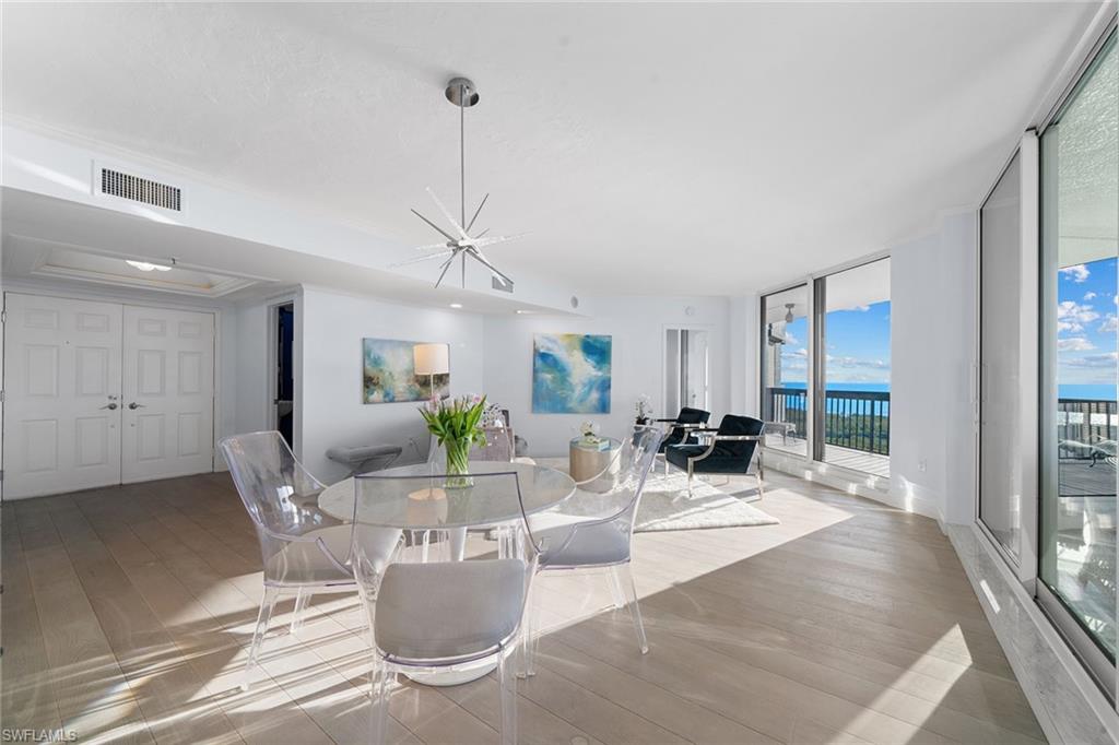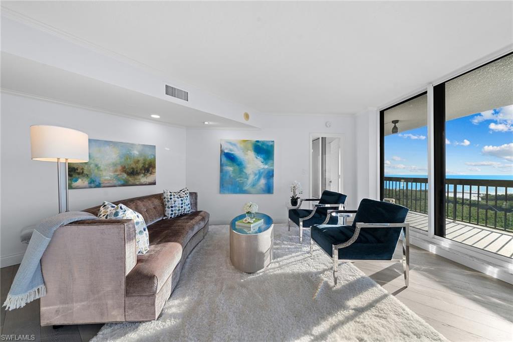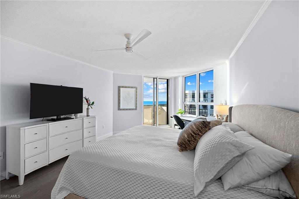 Best value with breathtaking views! Make an offer. Turnkey with exclusions. Perched in the sweet spot, the 14th floor, desirable 04 stack home delivers sweeping northwest-facing views all the way to Sanibel. Sunsets, gulf breezes & twinkling city lights await! Sky-high retreat features new hurricane-impact windows and sliders throughout, peace of mind and picture-perfect views from every room. Expansive 524-square-foot open lanai with no screens is a rare gem ideal for lounging, entertaining or simply soaking in the endless coastal panorama. Grosvenor desirable location just close to private South Beach and tennis courts. Recently modernized lobby and social room designed by EBL Interiors, secure under-building parking, three guest suites, three elevators, sunny lap pool and sundeck, barbecue, fitness and bike storage. Pelican Bay resort-style living awaits, exclusive access to private beach club, two beachfront restaurants, cabana service, and miles of pristine shoreline. Plus, 18 Har-Tru tennis courts and the exciting new racquets center in progress, featuring 20 pickleball courts plus additional tennis.