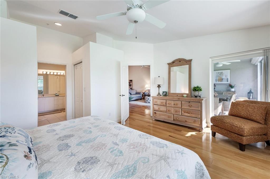 This is it! This is the one you have been waiting floor a fabulous second floor end unit Abbey model with a southern exposure and plenty of light! Over 1600 square feet of living space. Wood floors throughout the living area, meticulously maintained by the original owner with numerous upgrades and contemporary furnishings you will appreciate! Hurricane impact windows and sliders. Just move in and enjoy this beautiful property. This home has been well cared for and is sure to appeal to any buyer. All of this in one of Naples premier bundled golf and resort style communities that has it all featuring 550 acres of lakes and preserves. Lowest density of homes in any community of its type. Championship golf, tennis facility, pickleball facility, fitness center with fitness director and classes, clubhouse with indoor and outdoor dining, resort style pool with bar area and dining, driving range, putting green, nature trails. No road noise here just breathtaking southern exposure views of the golf course and lake. All of this and so close to Fifth Avenue and the majestic Naples beaches. This is that time to buy that Naples property and the Naples lifestyle. Come live that Naples lifestyle, you've earned it in fabulous Naples Heritage.
