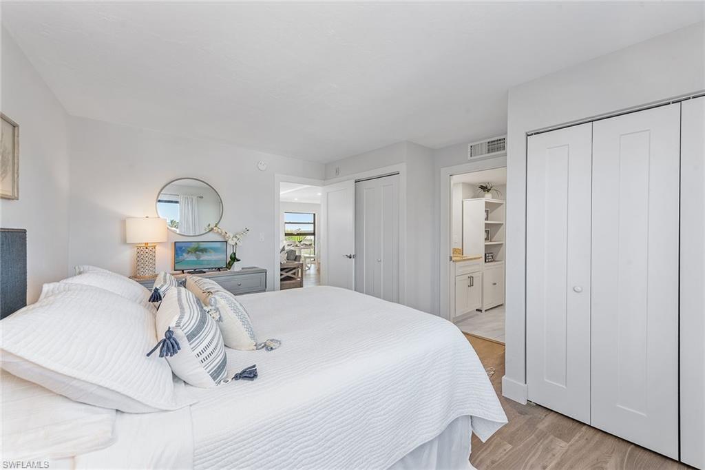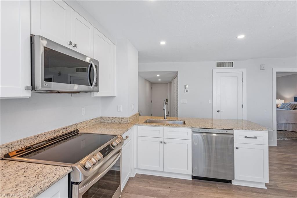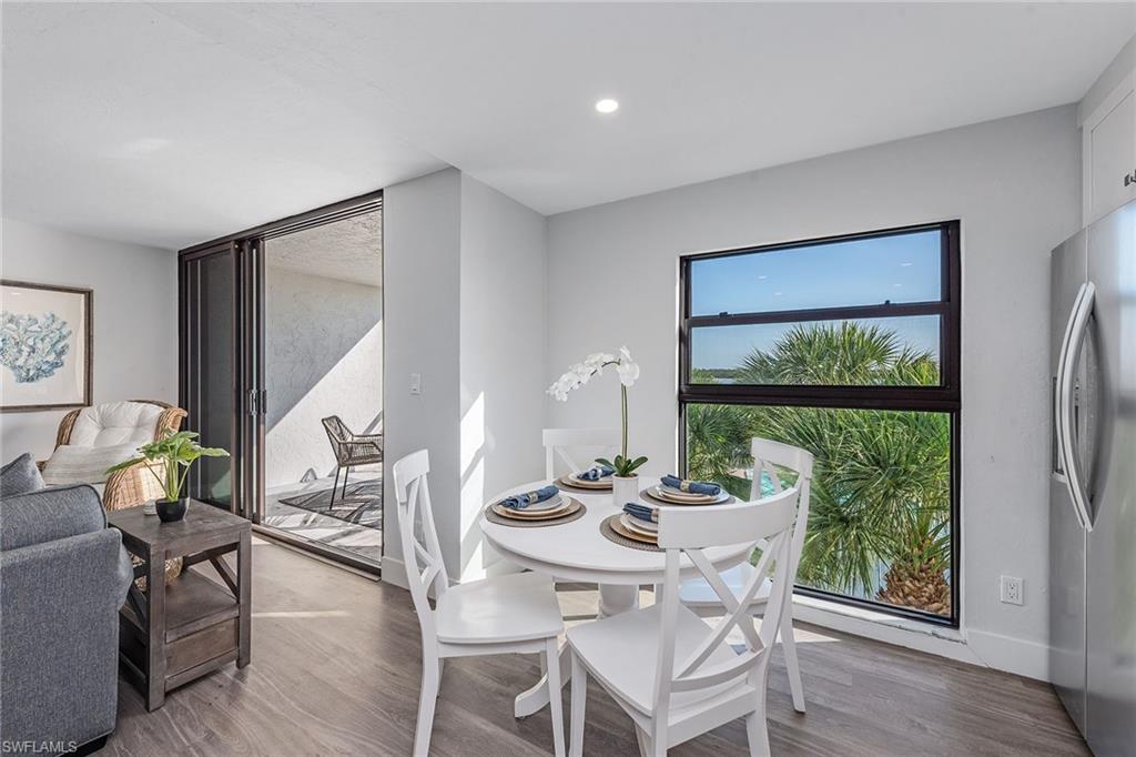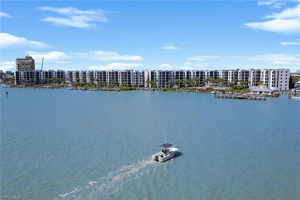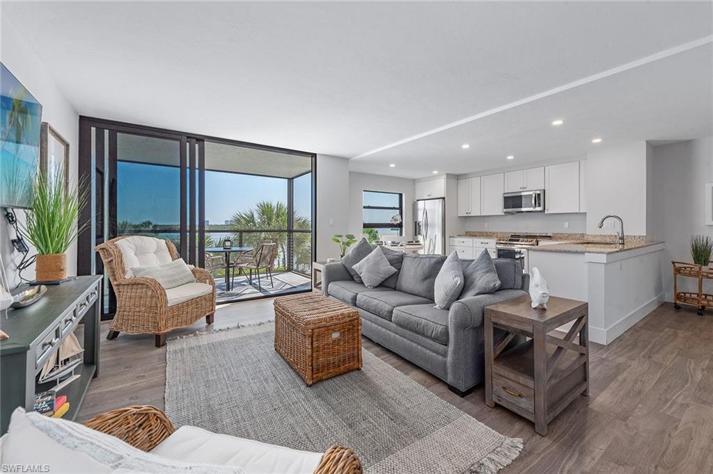 Wake up to breathtaking sunrise views overlooking the Marco River from this beautifully renovated one-bedroom, one-bathroom condominium, where modern luxury meets serene waterfront living. Offered beautifully turnkey furnished, this move-in-ready gem boasts wide open vistas of the water and pool, enjoyed best from your private balcony, ideal for morning coffee, shady evening relaxation and watching beautiful boats glide by. Step through impact-rated sliding glass doors and windows into an immaculate residence that has been thoughtfully updated throughout. From the moment you enter the welcoming foyer, you're greeted with recessed LED lighting, luxury vinyl tile flooring and a spacious closet with sliding doors, all setting the tone for the clean, contemporary design within. The kitchen features white cabinetry, granite countertops and LG stainless steel appliances, including a smooth-top electric range. An undermount stainless steel sink and durable flooring ensure function and style. The living room is bright and airy, thanks to the floor-to-ceiling impact sliding glass doors that frame the stunning water views. Step outside to the balcony to take in panoramic scenes of the river and pool, where the sunrise paints the sky in spectacular colors and boats create a dynamic, ever-changing backdrop. In the primary bedroom, you'll find continued attention to detail with luxury vinyl, soft fabric curtains, and two closets with wood-slatted shelving. The elegant bath offers a spa-like atmosphere, featuring granite vanity, undermount Kohler sink, subway-tiled walk-in shower and matte white porcelain tile flooring. This home offers storm protection, energy efficiency, and low-maintenance luxury in a prime waterfront location, ideal for year-round living or seasonal getaways. Enjoy unobstructed Marco River sunrise views—and a front-row seat to the river traffic. In the sought-after Riverside Club, this condominium offers far more than just stunning views. Enjoy world-class amenities including two sparkling swimming pools, tennis and pickleball courts, fishing piers, boat trailer storage and a boat slip available to lease. Fully equipped for renting or vacationing, the flexible rental rules make it an ideal investment opportunity or seasonal getaway. Start your day with breathtaking sunrises over the Jolley Bridge and wind down by watching dolphins play in the river. This prime location is just moments from world-famous waterfront dining, boat and bicycle rentals, Marco Island’s award-winning beaches, and endless outdoor activities like kayaking, paddleboarding and golf. Stay active with yoga on the beach, nearby gyms and scenic bicycling or explore local culture at the Marco Island Historical Museum, library and even nearby executive airport for convenience. All this comes with million-dollar views at a fraction of the price, so your tropical waterfront dream is ready to become a reality.