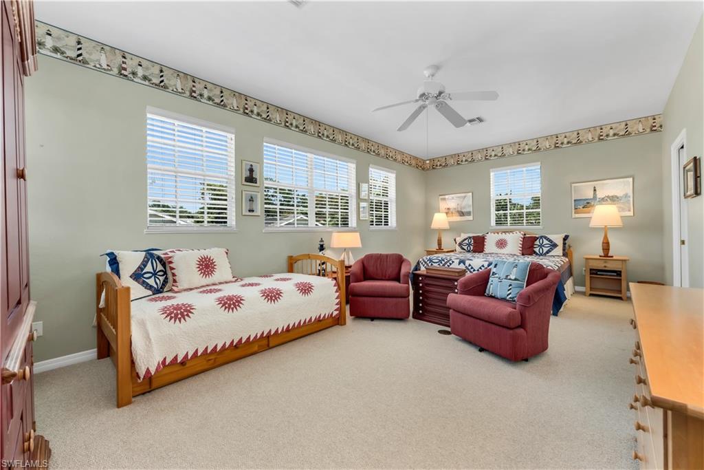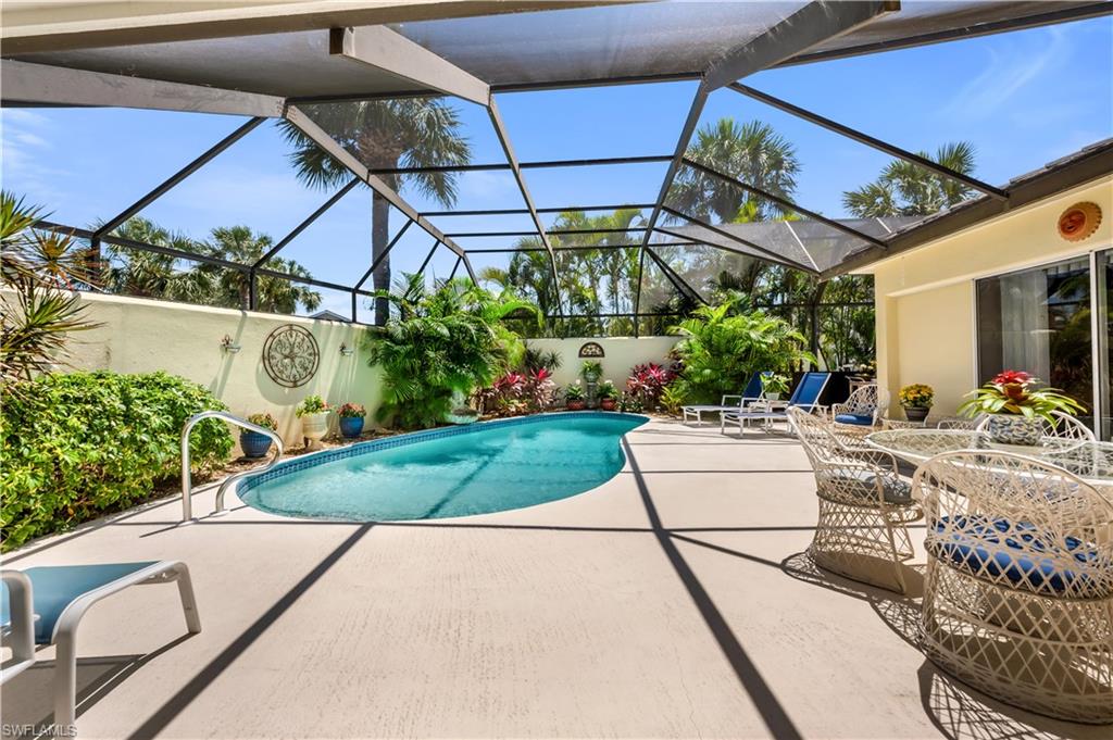 Incredible Opportunity JUST GOT BETTER! Welcome to this light-filled, end-unit 3+Den attached villa in the heart of Tuckaweye—one of Bonita Bay’s most cherished neighborhoods. Brimming with traditional, classic style and timeless charm, this residence offers the ideal blend of comfort, space, and versatility—ideal for year-round living or a seasonal retreat. From the moment you arrive, the welcoming entry courtyard sets the tone. Inside, the open great room floorplan flows seamlessly into a bright eat-in kitchen, with all sliding doors leading out to the spacious screened lanai—complete with a private, heated pool and tranquil fountain, lovely landscaping complete with custom lighting, all perfect for entertaining or relaxing in total privacy. The primary suite is thoughtfully separated from the guest accommodations and features a walk-in closet, dual vanities with elevated sinks, and a private water closet. The main-level guest suite offers its own ensuite bath, while the custom designed and built upstairs guest house—a welcome addition-offers full living and sleeping quarters, a walk-in closet, wraparound windows, and a full bath. This flexible space is ideal for visiting friends and family or could easily serve as a second primary suite or media room. Additional highlights include a den/flex space, a 2-car garage, and lovingly maintained interiors ready for your personal touch. Located on a desirable corner lot, this villa is just steps from Tuckaweye’s community gathering patio—fostering a friendly, social atmosphere. Enjoy all the amenities Bonita Bay has to offer, including miles of walking trails, numerous parks, business and fitness center, private beach club access, and optional golf and club memberships.
