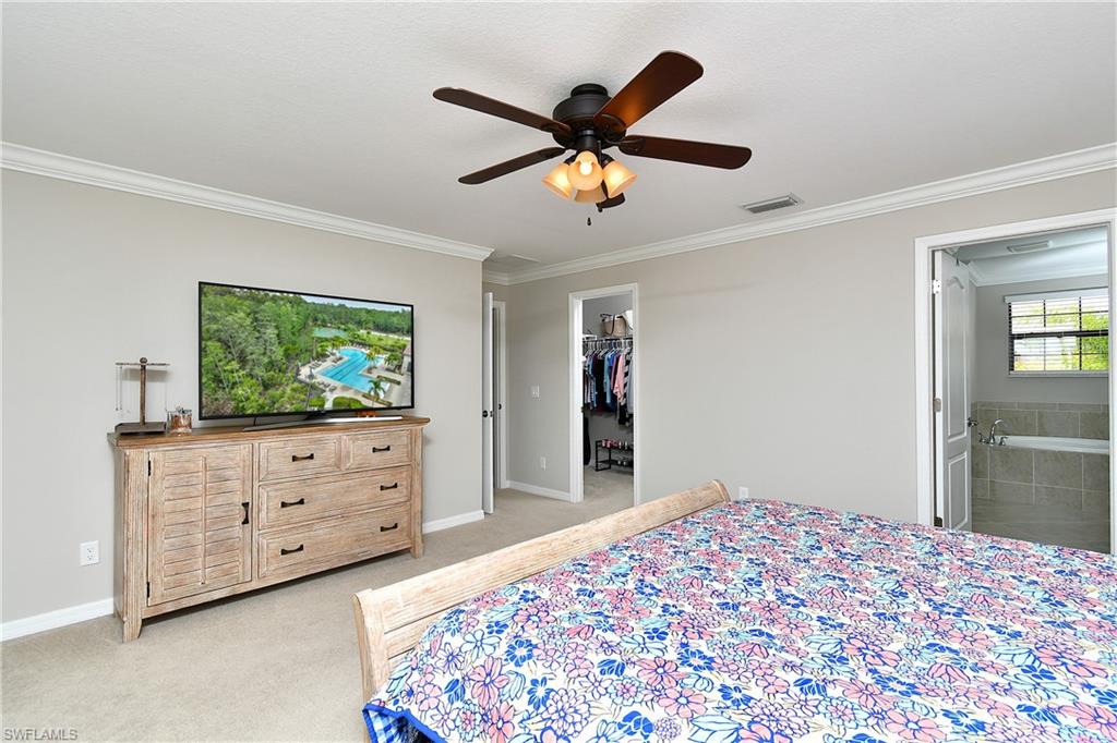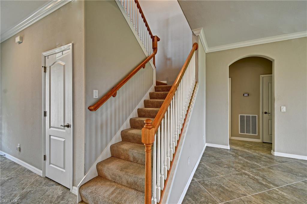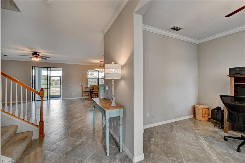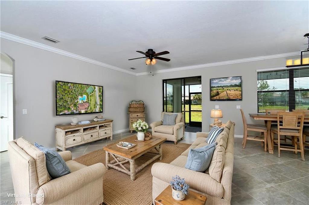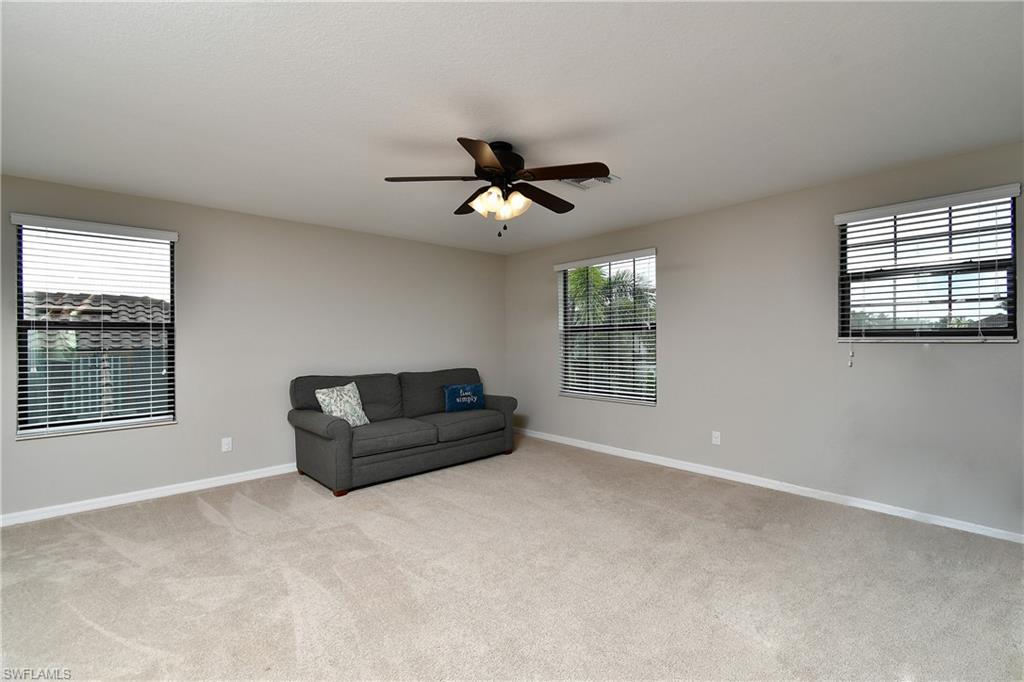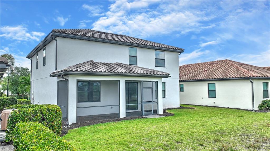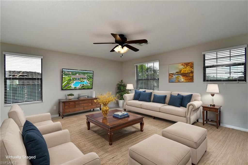 PRICED TO SELL! This lakefront home features 4 Bedrooms(all with walk-in closets) +Den(flex room) with 3 full baths and room to add a pool. There is a living room downstairs and a large loft area upstairs to make it yours to fit in with your family lifestyle. The first floor living space has crown molding throughout the open concept LR, dining, kitchen areas, along with the office/den (flex room). This flex room can be used as a formal dining rm, office, or a den; The first floor has tile flooring throughout except for the guest BR which has carpet; Nice features to make note of is a 1st floor guest BR; full bath; laundry room; on the first floor is a closet with a large extra storage space that goes back under the steps; and finally a nice sized screened lanai area off the LR. The second floor features: crown molding for both the Master bedroom & bathroom ensuite (dual vanities, separate tub, shower and private lavatory; Two other bedrooms and a full bath that includes dual vanities and a separate area with the tub/lavatory; and finally the large Loft/family room area. PLEASE SEE THE VIRTUAL TOUR LINK AND PICTURES TO VIEW WHAT THIS HOME HAS TO OFFER. This lovely smaller gated community with only 363 homes has 184 acres dedicated to 72 acres to nature preserves and 13 lakes that includes the community amenities such as a Resort style swimming pool w/lap lanes and spa, along with a state of art fitness center, making this community a pleasant natural environment to make it your new home so you can start enjoying the Florida Lifestyle. Take advantage of this PRIME LOCATION and what it has to offer: Easy access to nearby area beaches(ex:15 minutes to Vanderbilt Beach), shopping, golfing, world class dining, entertainment, medical/health facilities and only 30 minutes to the SWFL airport. There are NO CDD fees added to your taxes, NO TRANSFER FEES and has LOW HOA Fees. Finally, NO flood issues since the home was built in 2018.