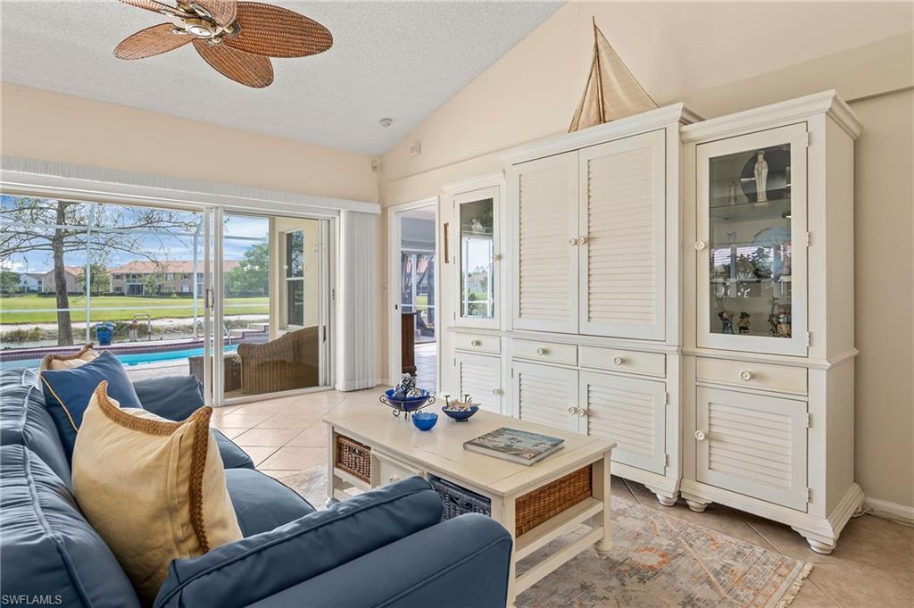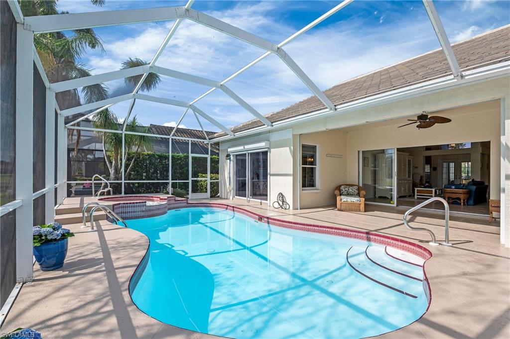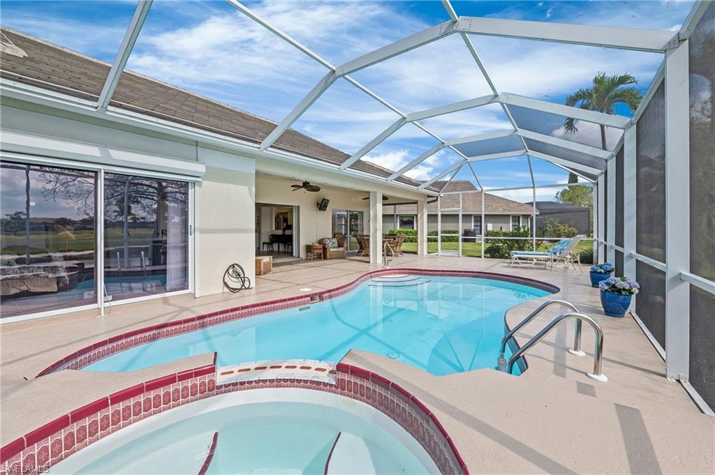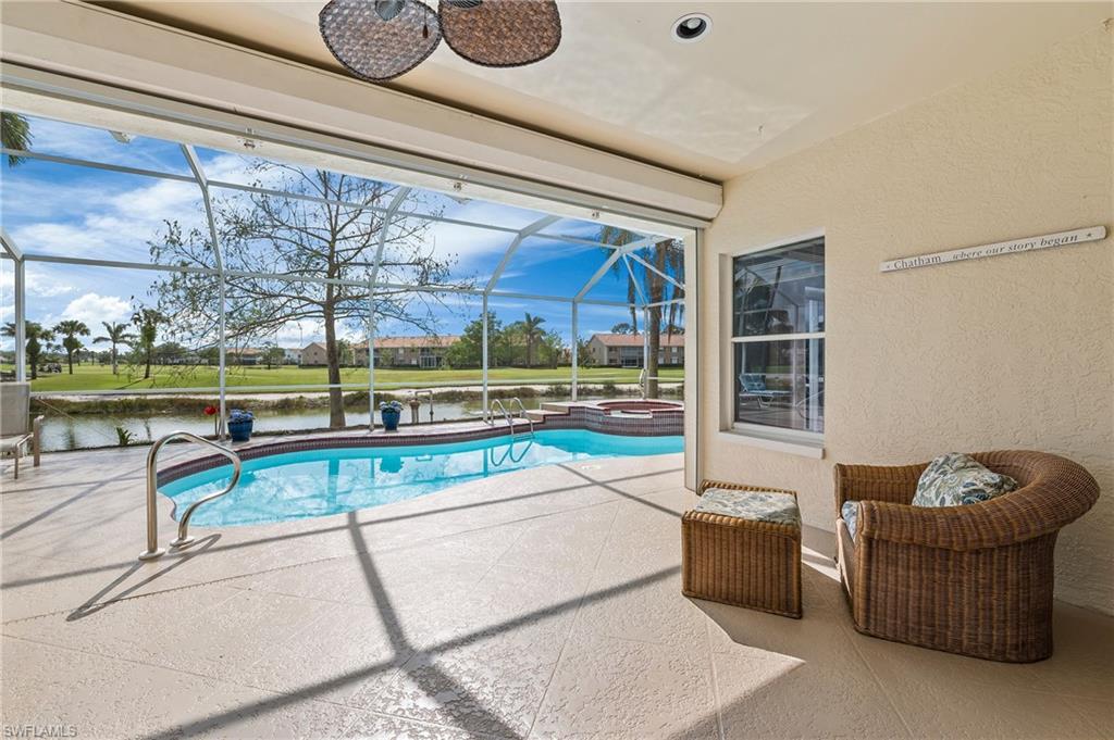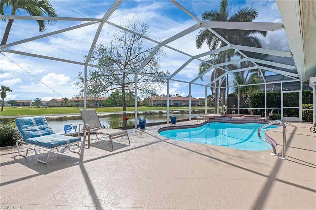 Attention GOLFERS: FULL GOLF MEMBERSHIP is deeded to the property! Tee off into luxury! This WATERFRONT POOL and SPA home, nestled in a prestigious gated golf community of Glen Eagle, offers an enviable lifestyle beyond compare. Imagine mornings on your lanai, overlooking breathtaking water and golf course views, followed by a refreshing dip in your private pool and spa. With an INCLUDED FULL GOLF MEMBERSHIP, you'll have exclusive access to the community's pristine greens. This beautiful home with great curb appeal has the best spot on the lake, it features 3 bedrooms, 2 bathrooms, formal dining room, spacious kitchen with new stainless-steel appliances, breakfast bar and breakfast room. Being sold furnished (with a few exclusions). Large main bedroom with beautiful pool and lake views, double glass doors that walk out to the lanai, walk in closet and a regular closet with a storage above it, new spacious shower and double sinks. 3rd bedroom with French doors. Laundry room with utility sink and cabinets above washer and dryer. Tile floors throughout, no carpets! Built in speakers and intercom system. Open floor plan, lots of natural light and vaulted ceilings make this residence a truly special home. Very spacious screened in lanai (freshly painted) with electric shutters. New flat tile roof (2019). Extra-long driveway with pavers. Rest easy knowing this property is not located in a flood zone, ensuring added peace of mind for your investment. This beautifully maintained gated community is complete with 24-hour guard service for your safety. FULL GOLF MEMBERSHIP deeded to the property, grants you access to the 18-hole par-70 championship golf course designed by the renowned Gordon Lewis. This luxury community comes with premium amenities, including the Divot Café, 19th Hole Restaurant with private dining options, a full-service fitness center with classes, tennis and bocce courts, and a community pool. For those golfers looking to gain extra practice off the course, the private simulator room can be rented out per hour for training and private events. This isn't just a home; it's a lifestyle. Don’t miss your chance to call this stunning property your own! Schedule your private tour today and experience this magnificent waterfront sanctuary!