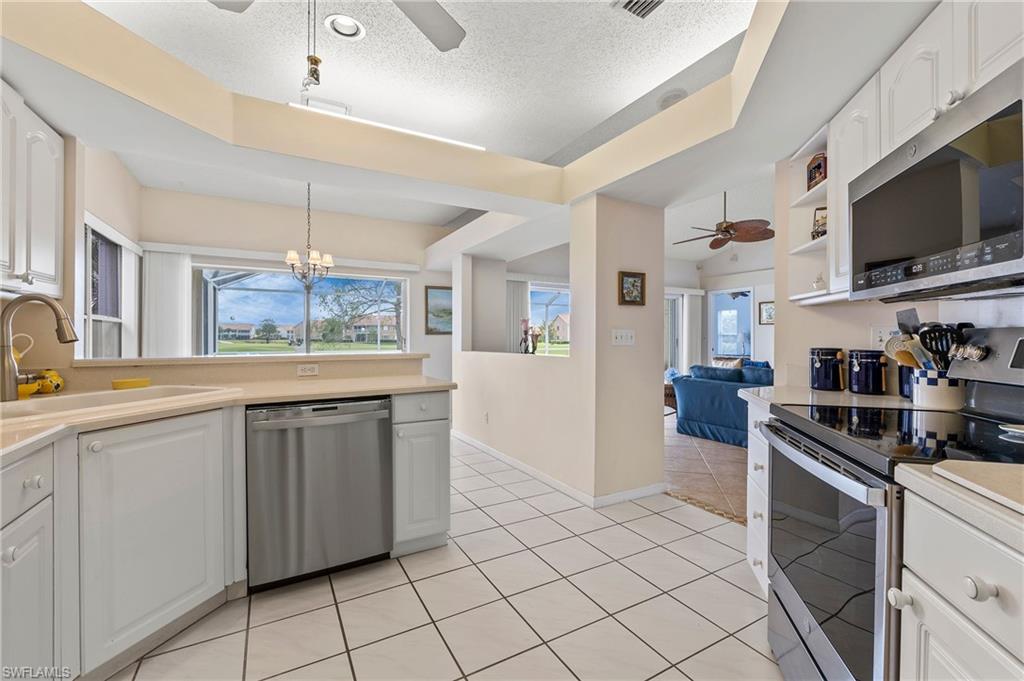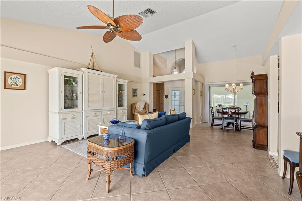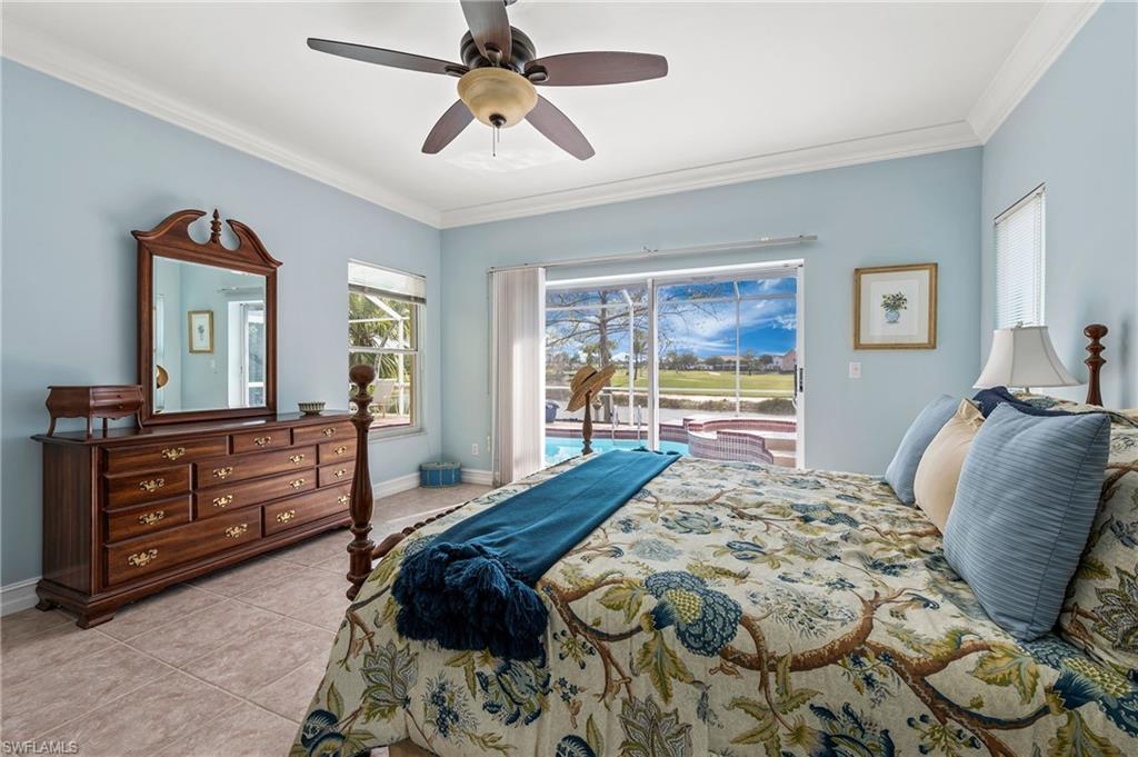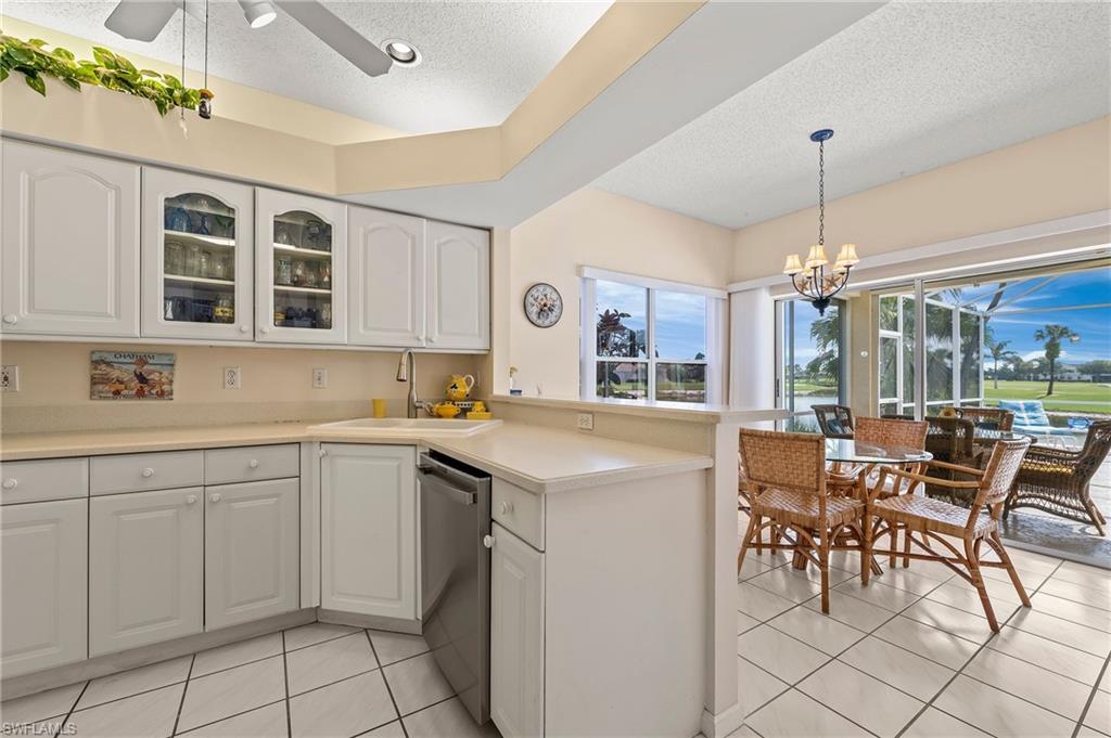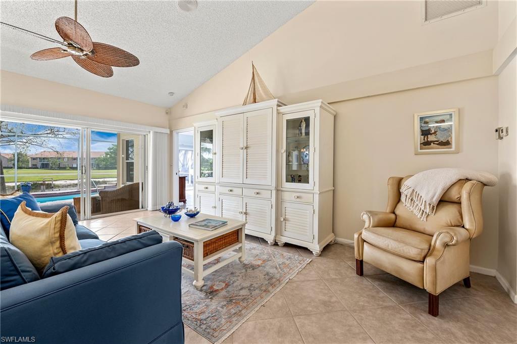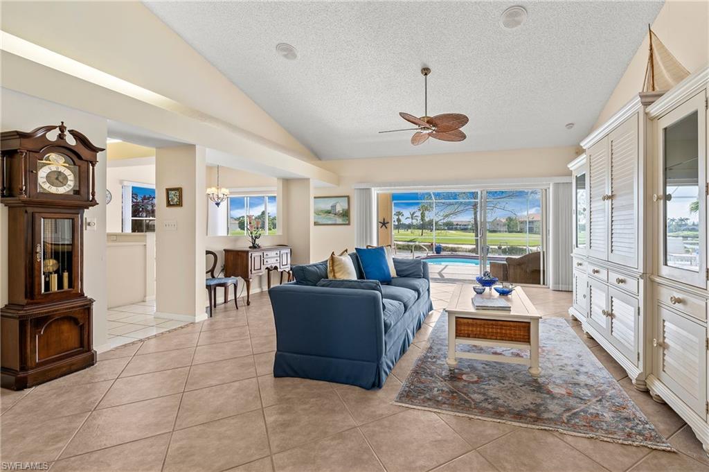 Attention GOLFERS: FULL GOLF MEMBERSHIP is deeded to the property! Tee off into luxury! This WATERFRONT POOL and SPA home, nestled in a prestigious gated golf community of Glen Eagle, offers an enviable lifestyle beyond compare. Imagine mornings on your lanai, overlooking breathtaking water and golf course views, followed by a refreshing dip in your private pool and spa. With an INCLUDED FULL GOLF MEMBERSHIP, you'll have exclusive access to the community's pristine greens. This beautiful home with great curb appeal has the best spot on the lake, it features 3 bedrooms, 2 bathrooms, formal dining room, spacious kitchen with new stainless-steel appliances, breakfast bar and breakfast room. Being sold furnished (with a few exclusions). Large main bedroom with beautiful pool and lake views, double glass doors that walk out to the lanai, walk in closet and a regular closet with a storage above it, new spacious shower and double sinks. 3rd bedroom with French doors. Laundry room with utility sink and cabinets above washer and dryer. Tile floors throughout, no carpets! Built in speakers and intercom system. Open floor plan, lots of natural light and vaulted ceilings make this residence a truly special home. Very spacious screened in lanai (freshly painted) with electric shutters. New flat tile roof (2019). Extra-long driveway with pavers. Rest easy knowing this property is not located in a flood zone, ensuring added peace of mind for your investment. This beautifully maintained gated community is complete with 24-hour guard service for your safety. FULL GOLF MEMBERSHIP deeded to the property, grants you access to the 18-hole par-70 championship golf course designed by the renowned Gordon Lewis. This luxury community comes with premium amenities, including the Divot Café, 19th Hole Restaurant with private dining options, a full-service fitness center with classes, tennis and bocce courts, and a community pool. For those golfers looking to gain extra practice off the course, the private simulator room can be rented out per hour for training and private events. This isn't just a home; it's a lifestyle. Don’t miss your chance to call this stunning property your own! Schedule your private tour today and experience this magnificent waterfront sanctuary!