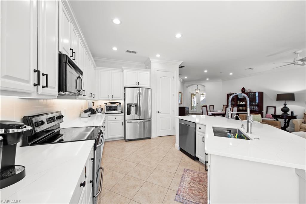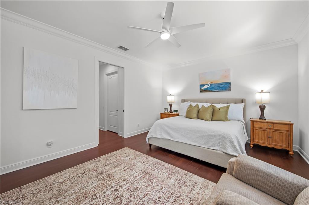 Bundled Golf community so you’re automatically a member of this beautiful 18 hole Gordon Lewis golf course. Come see the most serene and private 1st floor home, overlooking the Preserves and lovely landscaping. Nobody walks behind your home! Recently painted, so easy to live in home offers many upgrades including wood floors in the bedrooms, new lighting, updated bathrooms and pretty white kitchen with Reverse Osmosis, pull out drawers, soft close cabinet and quartz counter-height island, plantation shutters throughout. Also, new garage door opener, shelving for storage and EV outlet for Tesla. Vasari offers loads of amenities, tennis, bocce, water aerobics, men’s fellowship, beautiful club house with formal dining and outside Taverna, exquisite food, a lovely community pool in addition to the pool for Cassia, a fitness center, book club, mahjong and Bridge groups and more! Vasari has the best location close to airport, shopping in Naples and Bonita, lots of restaurant, Bonita Art center where you can take classes, or go to concerts, stop for ice cream in adorable downtown. Bonita offers a very active community, art shows, concerts, dog park and so much more! Motivated owners said “BRING OFFERS” and spend a wonderful winter at Vasari!