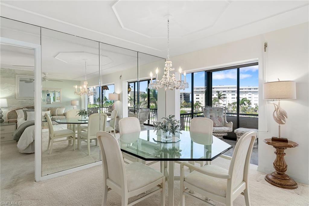 Experience elevated coastal living in this beautifully updated, turnkey-furnished residence at Madrid Club—ideally situated just across the street from Naples’ iconic sugar-white beach. This spacious condominium offers partial Gulf of Mexico views, dazzling sunsets, boating options, and twinkling city lights from nearly every room. With two generously sized primary suites, sunlit living and dining areas, and a glass-enclosed, screened sunroom, the home is designed for seamless indoor-outdoor living year-round. Enjoy peace of mind with impact-rated windows and sliders, hurricane shutters, a full-size in-unit laundry room (a rare feature for the building), under-building garage parking, ample guest parking, and a climate-controlled storage space perfect for bikes and beach gear. Madrid Club has recently completed a multimillion-dollar renovation and now features a secured designer-upgraded lobby, bayfront modern social, hobby rooms and state-of-the-art fitness center, a catering kitchen and on-site manager. Resort-style amenities include a bayside pool, party pavilion with BBQ grills, kayak launch with storage racks, and optional boat slips for lease or purchase—perfect for boating enthusiasts who want Gulf access at their doorstep. With direct beach access just across the street, optional membership to The Moorings Private Beach Park and a walkable location near waterfront dining and boutiques at The Village Shops on Venetian Bay, this residence offers exceptional convenience. Sidewalks, bike paths and back roads connect easily to Fifth Avenue South, Third Street South, Waterside Shops and Mercato. Madrid Club remains a premier choice for buyers seeking beach access, boating amenities and refined living in the heart of Naples, Florida
