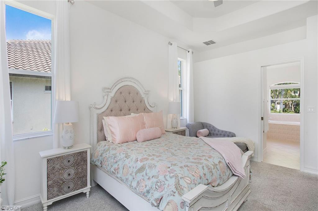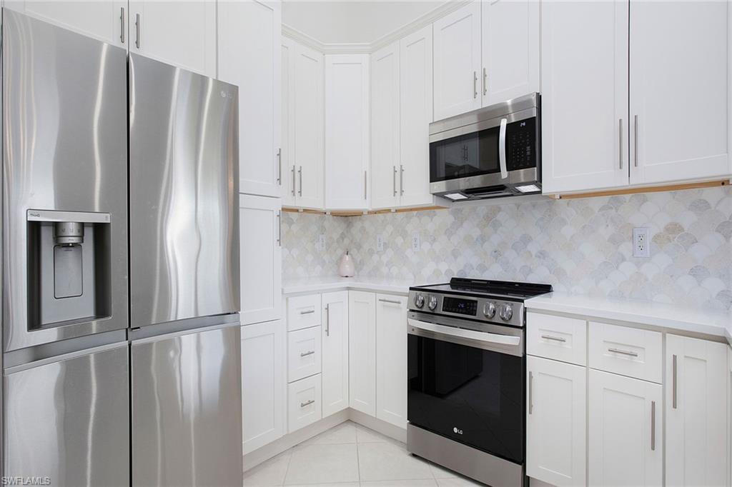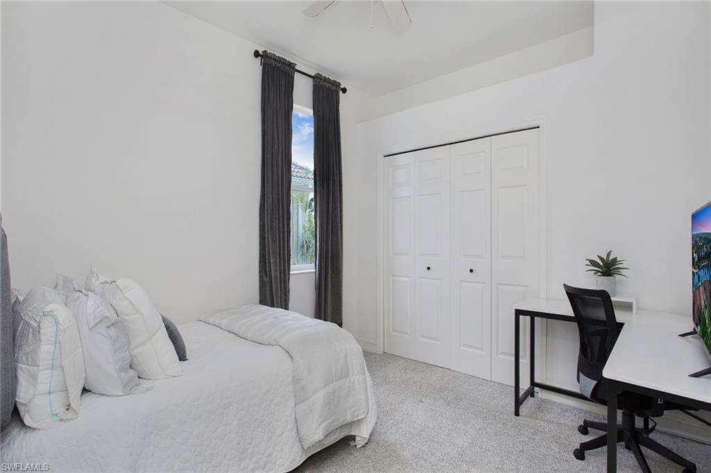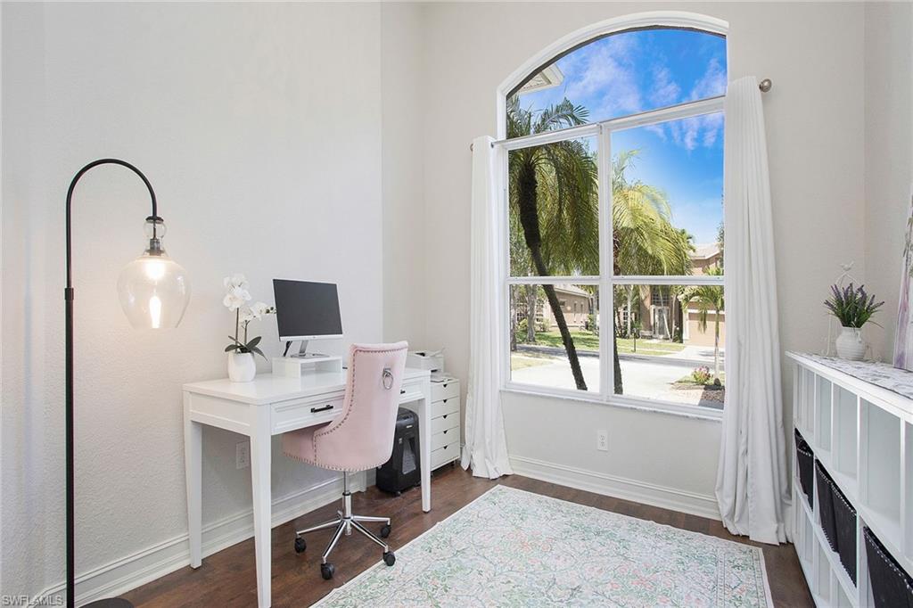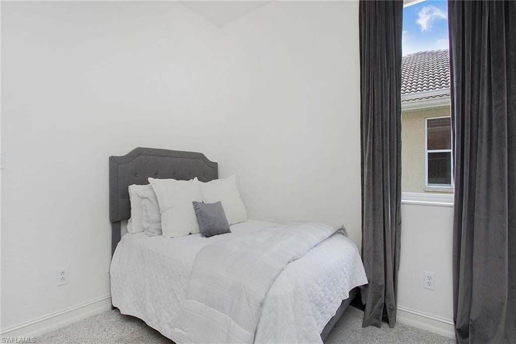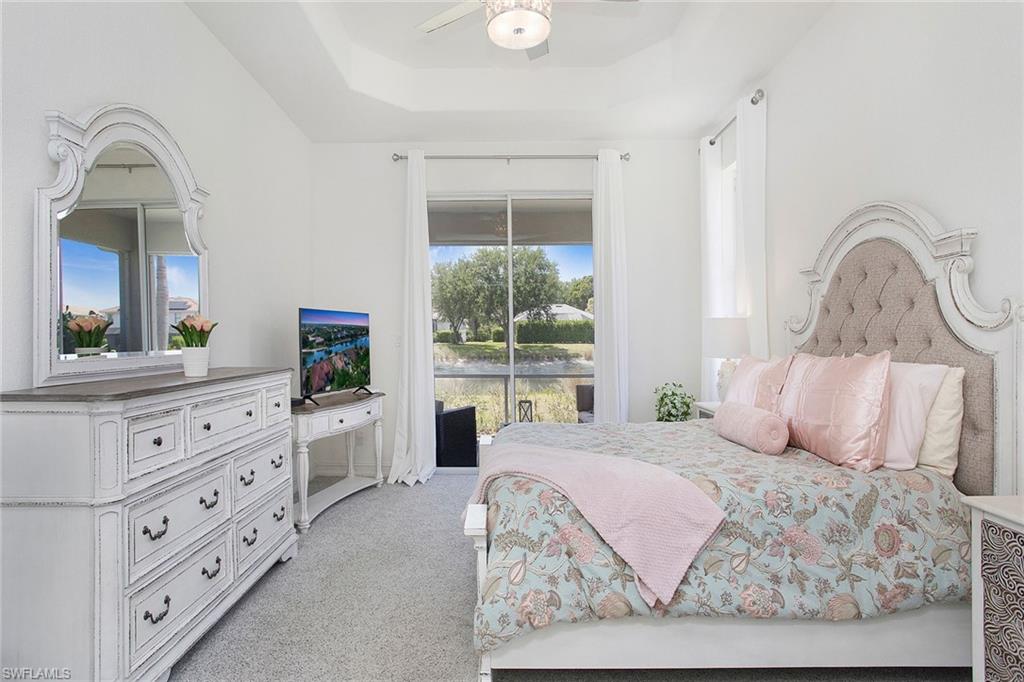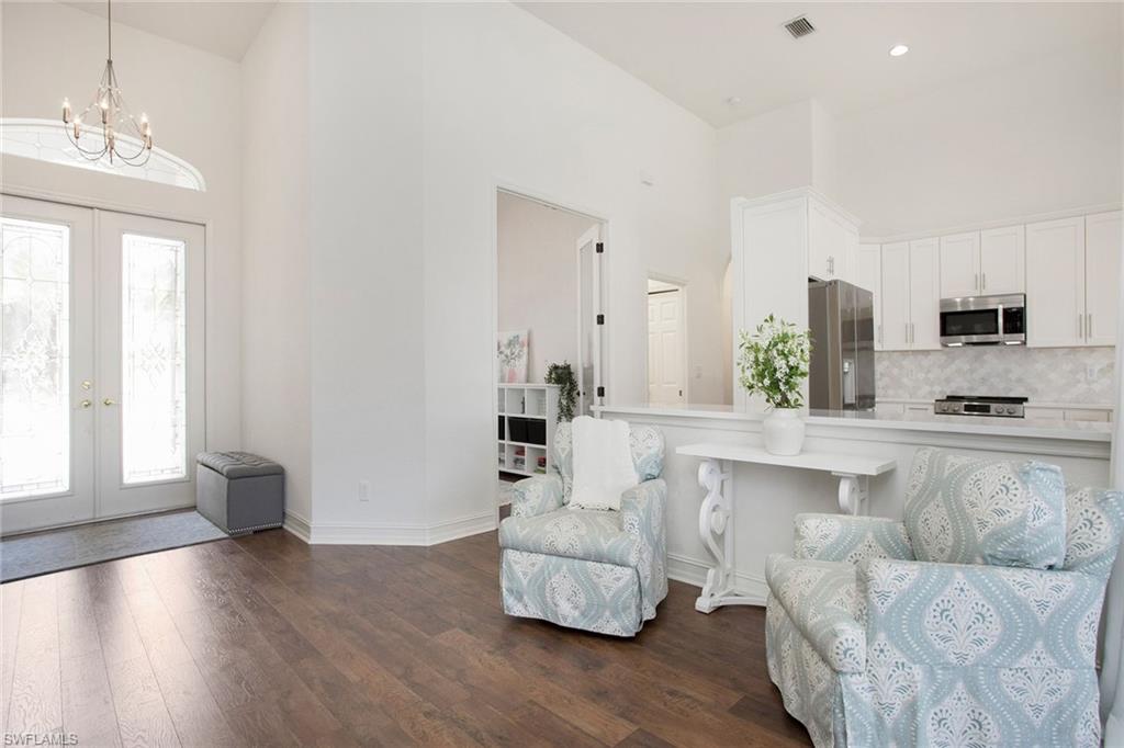 Welcome to this beautifully updated three-bedroom plus den, two-bath home positioned on a lakefront lot, offering stunning water views and breathtaking sunsets from nearly every room. Inside, you'll find a bright and airy open layout designed for everyday living and effortless entertaining. High-end finishes, custom blinds, and designer lighting add warmth and sophistication throughout. The chef-inspired kitchen features crisp white cabinetry, quartz countertops, stainless steel appliances and a built-in wine cooler, perfect for casual meals or hosting friends and family. The spacious great room flows seamlessly into a cozy breakfast nook and showcases a sleek LED fireplace, creating an inviting space to unwind or gather. The private primary suite is a peaceful retreat with a tray ceiling, a walk-in closet and a spa like en-suite bath with dual vanities. Two additional bedrooms and a flexible den provide plenty of space for guests, a home office or hobbies. Go outside to the screened lanai and enjoy a large, private backyard with serene lake views, ideal for year-round Florida living. An oversized garage offers extra storage space for added convenience. In the gated community of Indigo Lakes, residents enjoy access to resort-style amenities including a clubhouse, pool and spa, fitness center, tennis and pickleball courts, basketball courts and a playground, all with low HOA fees. Just a short distance to Oakridge Middle School and minutes from Founders Square, NCH Healthcare, dining and shopping, this home captures the best of North Naples living.