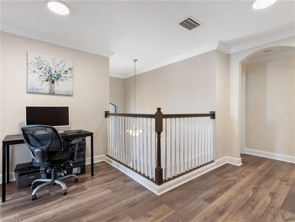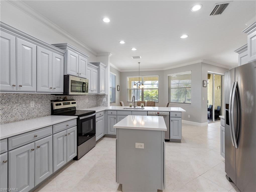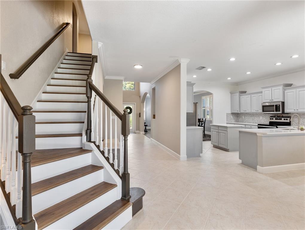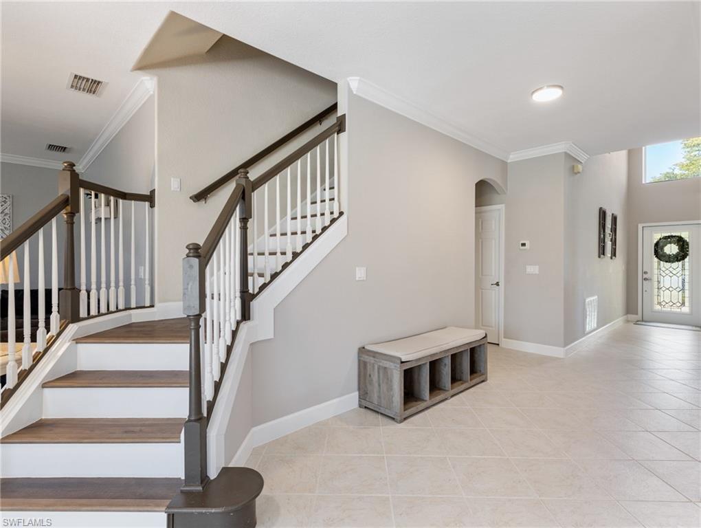 One of the Best values you’ll find in Estero for a large Pool Home, and in a great family style neighborhood. Located in the highly sought-after gated community of Bella Terra, this popular Oxford model offers 5 bedrooms, 3 full bathrooms, and a 3-car garage with approximately 3,000 sq. ft. of spacious living. Enjoy the serene view of a nature preserve from your private backyard, complete with a screened-in pool and spa. The home features an upgraded kitchen with Quartz countertops, beautiful wood cabinetry, luxury vinyl flooring, crown molding and much more! The LVP floors are also featured up the staircase and throughout the entire 2nd floor. Other features include a newer Pool heater, hot water heater, refrigerator, dishwasher, clothes washer and a brand new pool pump. Offers a first-floor bedroom and full bathroom, perfect for guests or a home office, along with 4 bedrooms and 2 baths upstairs. The 2nd floor master suite features double-door entry, a display niche, and a spacious bathroom with dual sinks, a soaking tub, and separate shower. This home and community have so much to offer and you will not find another one like it in this price range. Bella Terra is nestled on 999 acres with half the community dedicated to lakes/preserves and home to a variety of native Florida wildlife. Features a Resort-style Clubhouse, 24 hour fitness center, activities for all ages, resort-style pool and spa, shaded children's play area, tennis courts, pickle ball, bocce ball, sand volleyball, multi-use sports fields, tranquil butterfly garden, excercise trails and more. Call Today!!!