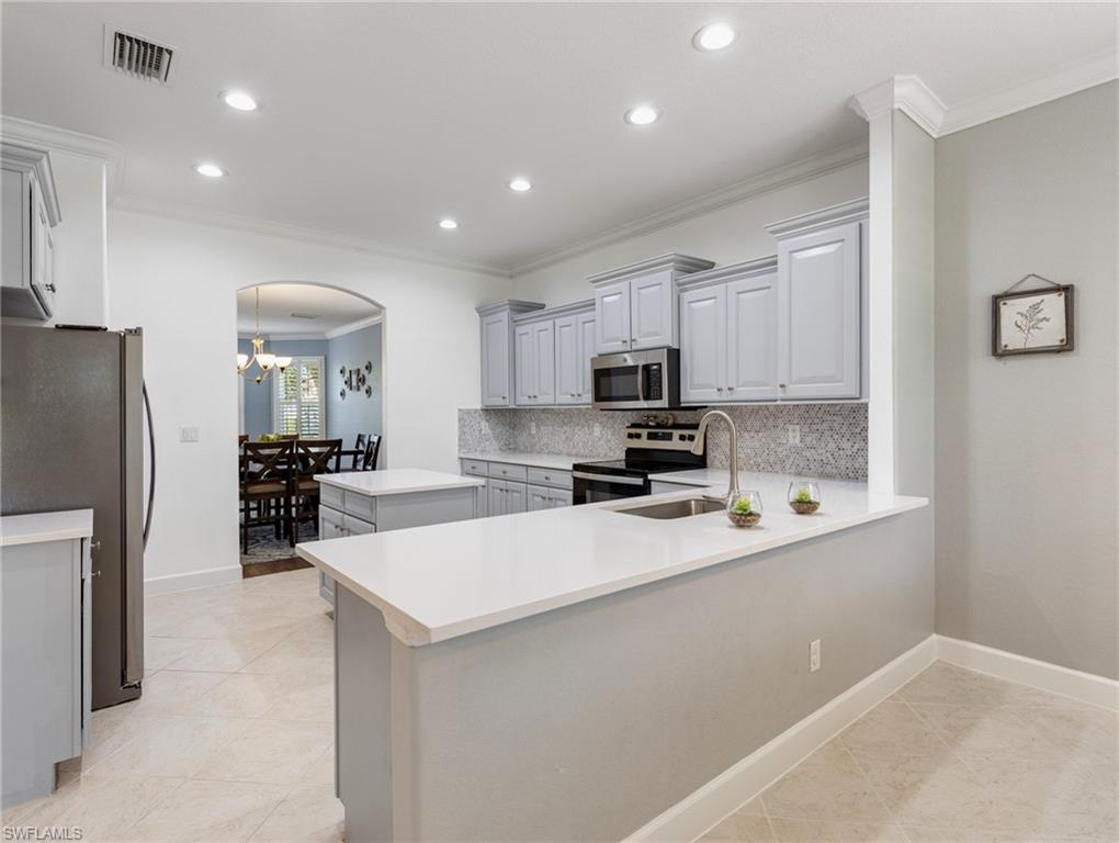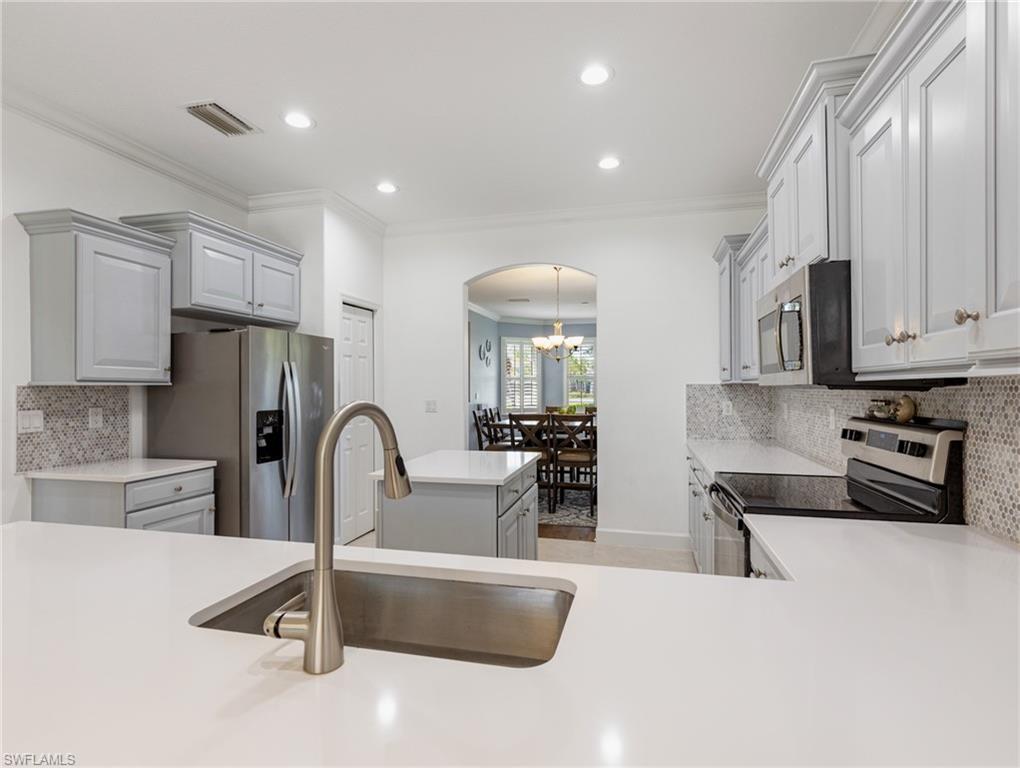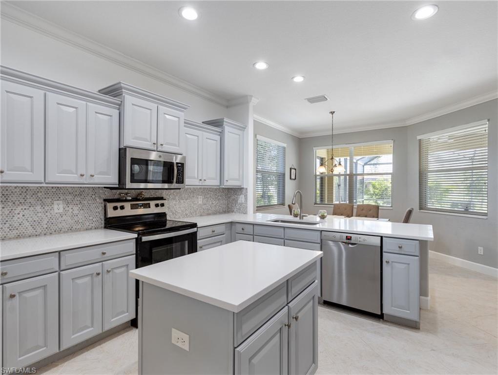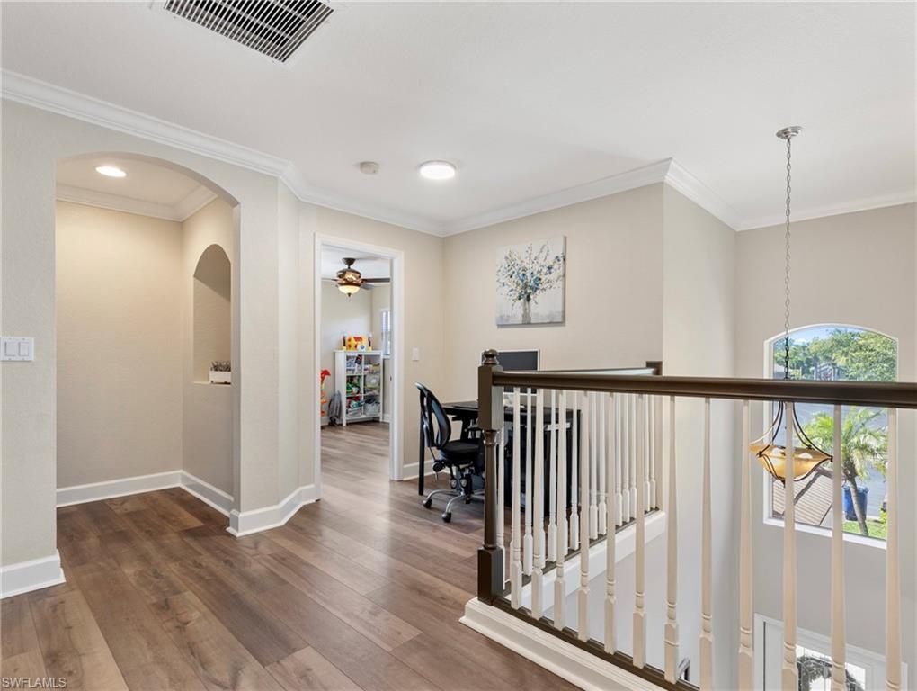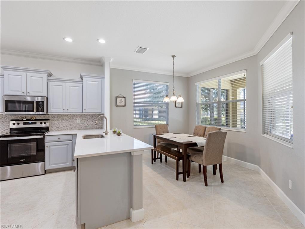 One of the Best values you’ll find in Estero for a large Pool Home, and in a great family style neighborhood. Located in the highly sought-after gated community of Bella Terra, this popular Oxford model offers 5 bedrooms, 3 full bathrooms, and a 3-car garage with approximately 3,000 sq. ft. of spacious living. Enjoy the serene view of a nature preserve from your private backyard, complete with a screened-in pool and spa. The home features an upgraded kitchen with Quartz countertops, beautiful wood cabinetry, luxury vinyl flooring, crown molding and much more! The LVP floors are also featured up the staircase and throughout the entire 2nd floor. Other features include a newer Pool heater, hot water heater, refrigerator, dishwasher, clothes washer and a brand new pool pump. Offers a first-floor bedroom and full bathroom, perfect for guests or a home office, along with 4 bedrooms and 2 baths upstairs. The 2nd floor master suite features double-door entry, a display niche, and a spacious bathroom with dual sinks, a soaking tub, and separate shower. This home and community have so much to offer and you will not find another one like it in this price range. Bella Terra is nestled on 999 acres with half the community dedicated to lakes/preserves and home to a variety of native Florida wildlife. Features a Resort-style Clubhouse, 24 hour fitness center, activities for all ages, resort-style pool and spa, shaded children's play area, tennis courts, pickle ball, bocce ball, sand volleyball, multi-use sports fields, tranquil butterfly garden, excercise trails and more. Call Today!!!