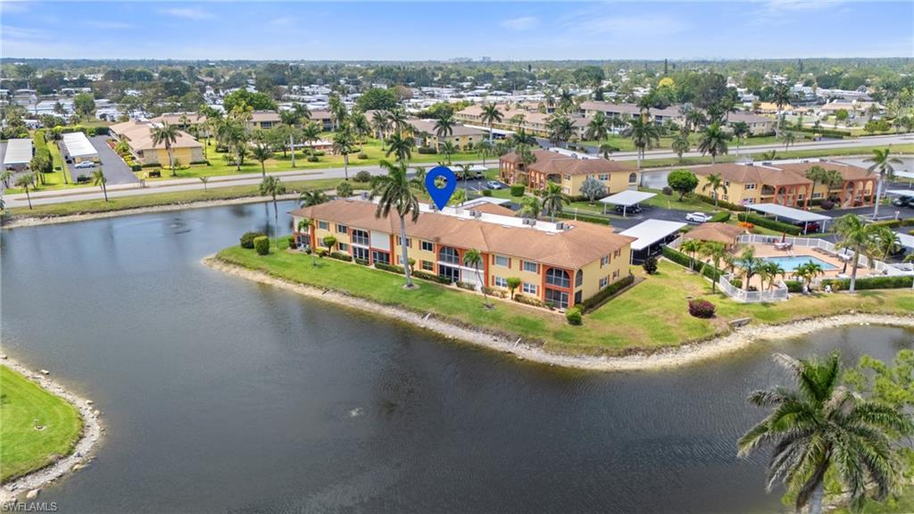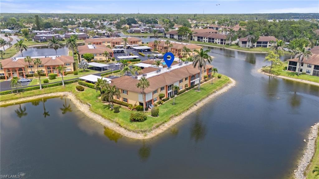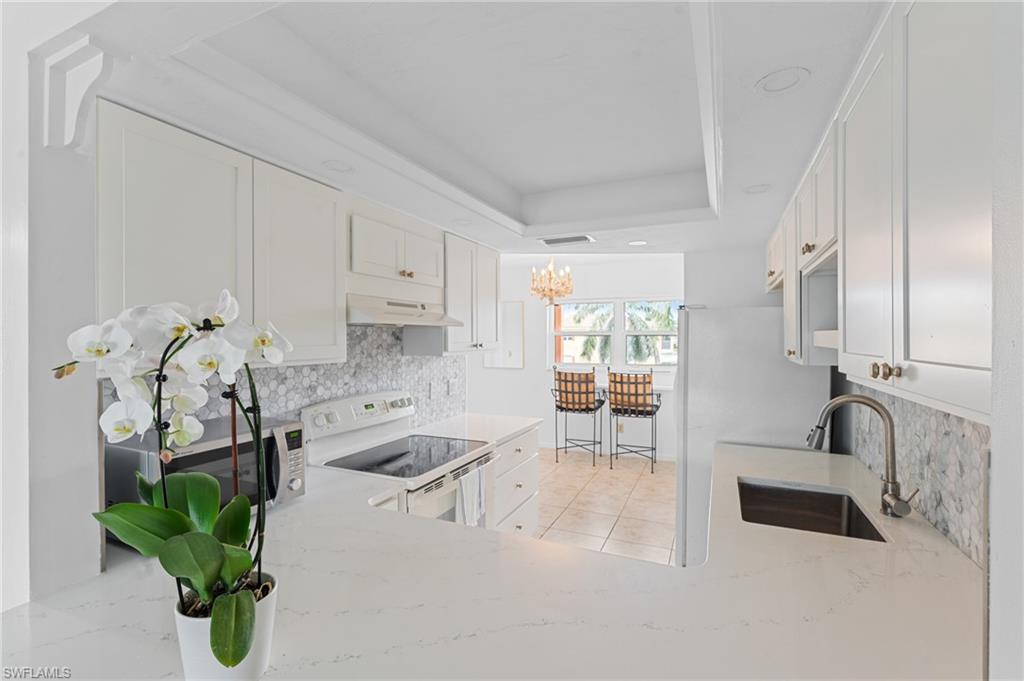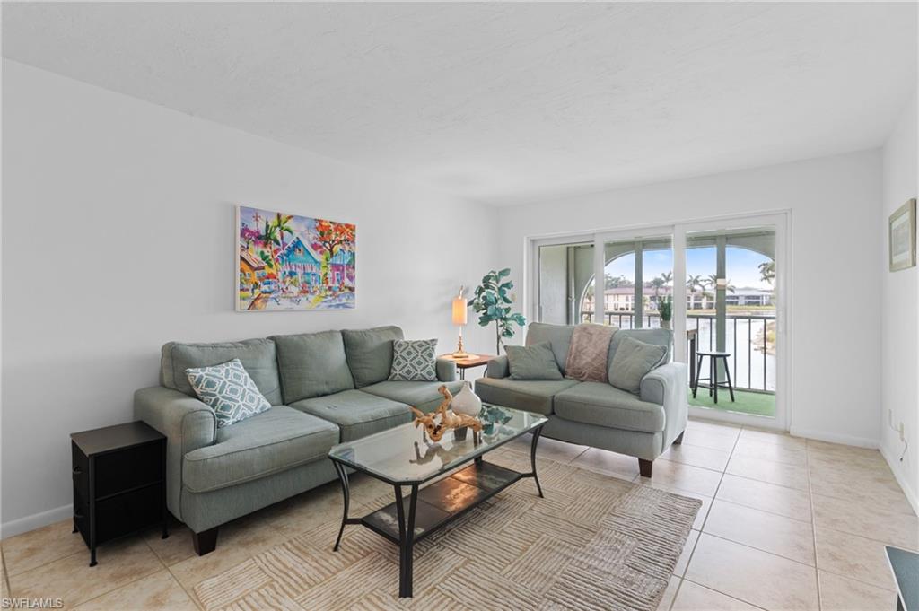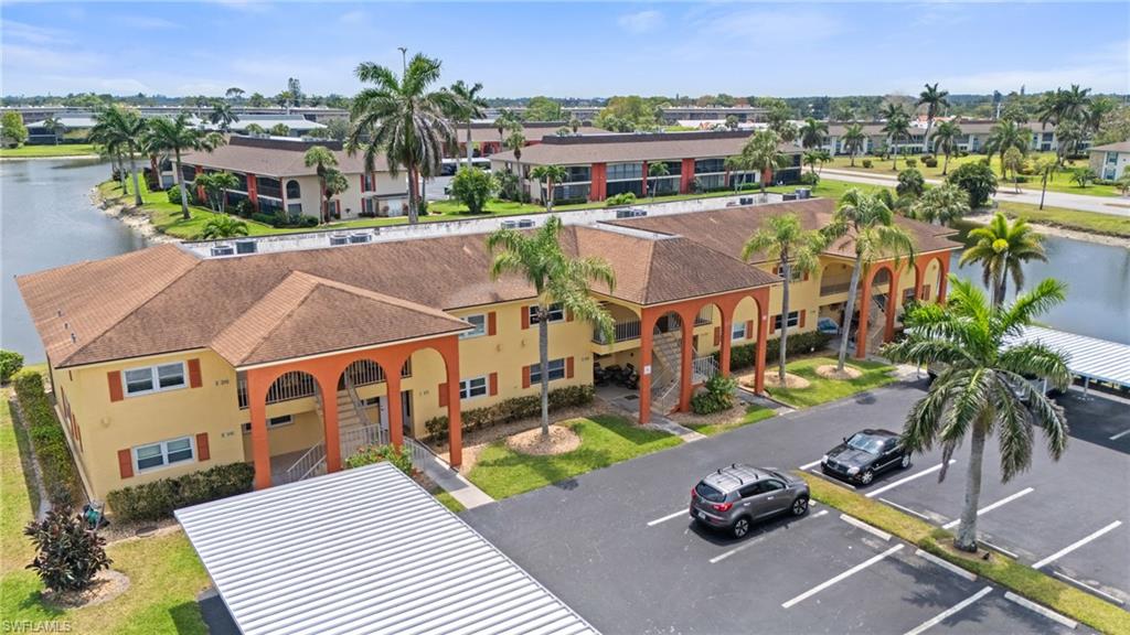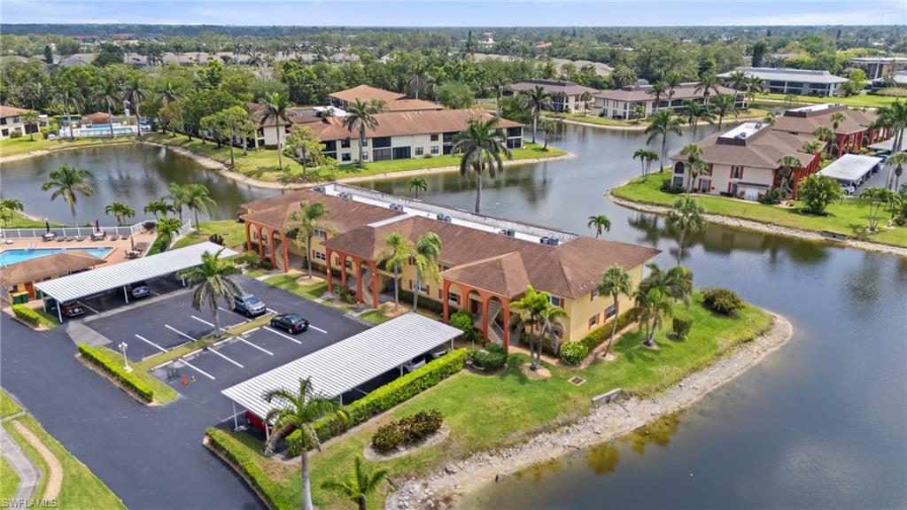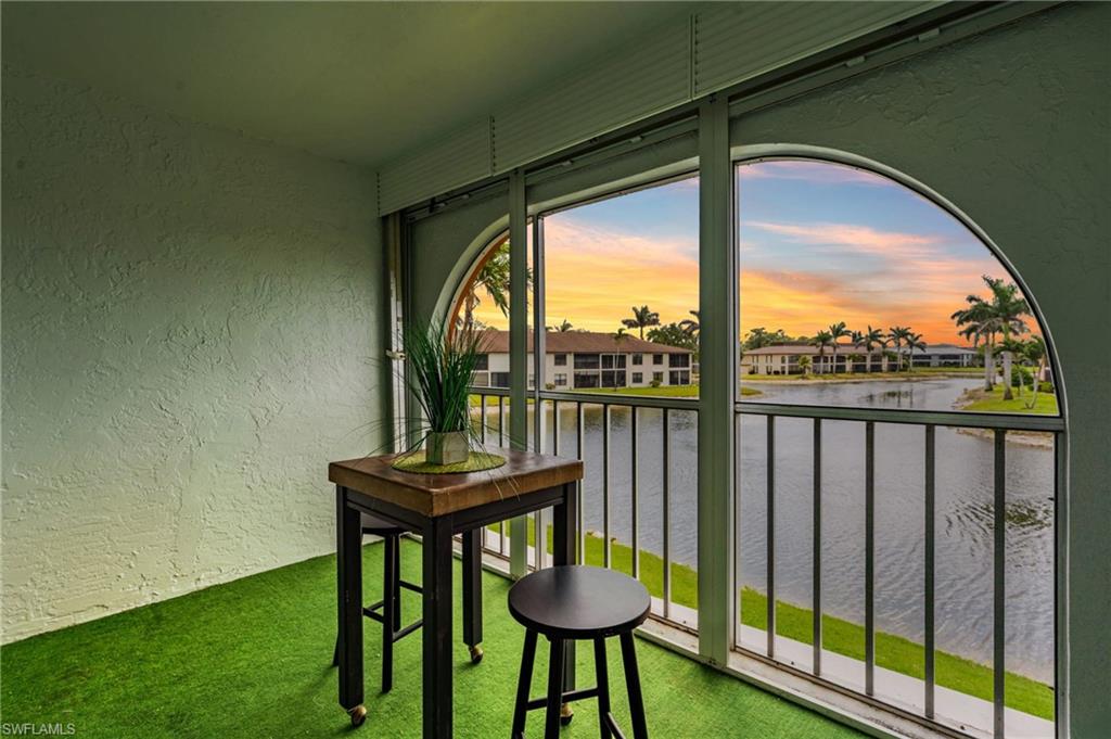 Renovated top to bottom in 2020, this 2 bed, 2 bath condo in The Fountains (55+) feels fresh, comfortable, and completely move-in ready. Inside, you’ll find updated tile and LVP flooring, quartz countertops, cabinetry with brass hardware, a striking stone hex backsplash, and two fully renovated bathrooms. A fresh coat of paint was just added throughout, giving the space a clean, cohesive feel. All windows and doors are impact grade, and the lanai is equipped with pull-down storm shutters — offering full protection and peace of mind during hurricane season. The southwest-facing lanai brings in plenty of natural light from mid-afternoon through sunset, with a lake view that immediately draws your attention as soon as you step into the kitchen and living room. The way the sunlight reflects off the water gives the space a calm, inviting energy that’s hard to beat. This unit is just steps from the community pool and grille area — ideal for easy socializing or a quick dip — and your deeded carport is conveniently located nearby. The Fountains is a well-maintained, active 55+ community with low HOA fees and a laid-back, friendly feel. You're about 15 minutes from Olde Naples, with quick access to luxury shops, great dining, and local favorites like the Naples Pier and Lowdermilk Beach. Golfers will appreciate having public courses like Lely’s Mustang and Flamingo, as well as Hibiscus Golf Club, just around the corner. Whether you’re looking for a seasonal escape or a full-time home, this one makes it easy.