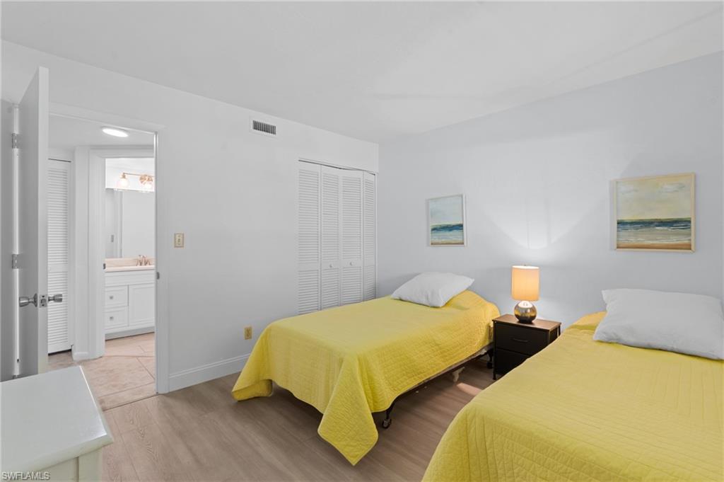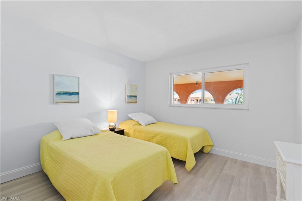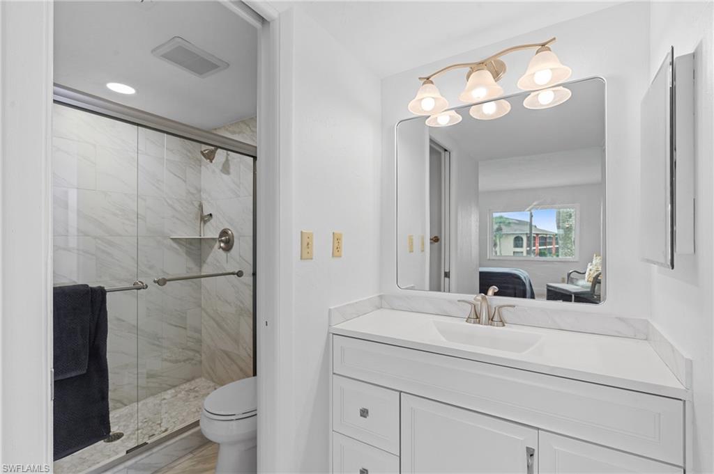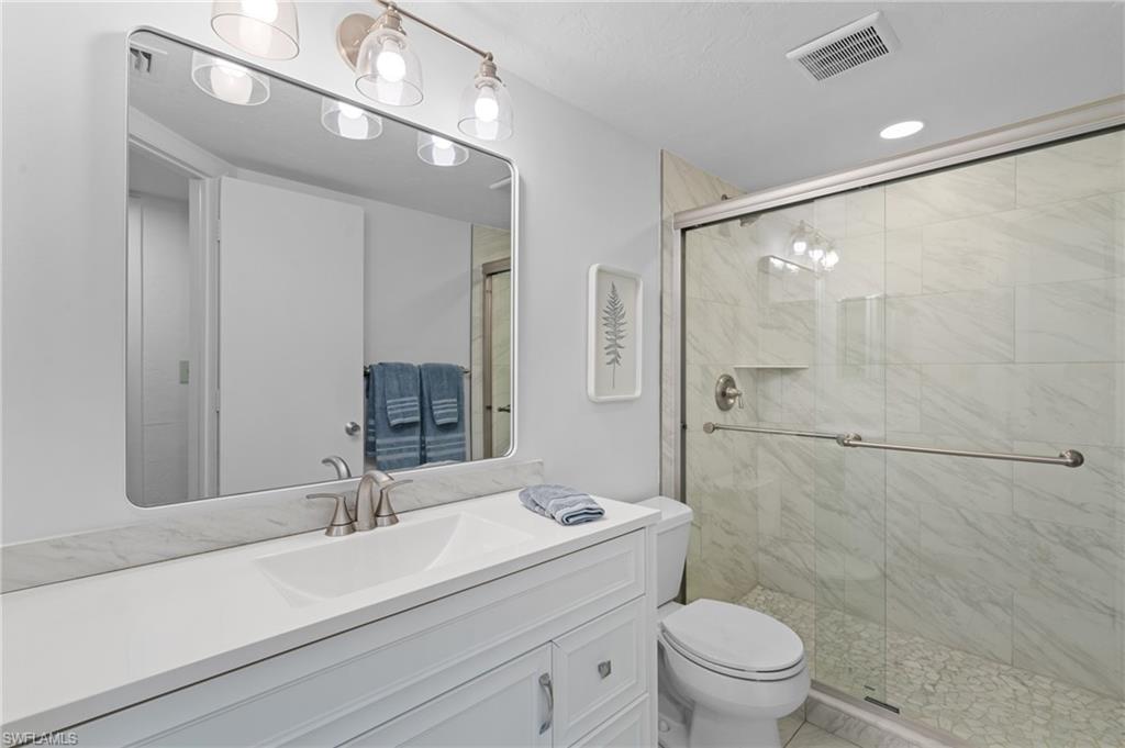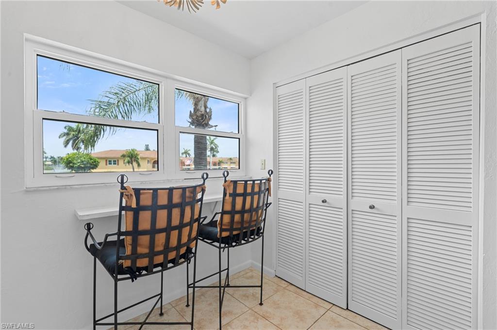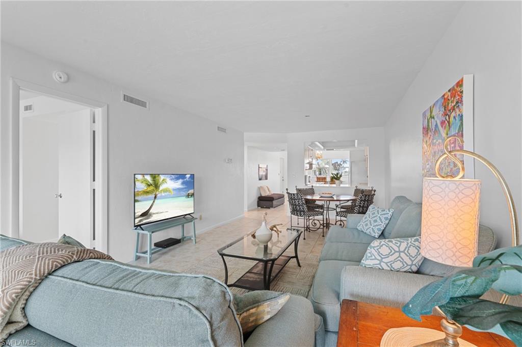 Renovated top to bottom in 2020, this 2 bed, 2 bath condo in The Fountains (55+) feels fresh, comfortable, and completely move-in ready. Inside, you’ll find updated tile and LVP flooring, quartz countertops, cabinetry with brass hardware, a striking stone hex backsplash, and two fully renovated bathrooms. A fresh coat of paint was just added throughout, giving the space a clean, cohesive feel. All windows and doors are impact grade, and the lanai is equipped with pull-down storm shutters — offering full protection and peace of mind during hurricane season. The southwest-facing lanai brings in plenty of natural light from mid-afternoon through sunset, with a lake view that immediately draws your attention as soon as you step into the kitchen and living room. The way the sunlight reflects off the water gives the space a calm, inviting energy that’s hard to beat. This unit is just steps from the community pool and grille area — ideal for easy socializing or a quick dip — and your deeded carport is conveniently located nearby. The Fountains is a well-maintained, active 55+ community with low HOA fees and a laid-back, friendly feel. You're about 15 minutes from Olde Naples, with quick access to luxury shops, great dining, and local favorites like the Naples Pier and Lowdermilk Beach. Golfers will appreciate having public courses like Lely’s Mustang and Flamingo, as well as Hibiscus Golf Club, just around the corner. Whether you’re looking for a seasonal escape or a full-time home, this one makes it easy.