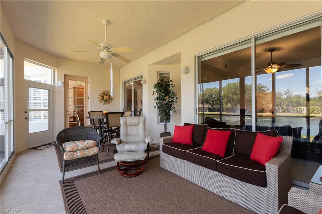 Welcome to The Meadows of Estero, an exceptional gated community in the heart of Estero, just moments from Coconut Point’s premier shopping, dining, and entertainment. This pristine, first-floor unit coach home offers the perfect blend of spacious design, serene views, and resort-style amenities. Boasting 3 bedrooms, 2.5 bathrooms, and an attached 2-car garage, this residence lives more like a home than a condo, with nearly 2,000 square feet of thoughtfully designed living space. Tile flooring throughout the main areas with brand new carpet in the bedrooms. The split-bedroom layout includes two large primary suites, each with walk-in closets and private baths alongside a flexible den with French doors, ideal for a home office or guest retreat. The open-concept kitchen is equipped with granite countertops, a pantry, and both formal dining and eat-in spaces; perfect for entertaining or everyday living. Step out onto the expansive fully enclosed/screened lanai and enjoy a peaceful lake view in total privacy. Meadows of Estero has recently undergone major improvements, including new tile roofs, exterior paint, enhanced lighting, and upgraded gates. Residents enjoy a vibrant, amenity-rich lifestyle with access to a clubhouse, fitness center, billiards room, pool and spa, on-site management, and a full social calendar of events, yoga, food trucks, and game nights. HOA fees include water and exterior insurance for low-maintenance living. Ideally located just 15 minutes from Southwest Florida’s renowned beaches and RSW Airport, this move-in-ready home is perfect for year-round enjoyment or a seasonal retreat. Don’t miss your opportunity to experience this beautifully maintained, turnkey home in one of Estero’s most desirable communities. Schedule your private showing today!