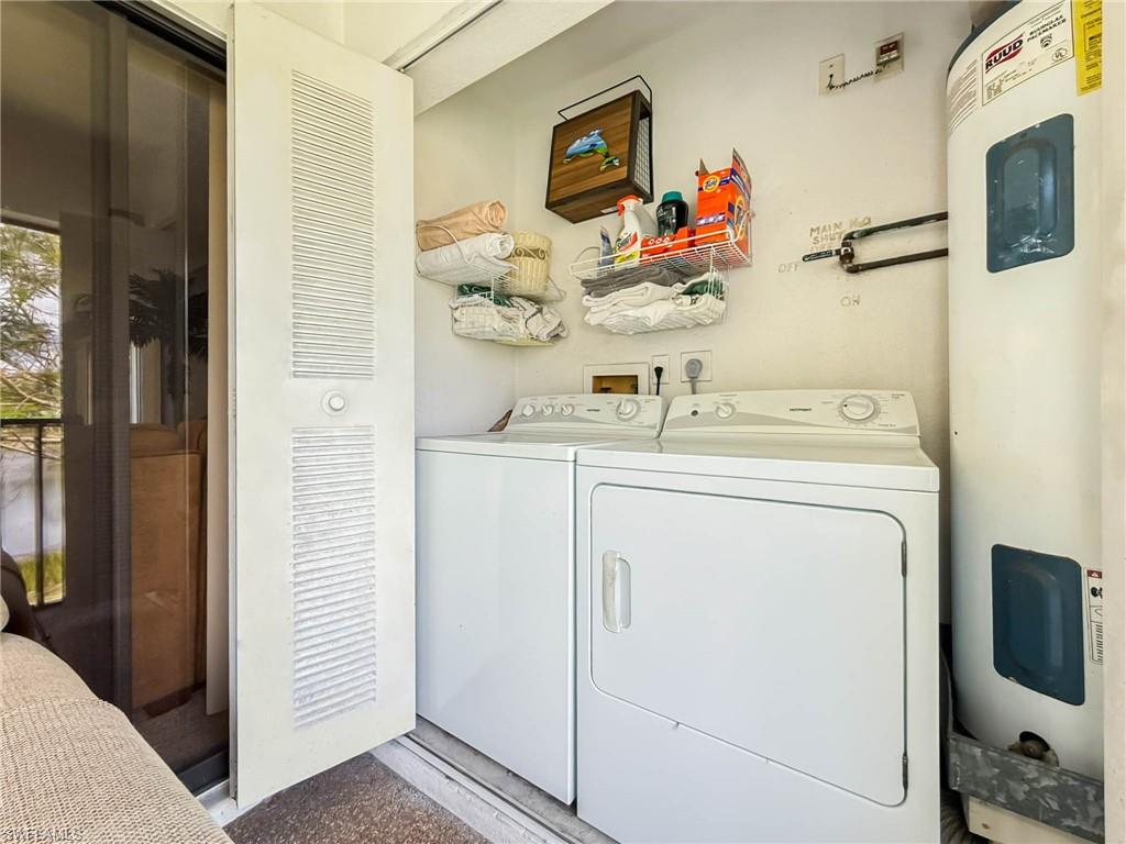 Welcome to Naples! This beautiful and well maintained 2 bedroom, 2 bathroom pet friendly condo located in the highly sought-after community of Naples Bath & Tennis is the perfect place to call home for seasonal or year-round living. This second story home has a layout featuring 2 lovely bedrooms separated by a full bath. The main living area has a spacious layout that separates the kitchen from the living room with plenty of natural light. The primary bedroom has a wonderful water view and features a large walk-in closet and private bathroom. Your eastern facing lanai is the perfect place to enjoy a morning coffee or evening drink. Owners benefit from the added practicality of the in-house laundry situated on the lanai with easy access. This home offers a fantastic opportunity for buyers to add their personal touch and style. With it's original features, it's a perfect canvas for customization, renovation, or thoughtful updates to make it truly your own. Enjoy the convenience of having a dedicated parking space located directly in front of the home. An additional storage closet just outside the front door provides extra space for seasonal items, gear, or everyday essentials. Naples Bath & Tennis offers a variety of fantastic amenities including a community pool and Emilio Sanchez Tennis Academy. This active community features options for biking, jogging and dog walking. Naples Bath & Tennis is a prime location. Residents enjoy a short ride to shopping, fine dining, RSW airport and the sugar-white Gulf beaches.