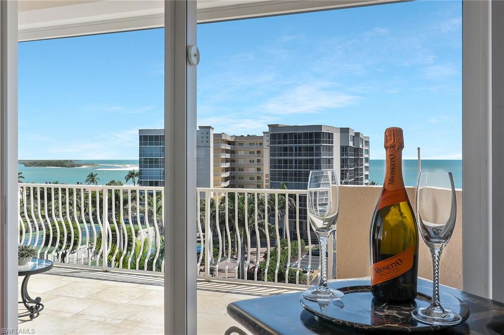 Exquisite half penthouse at Caxambas South Beach Terrace, offering stunning and forever wide water views of the Gulf and the famous Marco Island's 10 Thousand Islands from every room. This exclusive residence epitomizes privacy, exclusivity, elegance and comfort. Upon entering, you are greeted by an inviting foyer that sets the tone for this luxurious abode. High ceilings amplify the sense of space, while the functional kitchen with granite countertops and backsplash is a culinary enthusiast's dream. The cozy fireplace adds warmth and charm, and the adjacent bar promises endless happy hours of delight. The desirable open floor plan harmoniously integrates a classy dining room with a casual coastal living room, creating a seamless flow. Three spacious bedrooms each boast en-suite full baths, complemented by a powder room for guests. With large closets and ample storage throughout, practicality meets luxury at every turn. The spectacular wrap-around, 180-degree open terrace is the ideal setting to entertain, relax, and be mesmerized by breathtaking sunrises and sunsets. Witness the vibrant boating activity, listen to birds singing and watch dolphins swimming, all from the comfort of your terrace. Additional features include a private enclosed garage, washer and dryer in the unit, high-impact windows and electric shutters, providing extra peace of mind. This one-of-a-kind half penthouse is offered fully furnished, ready to move in. Paradise living at its finest.