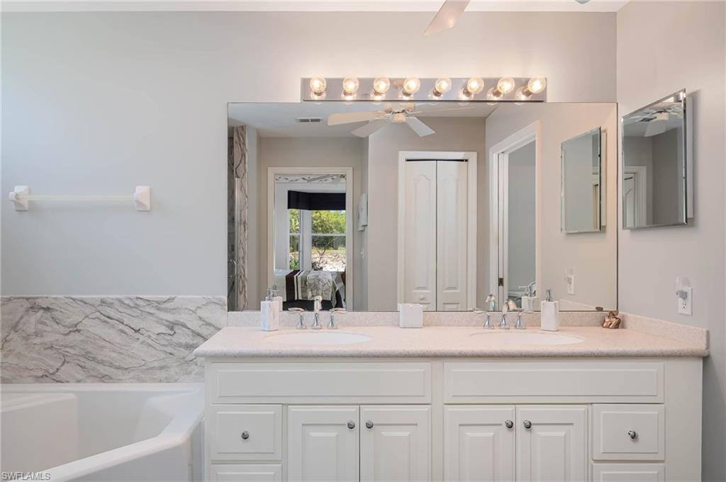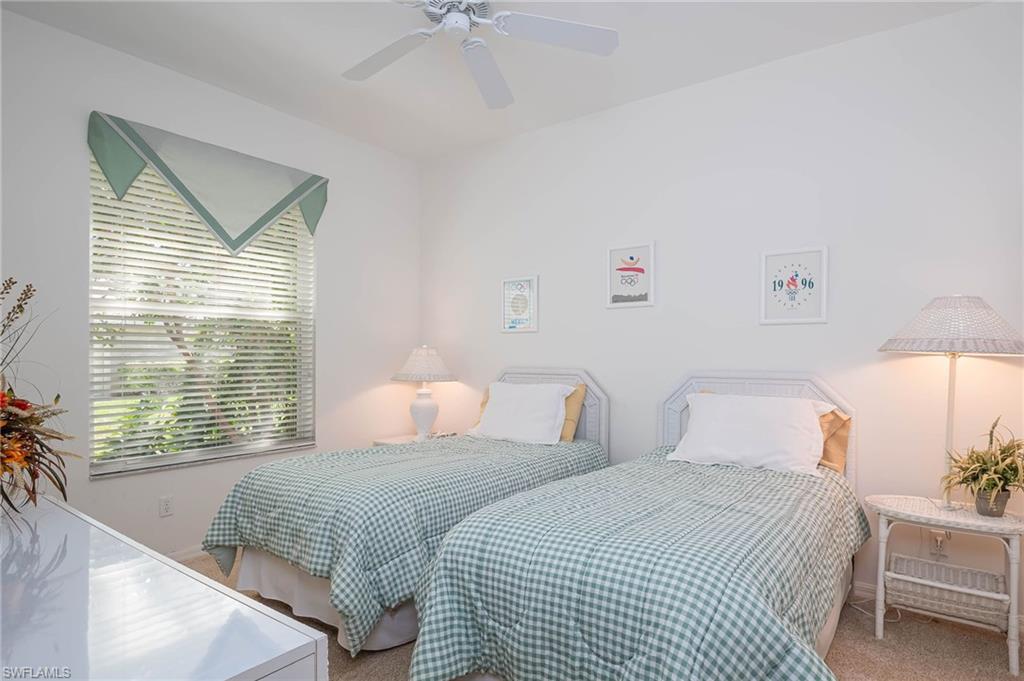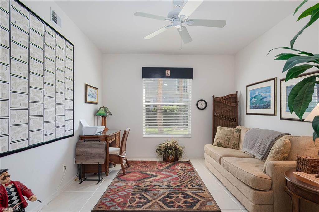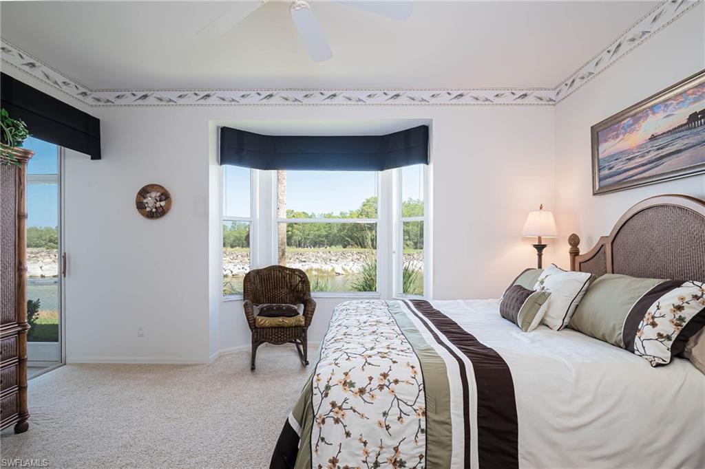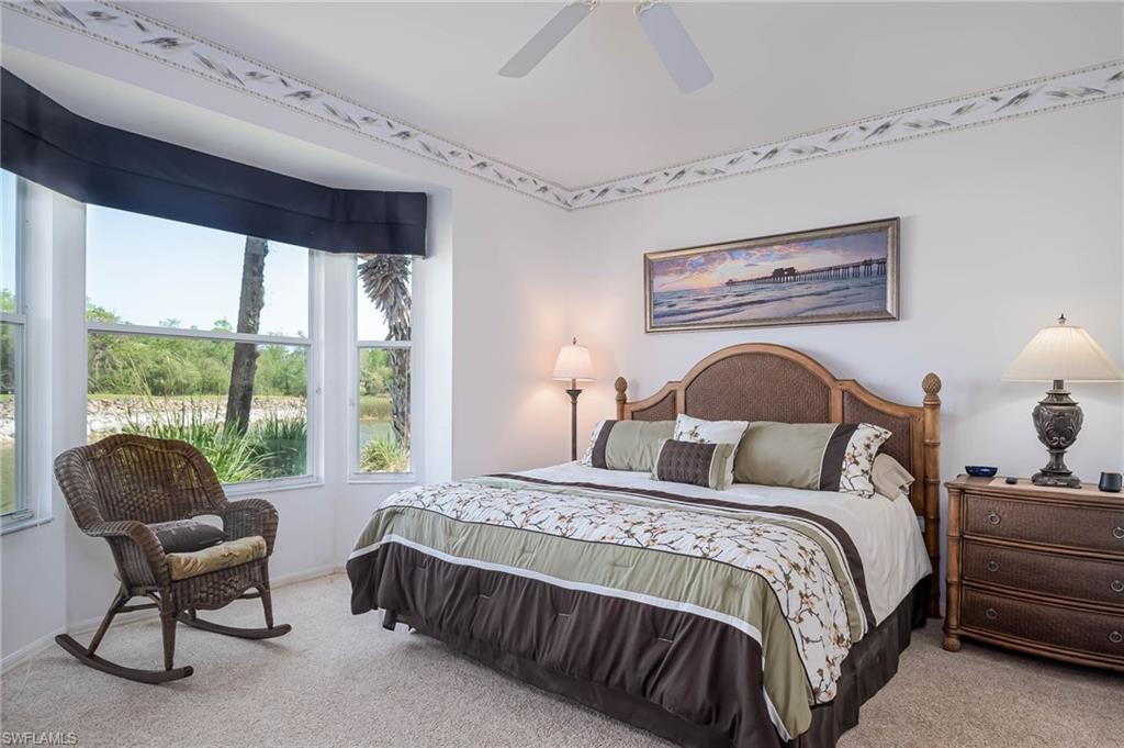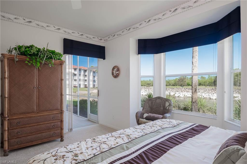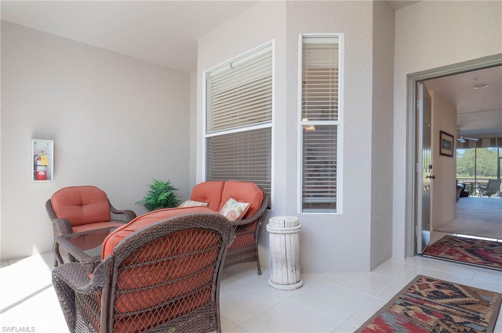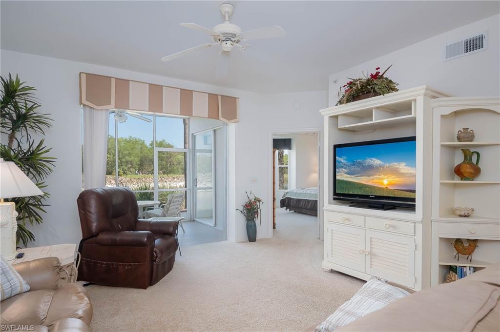 FULL GOLF MEMBERSHIP INCLUDED Rarely available 1ST Floor END UNIT offers 2 BR / 2 BATH PLUS DEN w/ garage offers sweeping unobstructed water, golf and preserve views!! This home has been lovingly cared for by the initial owner and it shows! This property is unique in that it has both a front and rear patio allowing for a remarkable amount of outdoor living space. The kitchen has been updated and includes newer Shaker white cabinetry, granite countertops and lovely stainless steel appliances. The home boasts an open floor plan concept allowing for a very generous living and dining room space. The Den offers double pocket doors for privacy and is ideal as an office or a third bedroom. The primary bedroom is spacious and overlooks the water and golf course. The 2nd full bedroom and bathroom are oversized and can easily host family and friends The master bath has been updated and has two walk-in closets in the private ensuite. The patio has direct water and golf views with no homes blocking this priceless view. Naples Heritage offers and 18 hole bundled golf course, pro shop, putting green & driving range. The community offers a newly renovated clubhouse, restaurant, poolside cabana & bar. There is a wonderful fitness center with tennis, pickle ball and bocce to enjoy year round living or our winter residents. Naples Heritage is centrally located 3 miles from I-75 going to either Miami or Tampa, the new Great Wolf Lodge 2 miles from the community, Florida Sports Park and within 5 miles to the shoppes, restaurants and entertainment of Naples premier shopping destination 5th Avenue. Seed 2 Table is rebuilding on Davis Blvd and the new convention center is 4 miles from Naples Heritage. Welcome Home!