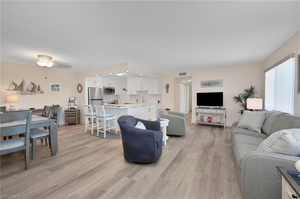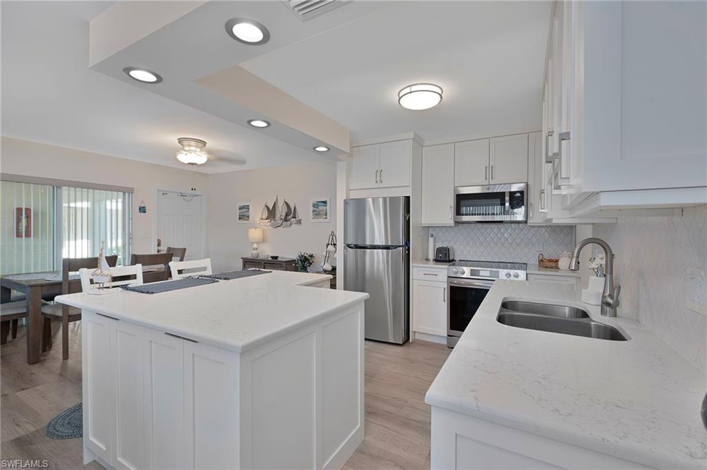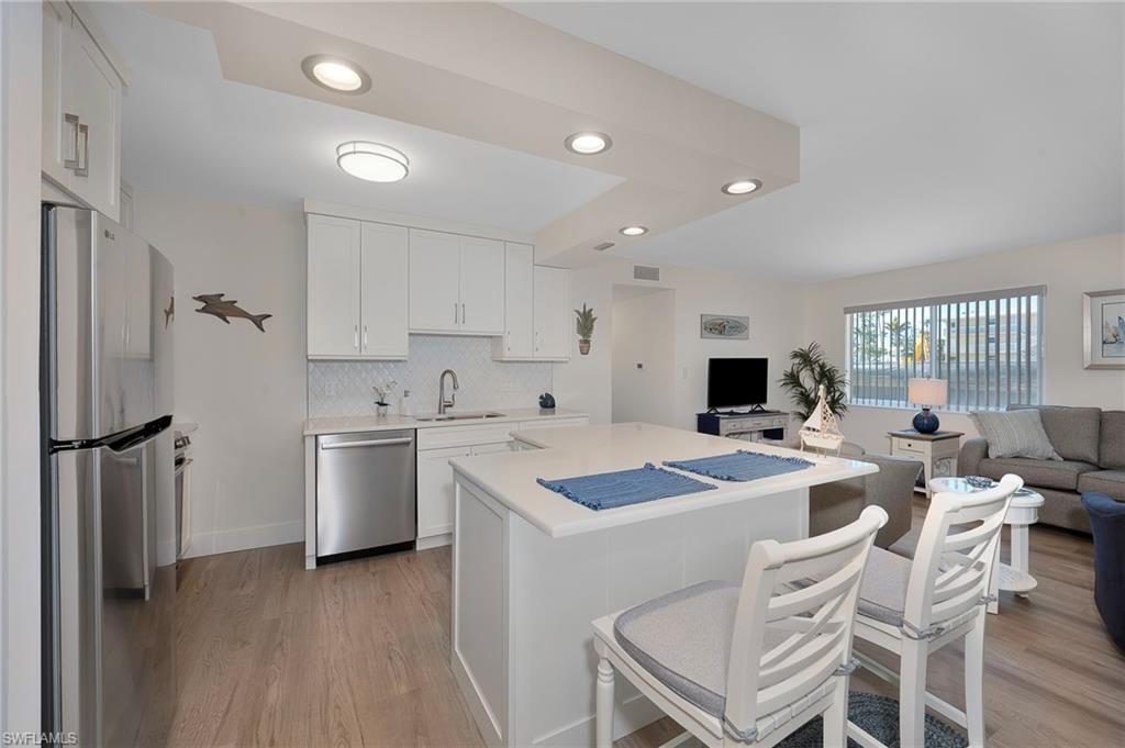 COMPLETELY REMODELED MOORINGS BEACH CONDO JUST STEPS FROM THE MOORINGS PRIVATE BEACH CLUB & ENJOY A RELAXING SCENIC VIEW OF BEAUTIFUL DOCTORS PASS FROM YOUR SOCIAL DOCK! Completely remodeled from the CBS walls, new electrical, new electrical box, new plumbing, custom island kitchen, New A/C, new appliances, luxury wooden plank vinyl flooring throughout, quartz countertops, new bathroom buildout and being sold fully furnished. charming 2/2 with bonus closed lanai for guests. Parking space located steps from unit, great for groceries, shopping & car access. Building has been completely remodeled with impact glass, common area plumbing inner lining completed, new electrical meters, new docks, new laundry room. Washer & Dryer can be installed with board approval and permit competed. social dock, bbq area, car cleaning area, bike racks, heated pool, common area restroom, laundry room and picnic table. Building has completed state mandated SIRS and Reserve study. Charming Boutique Garden Style 40 unit building with docks that can be rented or purchased from dock owners. Private Moorings Beach Club can be purchased upon ownership. READY TO MOVE IN, SO JUST BRING YOUR ESSENTIALS AND ENJOY!