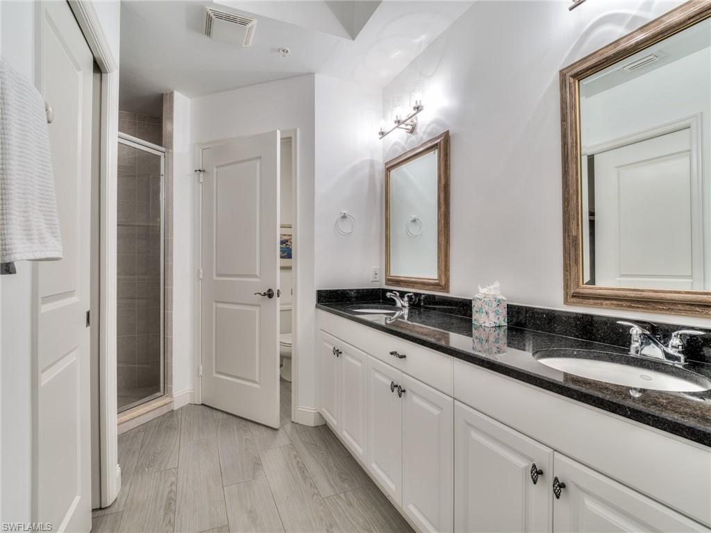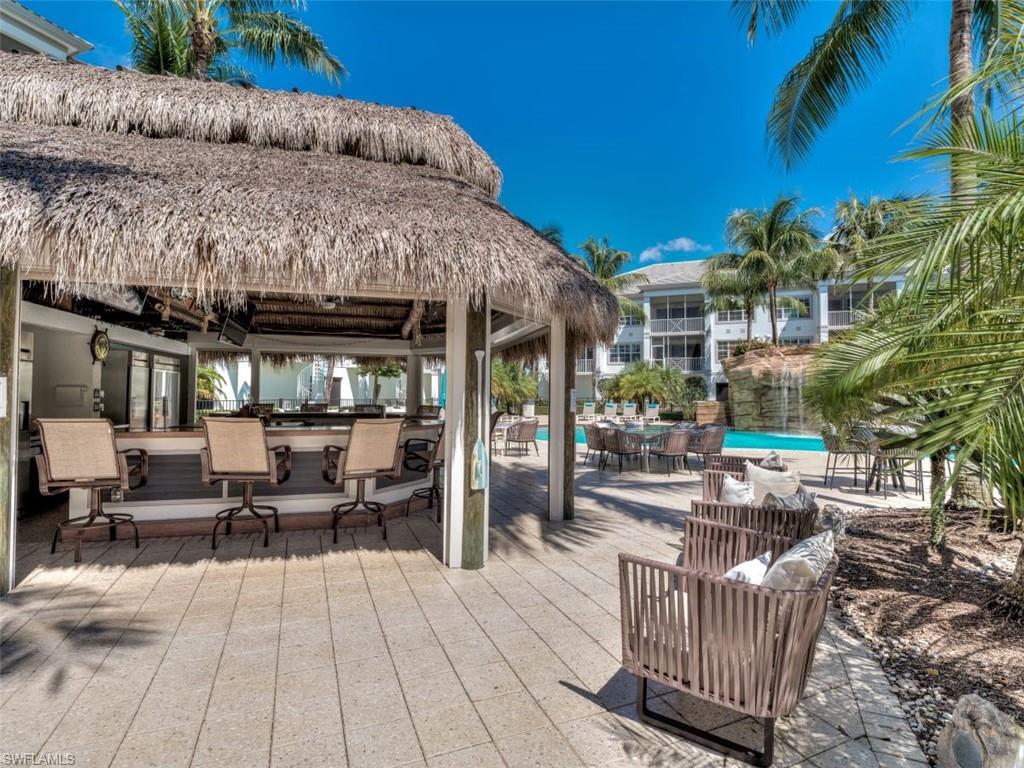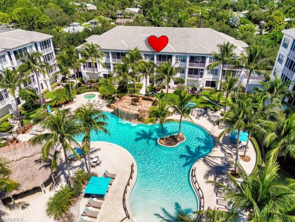 WOW! You'll love the view and privacy offered by this "RESORT POOL" residence. Bonita Village is one of the most exciting, close to beach communities in SW Florida! The best part may be the addition of two more pool areas and the massive Lazy River! This residence is only steps the Clubhouse & Fitness Center, and the Free Beach Shuttle to Bonita and Barefoot Beaches! The Quiet Pool & Spa is about to undergo a fantastic upgrade and wait until the new Lazy River is finished! See the sassy new Social Room in the Clubhouse and visit The Groggy Frog, which serves food and drinks in Season and is “The Place Everyone Meets Everyone!” This award winning floor plan features a 20 ft. Living Room, 2 bedrooms, 2 baths, spacious Lanai, and tile throughout! The light and bright Southern Exposure and the 10' 8" ceilings maximize the open feeling. Impact windows and sliders plus post-tension construction (poured in place concrete) makes these buildings some of the best built buildings in Lee County. Many of our owners block out their Florida Time and then rent around it for additional income. There is nothing like Bonita Village! See it today and Join in the Fun!