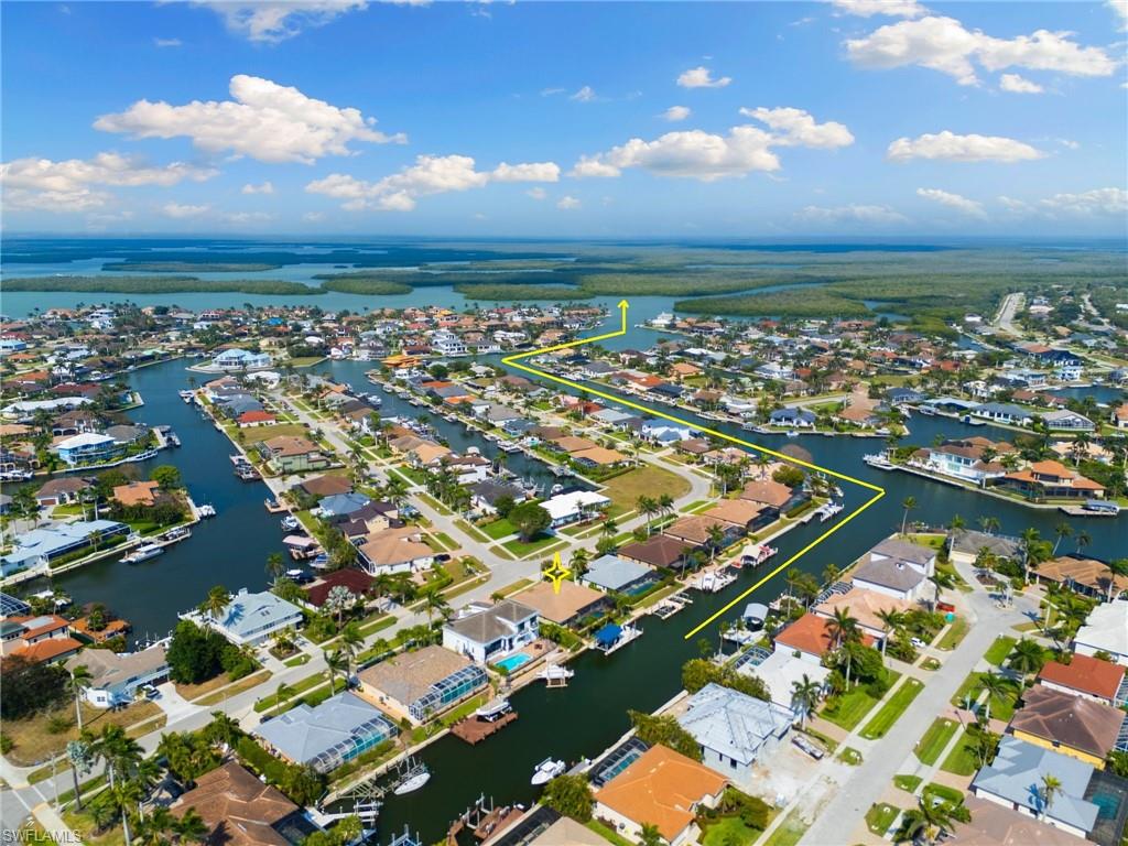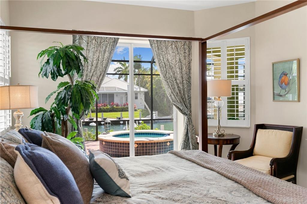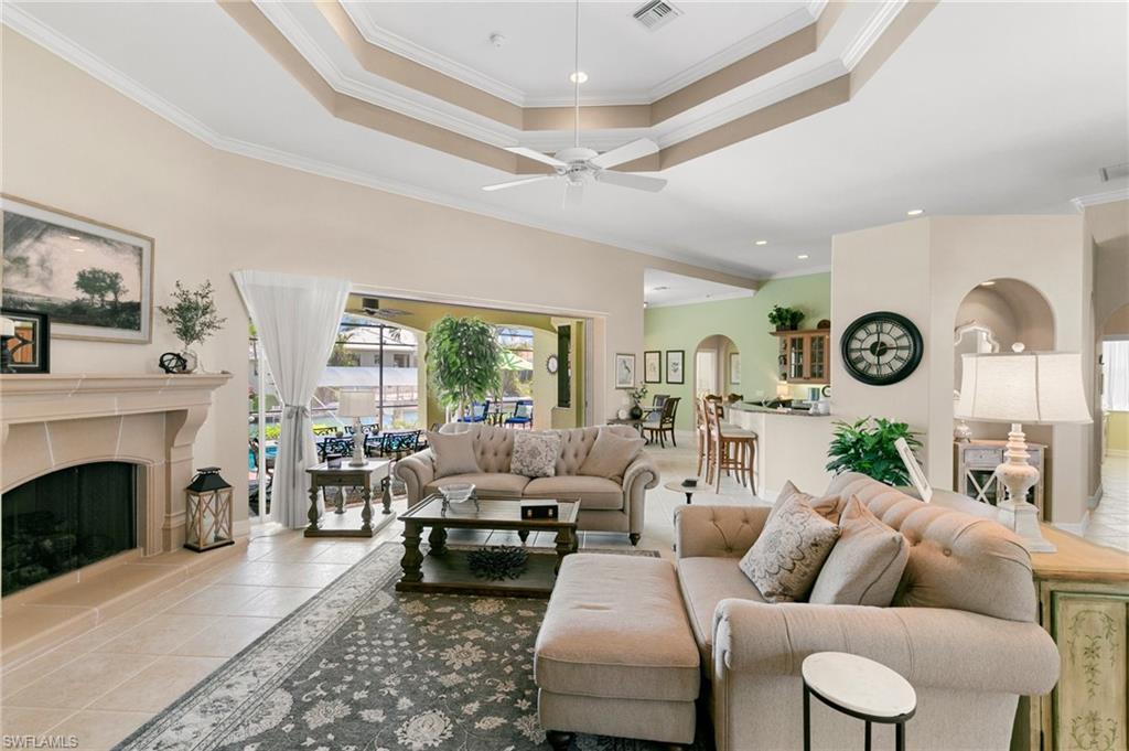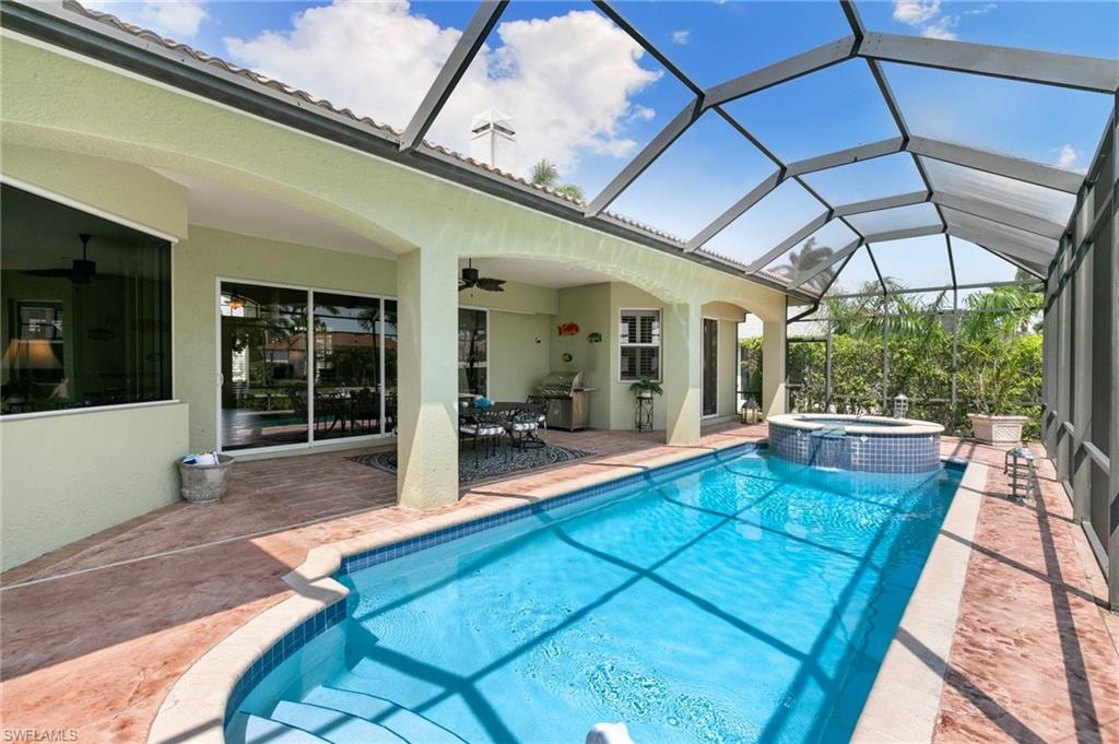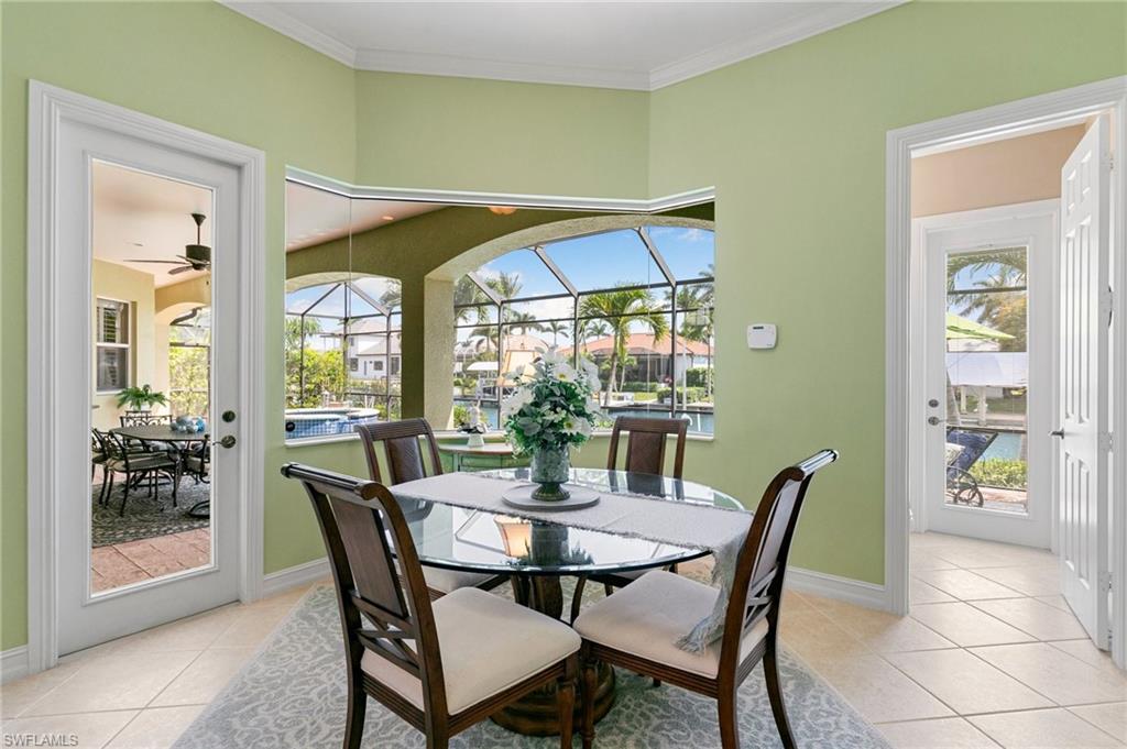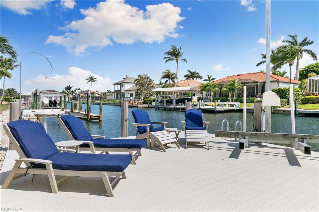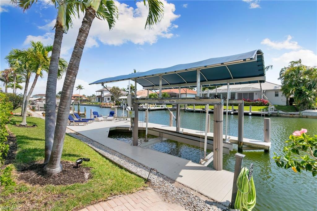 This beautifully designed 3-bedroom + office/den, 2 1/2 bath home offers direct boating access to the Gulf—no bridges, no delays—just moments away from the renowned 10,000 Islands for world-class fishing, boating, and island-hopping adventures. Step inside to find an inviting split-bedroom layout that provides both privacy and flow, enhanced by high coffered ceilings and sunny southern exposure. The spacious kitchen is a chef's delight, featuring a wine cooler, beverage frig, pantry, breakfast bar, and generous counter space—perfect for entertaining or casual family meals. The adjacent dining area boasts a stunning mitered glass window offering sparkling views of the pool and tranquil canal. The primary suite is a retreat, offering access to the pool and a master bath with two enclosed his and hers water closets and a soaking tub. Outdoors, enjoy your personal paradise with a screened-in pool and spillover spa, ideal for soaking in the Florida sun or enjoying cool evenings under the stars. The covered boat dock comes complete with a 12,000lb boat lift, jetski lift, and expansive deck area for lounging, dining, or sunset cocktails. Located in the desirable River area, this home is perfect whether you're a year-round resident or seasonal escapee. This property delivers the ultimate Florida lifestyle plus offers a 1 Year HOME WARRANTY for the new owner's peace of mind.