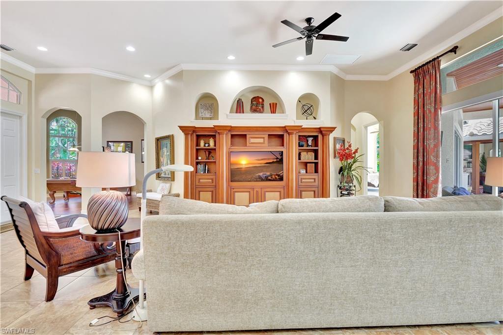 Price Reduced – Now Listed Below Appraised Value! Seller financing available Take advantage of this incredible opportunity to own a stunning home with immediate equity. Enjoy private beach access and a sparkling saltwater pool, all in a prime location ideal for a forever home or the perfect family retreat. Don’t miss out on this exceptional value—schedule your tour today! This Beautiful home is Nestled on a private lot of almost half an acre, this custom-built home boasts the prestigious address of Crayton Rd. As you drive into the circular driveway lined with beautiful royal palm trees, hidden behind landscaping that creates a sense of privacy, you’ll be greeted by either your oversized three-car garage or the inviting front door of this residence. The open floor plan with soaring 12-foot ceilings creates a spacious and airy atmosphere, while the split four-bedroom with a den floor plan ensures everyone has a private bath. The Jack and Jill bedrooms share a common bathroom, while the third full bathroom leads to the pool. A large pool table room, complete with the pool table, adds to the home’s entertainment features. The master bedroom is a true sanctuary, complete with His and her closets, a large shower with double sinks, and a soaking tub. Waking up to the view from the sliding glass doors in front of the bedroom will make every day feel like a vacation. Just beyond those doors lies your private oasis, a backyard that offers a perfect blend of openness and privacy. A saltwater pool and spa, complete with a fountain, marble fireplace, and large screened TV, awaits your relaxation. This backyard is the ideal spot to enjoy Naples’ perfect climate. But that’s not all! Residents of this prestigious Mooring’s subdivision enjoy a private beach, perfect for sunsets, all within walking distance. Additionally, the convenient location offers easy access to stores, restaurants, and an executive golf course. So, prepare to have a life you don’t need to vacation from!