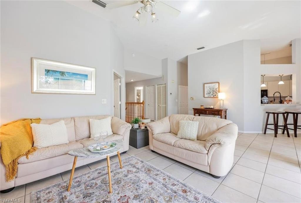 Step into the lifestyle you’ve been waiting for with this rare opportunity to own a well-maintained 3-bedroom, 2-bath condo with a ATTACHED GARAGE in the highly desirable, gated community of Lakeside. This inviting residence blends comfort, functionality, and timeless design, featuring an open-concept layout with vaulted ceilings, elegant plantation shutters, and freshly painted interiors. With tile flooring throughout and no carpet to worry about, this home is as practical as it is welcoming—perfect for relaxed, low-maintenance living in one of the area’s most sought-after neighborhoods. Upgrades include a newly epoxied garage floor, a spacious garden sink, a custom wood bannister, and a walk-in closet. The large side yard offers a sense of privacy rarely found in condo living, while the partially furnished interior adds convenience for a seamless move-in experience. This home sits directly across from all of Lakeside’s premier recreational amenities, making it easy to enjoy everything the community has to offer. Centered around a tranquil 40-acre lake, Lakeside features a resort-style setting with pools, spa, clubhouse with fitness facilities and sauna, and courts for tennis, pickleball, bocce, and more. A scenic walking path winds through lush landscaping and past illuminated fountains, creating a serene environment to enjoy daily. Set within one of the most desirable areas of Naples, just minutes from the iconic Vanderbilt Beach and some of the city’s finest dining and shopping destinations, this home offers a lifestyle of convenience, relaxation, and coastal charm
