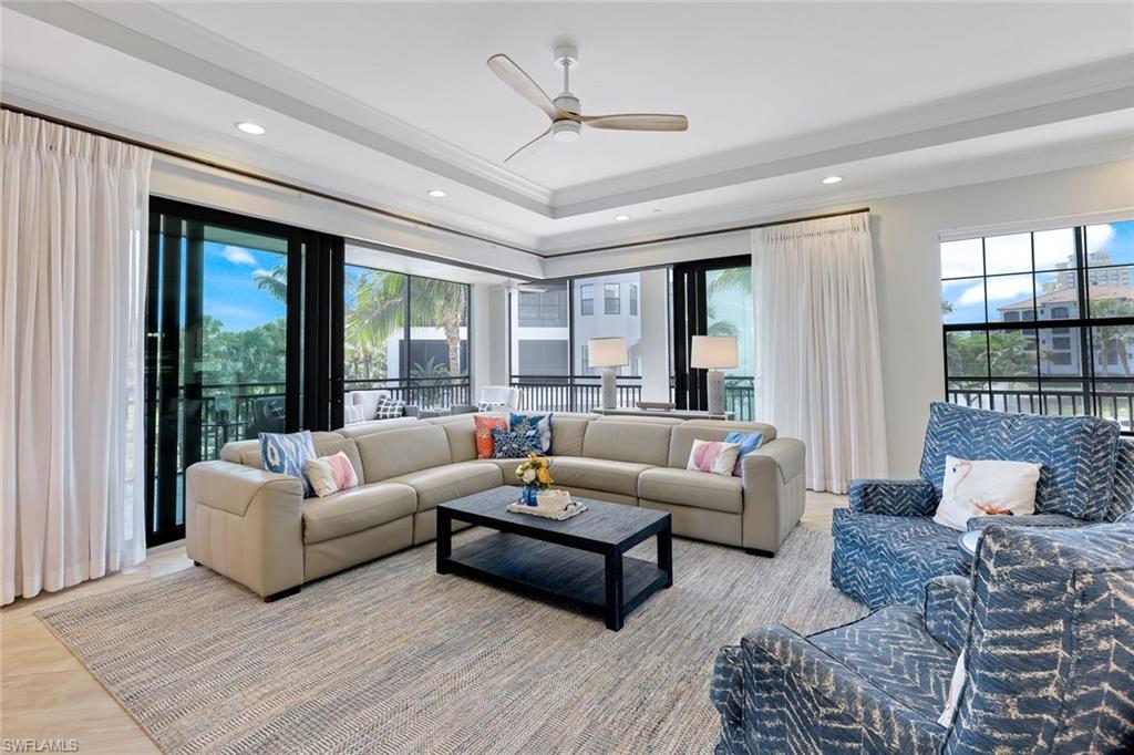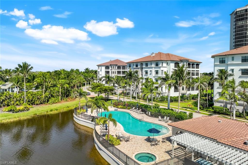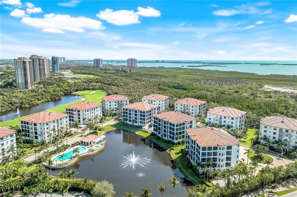 Welcome home to Cielo at The Colony! LAKE AND GOLF VIEWS! This home affords an easy breezy lifestyle that lives like a single family home without the maintenance. It resides in a unique boutique building that is situated not only to take in the incredible light filled Southern exposure, but because of the way it is angled, you get even MORE views out the West over another lake, pool and sunsets. No other building in the neighborhood can compare. Three bedrooms plus Den. Three FULL baths plus a half bath powder room. This home also comes with TWO parking spaces. One enclosed under the building and another under a pergola in the courtyard. Large storage closet in the garage for your bikes and beach gear This wide open, great room floorplan was built in late 2015 with high quality impact windows and sliders. HVAC new in 2022. Residents of The Colony at Pelican Landing enjoy the following ALL included in your residency. No Membership Required. TWO canoe and kayak parks with access to watercraft on Spring Creek. Tennis galore! Pickleball, bocce, fitness and a idyllic beach park island on The Gulf of Mexico with chairs, umbrellas, bathrooms. INCLUDED. Lastly, every resident in The Colony at Pelican Landing enjoys complimentary Membership to The Bay Club. A fabulous dining and activities club situated on the serene Estero Bay with formal and casual dining, live music at sunset a few times a week, event nights like NYE, Holiday dinners, Sports themed gatherings, Mothers Day and Easter Brunches, Trivia Nights, Pasta Nights and more! Don't miss this gorgeous home. Looking forward to meeting you and showing you around!
