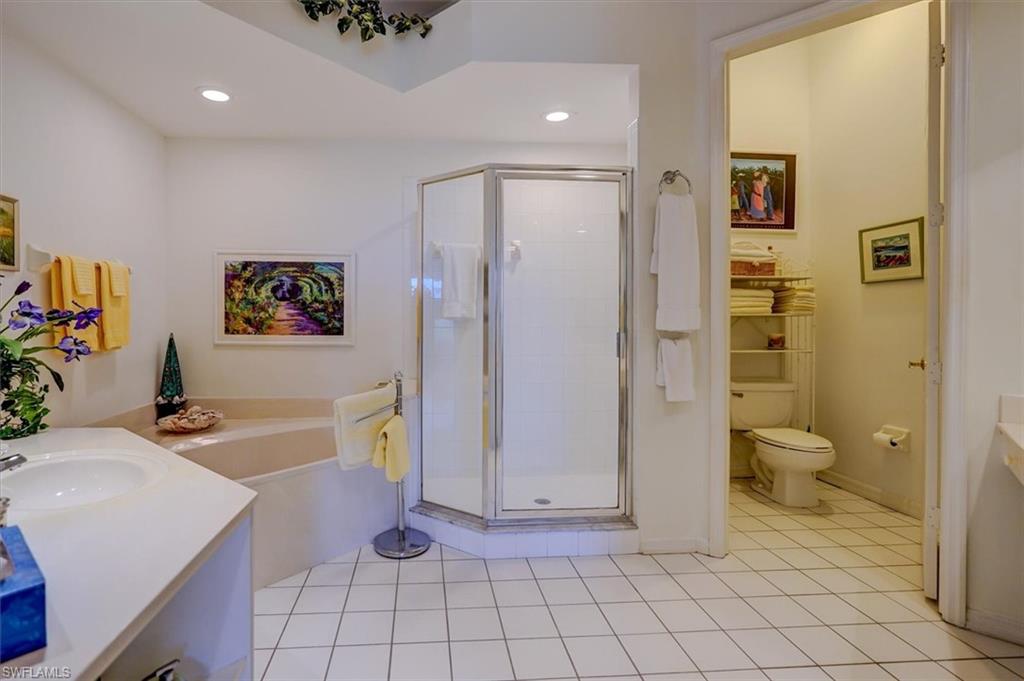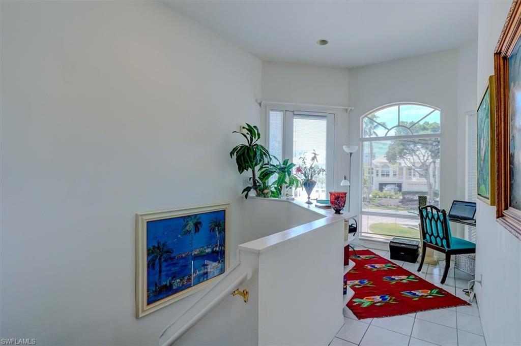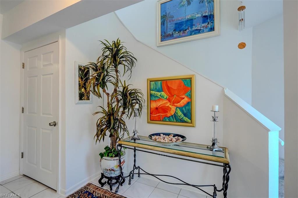 HUGE PRICE IMPROVEMENT ! You will LOVE to own this prestigeous very spacious ( ca.1700 sqft ) Waterfront Home in Ostego Bay II ! This lovely home is a 2 story 3/BD 2/BA Villa with main living area on the 2nd floor, also accessible by elevator ! The bright and airy living area , spacious screened lanai as well as the large owners suite offer serene water and preserve views and sunset vistas. The en-suite main bedroom features separate tub & shower, dual sinks & vanities and linen closet. The living space above the 1st floor foyer accommodates a home office and a spacious airconditioned closet from the foyer allows for extra storage. One of the guest rooms has its own private balcony to enjoy your morning coffee. New A/C (2024), new refridgerator, new garage door opener, tiled floors, elegant plantation shutters, etc. add to the comfort. And this home is a car lovers Dream !! The HUGE 6 car garage with access to a second lanai adds even more value !! Ostego Bay II features a large Geo Thermal heated pool and spa. Boat docks can be purchased or leased nearby. Only minutes to the Beach, Marina Plaza, shopping and dining. Combining the privacy of a single family home with the convenience of a condo, this beautiful home has it All !