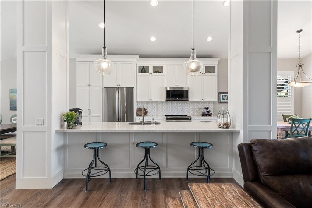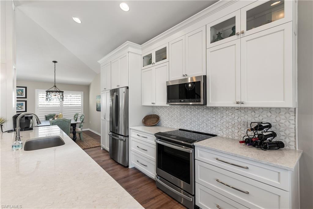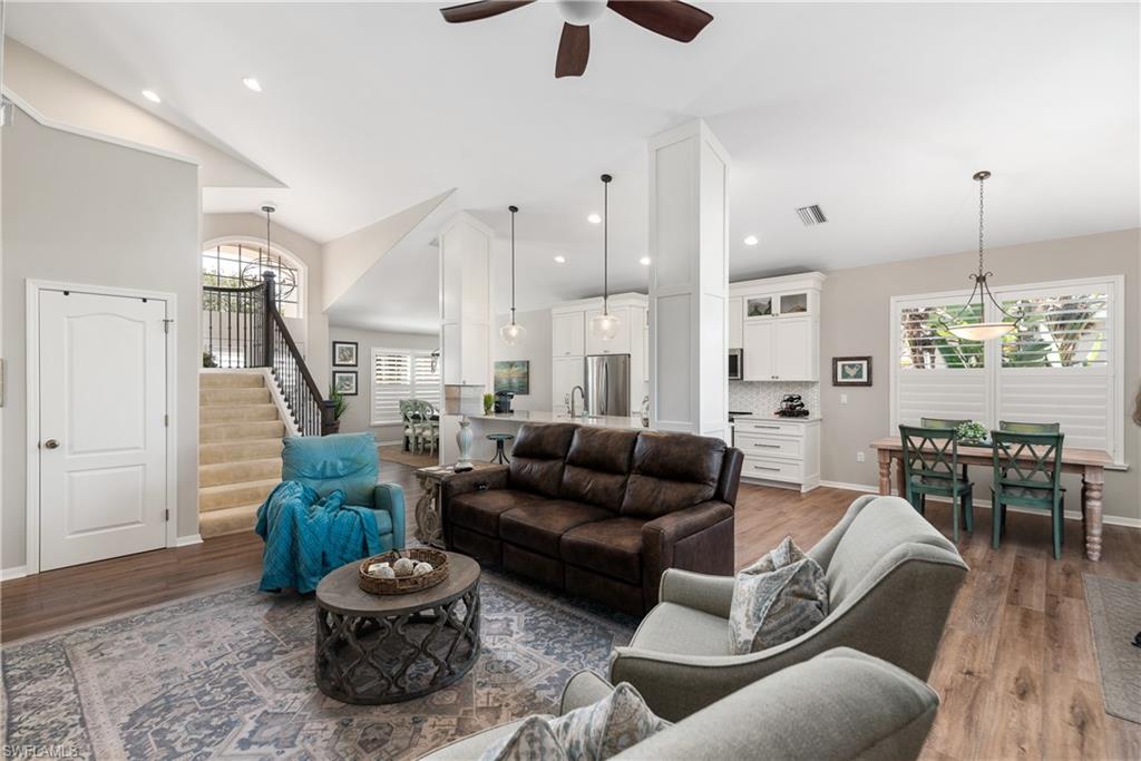 One of a kind updated Laurel model. You will be impressed with all the improvements including new kitchen (with central wall removed) and baths. New roof 2019, New lanai cage with huge picture window screen 2021, New A/C 2025, and Lanai Pool surface with stamped concrete. The beautiful open kitchen now boasts quartz counters, white cabinets with upper glassed showcase cabinets, GE profile stainless appliances, and wine cooler. New luxury vinyl plank flooring and staircase railings. Wide golf course views from spacious lanai with pool and spa. Copperleaf is the premier bundled golf community with very low density of 570 homes. Members enjoy an active community offering events, tournaments, activities and a great Florida lifestyle. The championship golf club has been newly updated with outside "Osprey" dining restaurant and a stunning remodeled clubhouse. Also included are tennis, bocce, exercise and community pool/spa facilities. Residents have an option of joining the Brooks Commons Club, memberships that include a private beach club, a health and fully staffed fitness center/spa, an enrichment center with active social clubs, and a private restaurant. Copperleaf's ideal location has easy access to area beaches, shopping, health facilities, and nearby restaurants. The drive to RSW airport is only 15 minutes.