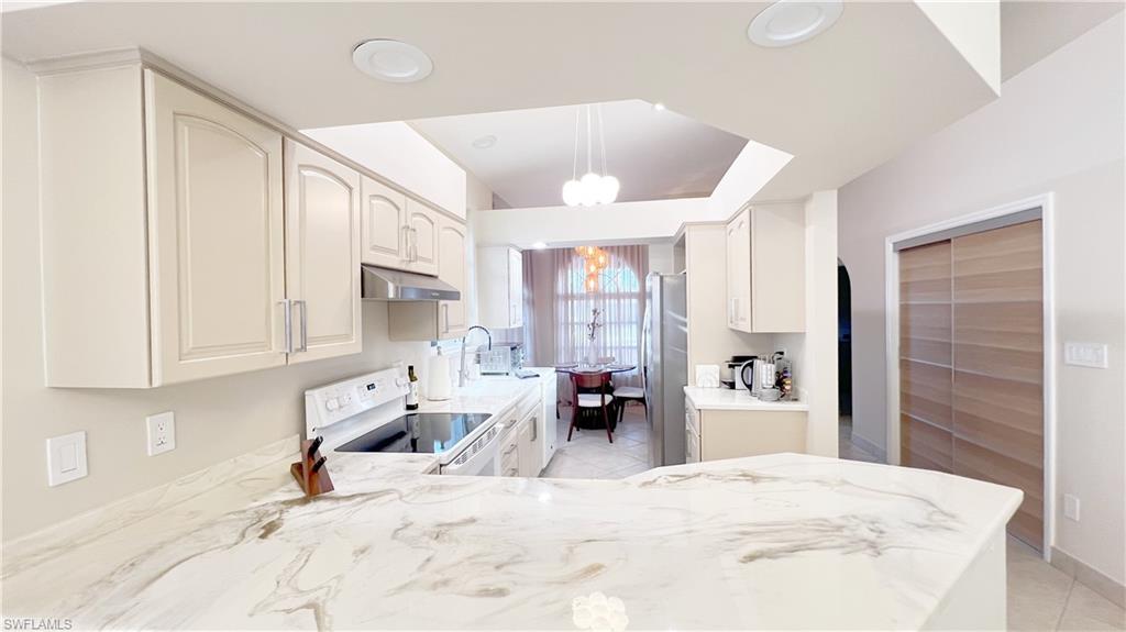 Welcome to Naples Park-your gateway to the Naples lifestyle, just minutes from Vanderbilt Beach and Mercato. This immaculately maintained, recently updated home sits on a cornber lot and features a bright, open -concept layout enhanced by large windows and offer a peaceful view of the lanai The kitchen is equipped with GE&Whirlpool appliances, ample cabinet storage, walk-in pantry. A . flexible den/home office. The dedicated door leads to the lanai. The home includes a large two-car garage w/ample driveway parking, offering convenience for multiple vehicles. Built in 2002 and offering approx. 1781 sq ft under air, thoughtful layout, and exeptional proximity to beaches, dining and shopping