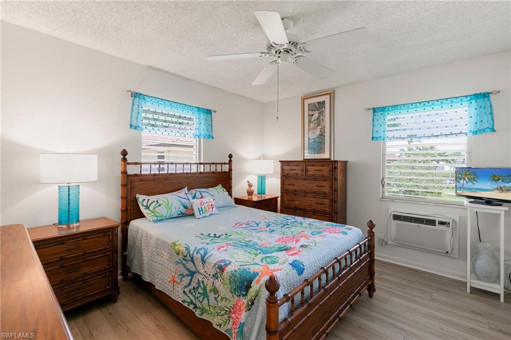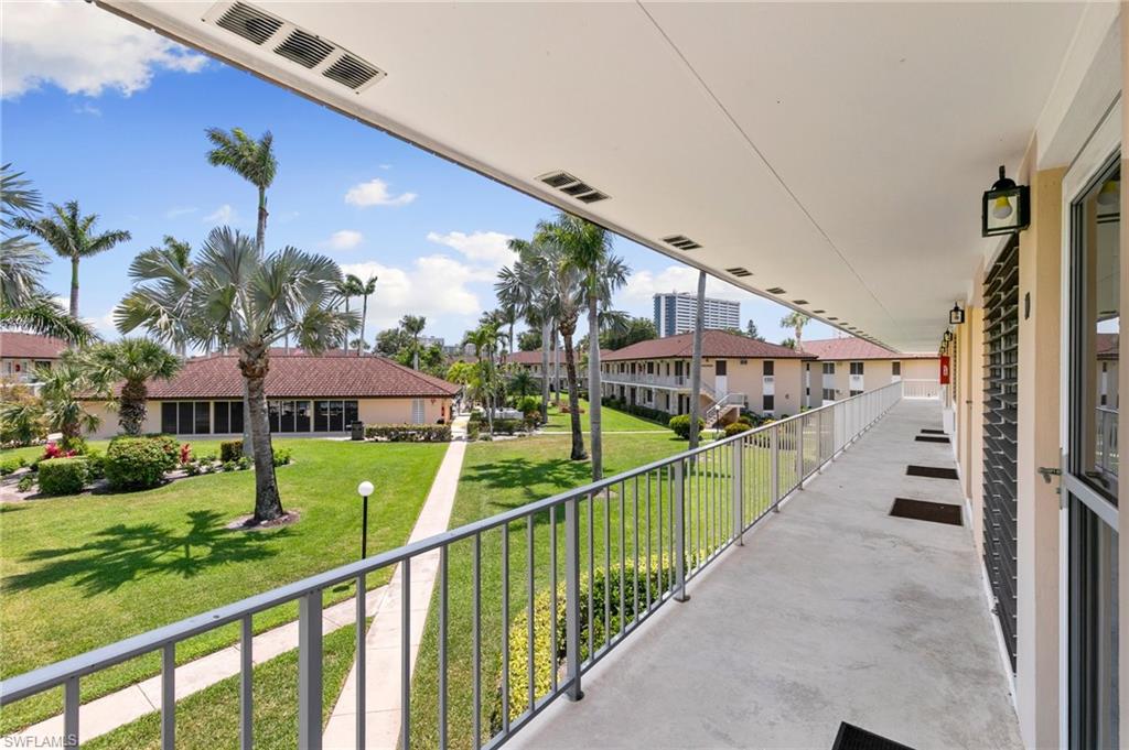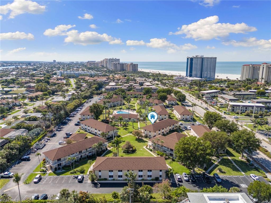 An easy way to enter the Marco Island lifestyle presents itself with this 2 bedroom, 1 bathroom fully furnished condominium at Aquarius. Location is the name of the game here, with Resident's Beach, restaurants, and shops all in remarkably close proximity. This is a second floor corner unit, meaning additional windows and lighting grace the living space. Bathroom has seen numerous upgrades, including an updated shower and vanity. Jalousie windows with crank shutters for privacy. Vinyl and tile flooring throughout the unit. Newer A/C wall unit in living room (2023), hot water heater (2021). Amenities include barbecue, bike storage, car wash area, community pool with clubhouse, picnic area, and shuffleboard court; this well managed association takes phenomenal care of their beautiful grounds as well, which will be apparent when showing. This could be the dawning of the age of your Marco Island paradise at Aquarius, come check it out!