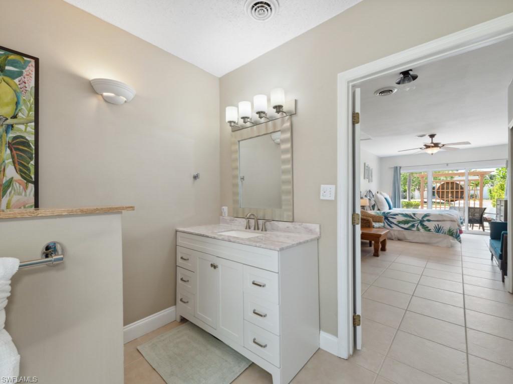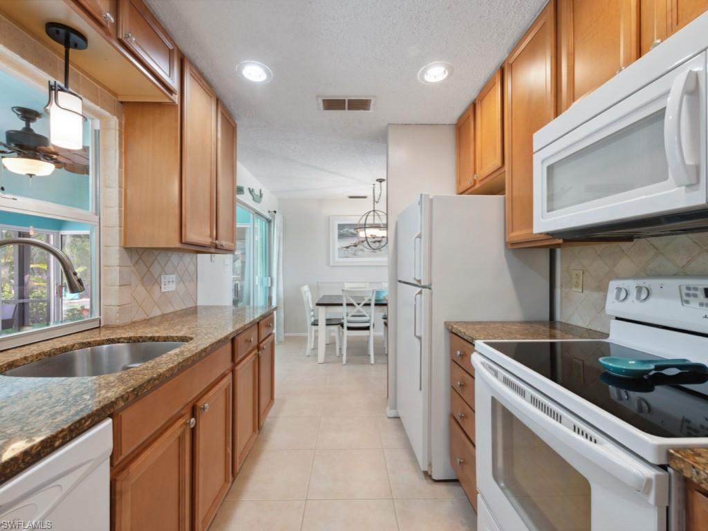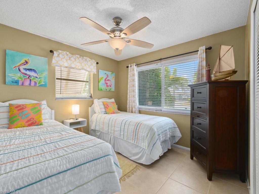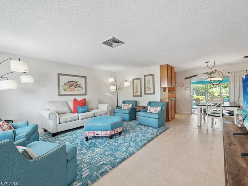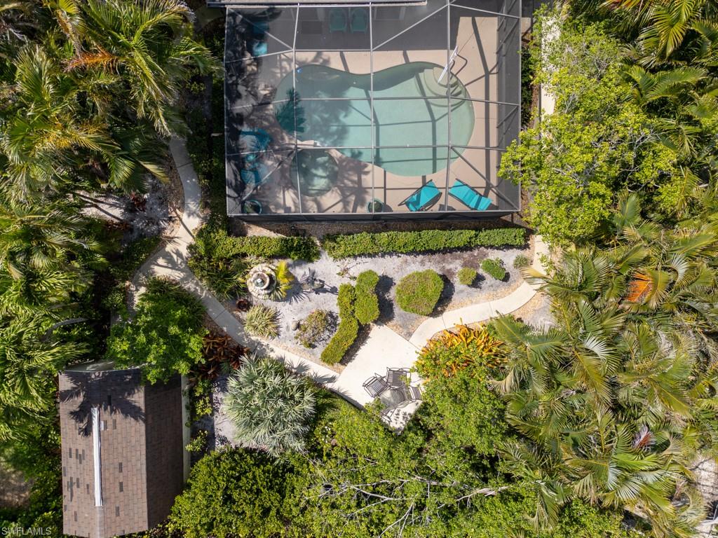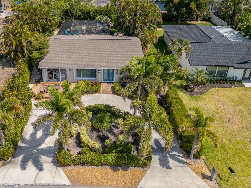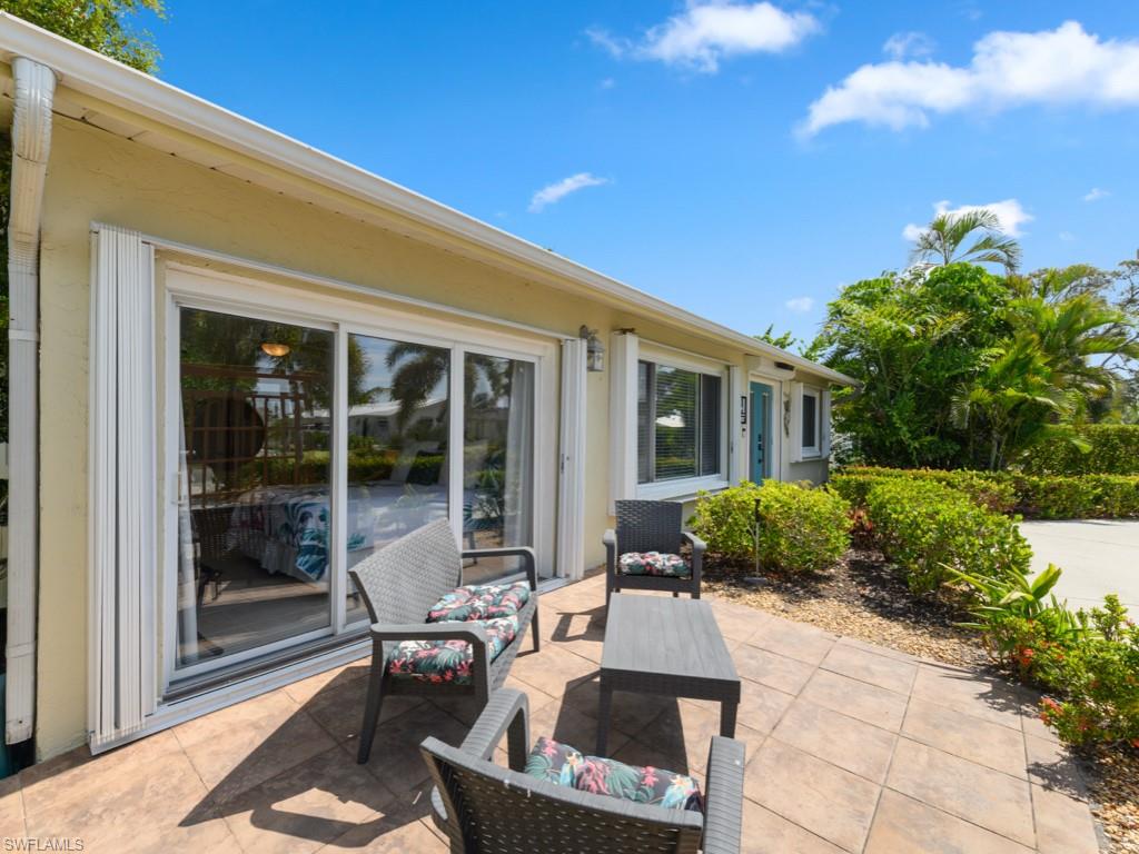 This move-in-ready, 3-bedroom, 2-bathroom single-family home offers the ultimate Florida lifestyle, just 5 minutes from the white, sandy beaches of Bonita Springs, shopping, dining and the array of amenities SW Florida has to offer. Nestled in a peaceful setting with lush, tropical landscaping, this residence provides privacy and tranquility. This lovely home features a spacious primary suite with a private bath that opens directly to the pool/spa area, perfect for relaxing or entertaining. The split bedroom floor plan includes two additional bedrooms on the opposite side of the home, one of which also opens to the Florida Room and pool beyond enhancing outdoor living options. A convenient bathroom is located just steps from the pool and lanai, adding to the seamless indoor-outdoor experience. Enjoy the Florida sunshine on the open front or rear patios, both ideal spots for unwinding. A glass-enclosed, 4 season Florida room offers versatile additional living space. Inside, easy-maintenance tile flooring flows throughout, combining charm and practicality.The property is situated outside of a flood zone, has hurricane protection, and did not flood during recent events. Notably, it features a 2019 roof for added peace of mind. For investors, this home has a strong rental history and comes turnkey furnished, ready for immediate occupancy or rental income. With no HOA, CDD, or rental restrictions, this charming property offers exceptional flexibility. Don’t miss the opportunity to make this Florida paradise your new home!