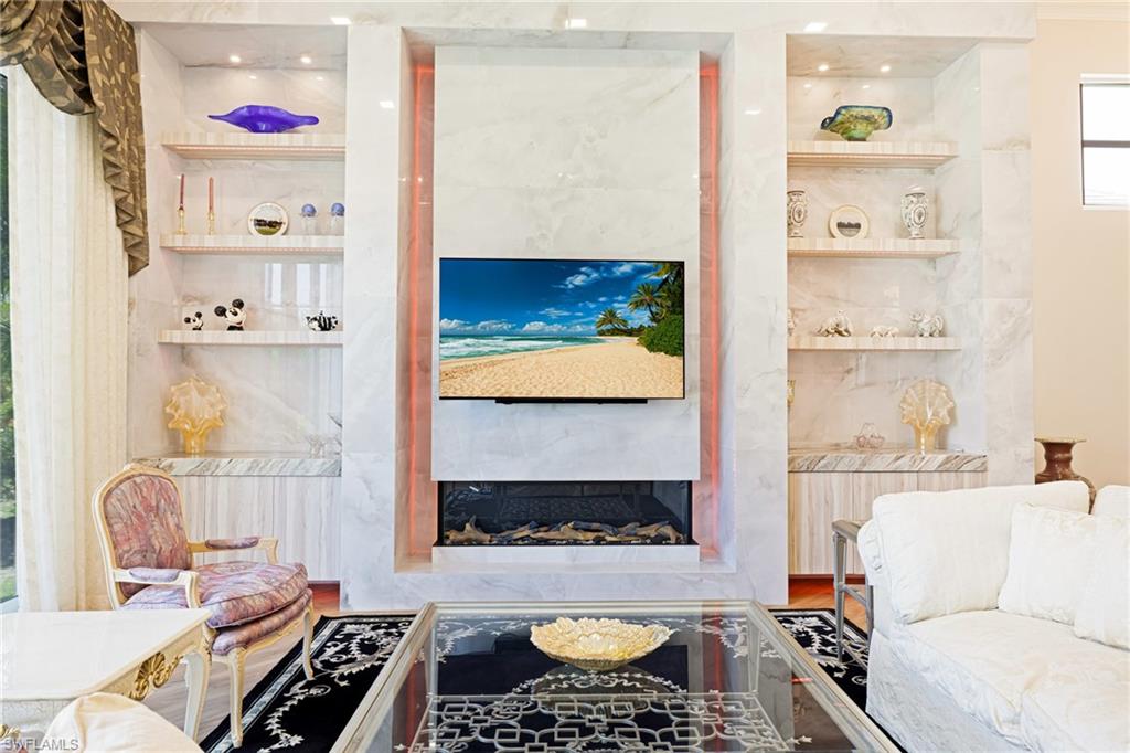 This exceptional 3-bedroom plus den, 3.5-bathroom estate home in West Bay Club has been extensively upgraded and expanded to offer the perfect blend of luxury, functionality, and relaxed elegance. Designed with quality finishes and thoughtful details throughout, the home features a spacious open floor plan ideal for both everyday living and entertaining. The chef’s kitchen is a true culinary showpiece, featuring a 42-inch natural gas burner, twin Sub-Zero wood-paneled refrigerator and freezer, Miele cappuccino/coffee maker, steamer, warming drawer, double ovens, granite countertops, a separate prep island with sink, abundant cabinetry, and a breakfast bar that flows into the informal dining area overlooking the pool. The expansive living room offers custom built-ins, a glass fireplace, floor-to-ceiling sliders, and surround sound, while the formal dining room includes a built-in wet bar. The den is outfitted with rich built-in cabinetry and an elegant workspace. The massive primary suite is a peaceful retreat with a sitting area, fireplace, 10-foot pocket sliders that open directly to the lanai, and a spa-like bathroom with a soaking tub, walk-in shower with multiple shower heads, and dual vanities. A separate casita provides a private guest suite with its own entrance and access to the lanai. The real highlight of this home is the outdoor living space—perfectly designed for year-round enjoyment with a sparkling pool and spa, a fully equipped summer kitchen, and multiple areas for dining, lounging, and entertaining, as well as a separate screened lanai with stunning views of the natural preserve and breathtaking western sunsets. Whether you're relaxing poolside with a book or hosting guests for sunset cocktails, this outdoor sanctuary captures the essence of Florida living. Residents of West Bay Club enjoy access to world-class amenities including a private Beach Club on the Gulf of Mexico, championship golf, tennis and pickleball, a boat ramp with direct Gulf access, a resort-style pool and spa, state-of-the-art fitness center, and a beautifully appointed clubhouse with both fine and casual dining. Ideally located east of US 41, you're just minutes from Coconut Point, Miromar Outlets, Hertz Arena, and 20 minutes from Southwest Florida International Airport. This remarkable home and community offer the best of luxury living in Southwest Florida.