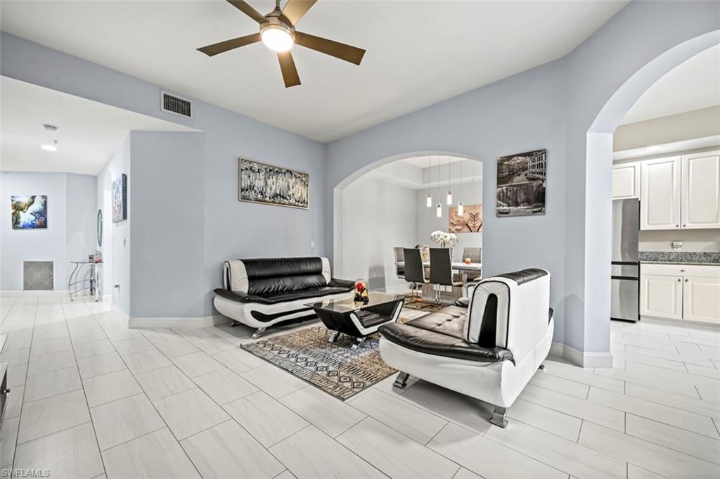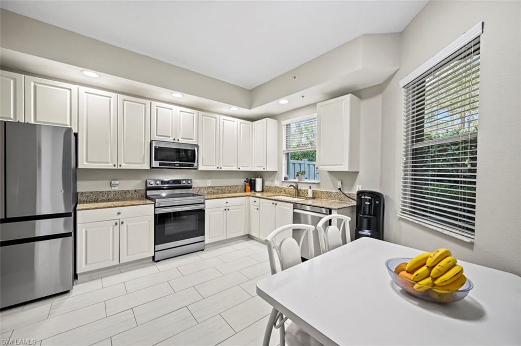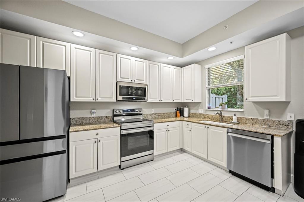 Exceptional Value! One of the most affordable units in Mariposa! Seize this rare chance to own this chic 2+Den bedroom, 2-bathroom coach home with an attached 1-car garage in a prime North Naples location. This gated treasure is steps from shopping, dining, I-75, beaches, and Physician's Regional Hospital. The inviting first-floor unit is offered with Furnishings Negotiable, meticulously maintained, and features granite countertops, tray ceilings, updated tile flooring, dual closets, and more! Enjoy a convenient, stair-free layout, situated directly across from the community pool and fitness center. Move-in ready!