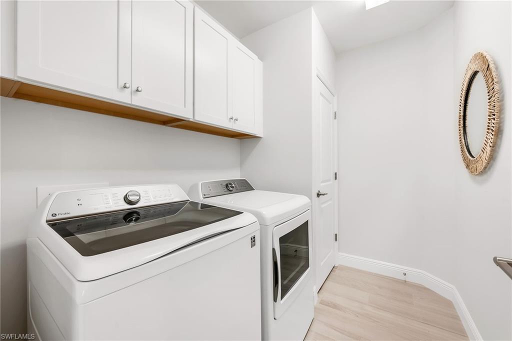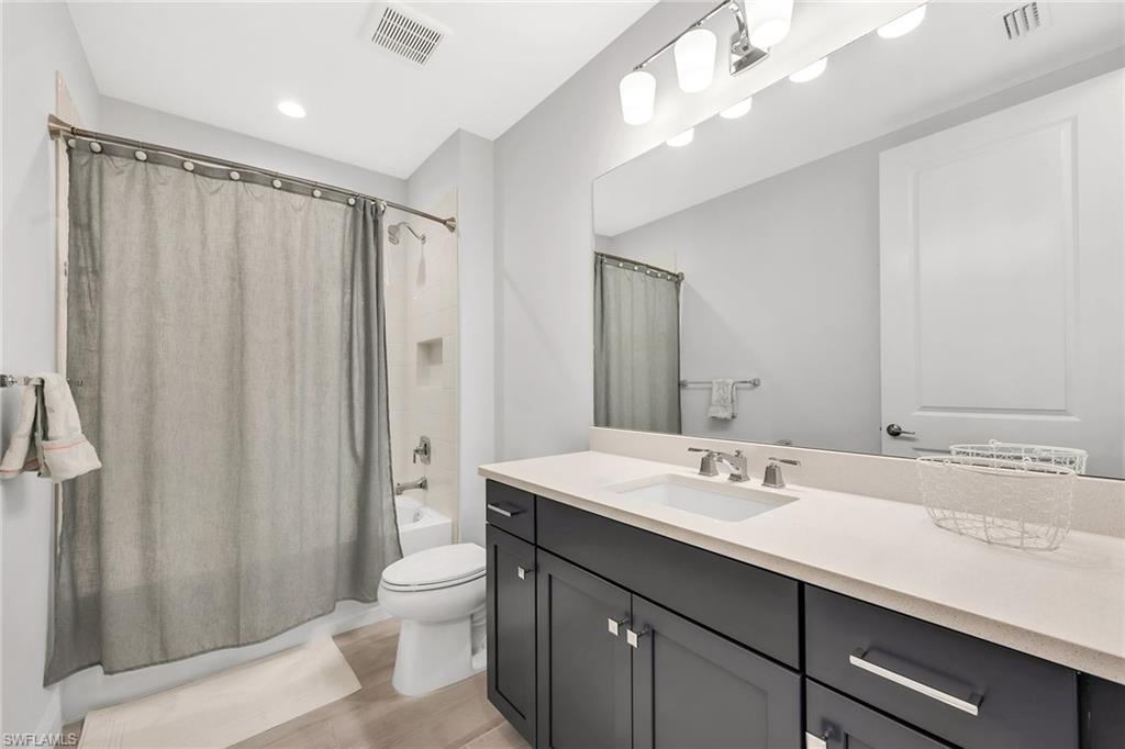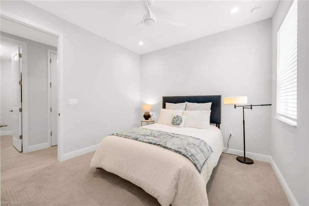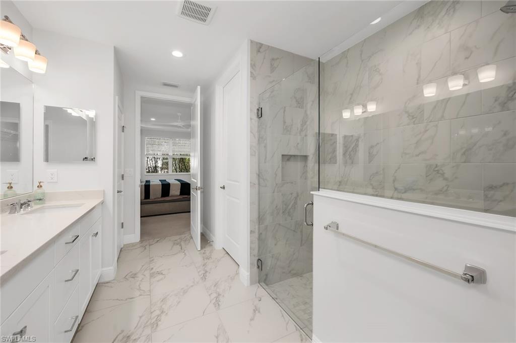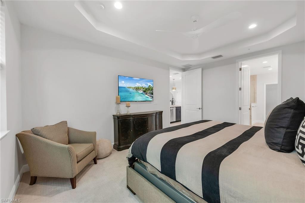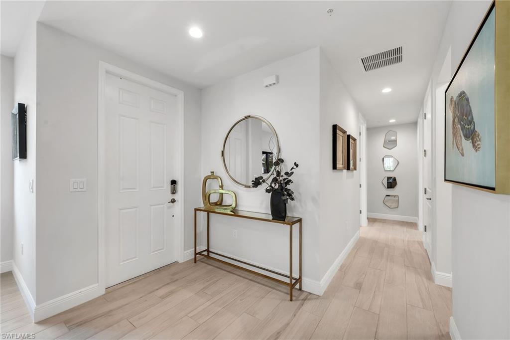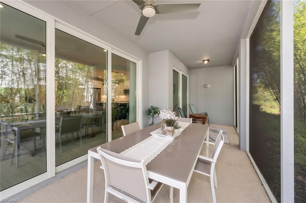 Are you seeking a move-in-ready residence that offers privacy, designer-curated interiors and effortless luxury? This fully furnished, first-floor Keswick end-unit carriage home, built in 2022, is the best priced property in Seychelles and showcases refined living with lush private garden views and southeastern exposure. Thoughtfully decorated by a professional interior designer, the residence is filled with modern finishes and timeless style, offering two bedrooms, two baths and impact-rated windows and doors throughout. Inside, the open floor plan features tile flooring in the main living areas, recessed lighting and an airy, sophisticated ambiance. The kitchen is a showpiece with white shaker-style cabinetry, under-cabinet lighting, quartz countertops, a tile backsplash and stainless steel appliances including a range, microwave and French-door refrigerator with ice maker. A large center island with a bar counter anchors the kitchen, seamlessly connecting to the adjacent dining area with a chandelier and spacious living room, both of which offer access to the landscaped lanai, a private retreat ideal for quiet mornings or alfresco entertaining. The primary suite features a tray ceiling and a beautifully designed en-suite bath with a dual-sink vanity, a frameless glass walk-in shower tiled floor-to-ceiling, and an oversized walk-in closet with built-in shelving in the bath for added convenience. The guest bedroom offers a large walk-in closet and is adjacent to a bath with a shower tub combo, providing comfort and privacy for visitors. Residents of Seychelles enjoy access to resort-style amenities, including a tropical pool, spa, state-of-the-art fitness center and a 4,500-square-foot clubhouse. Ideally minutes from Naples beaches, shopping and dining, this beautifully furnished home delivers comfort, sophistication and exceptional value in one of Southwest Florida’s desirable gated communities.