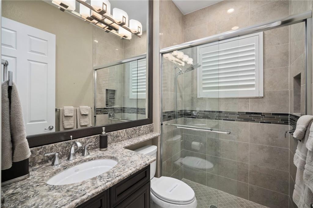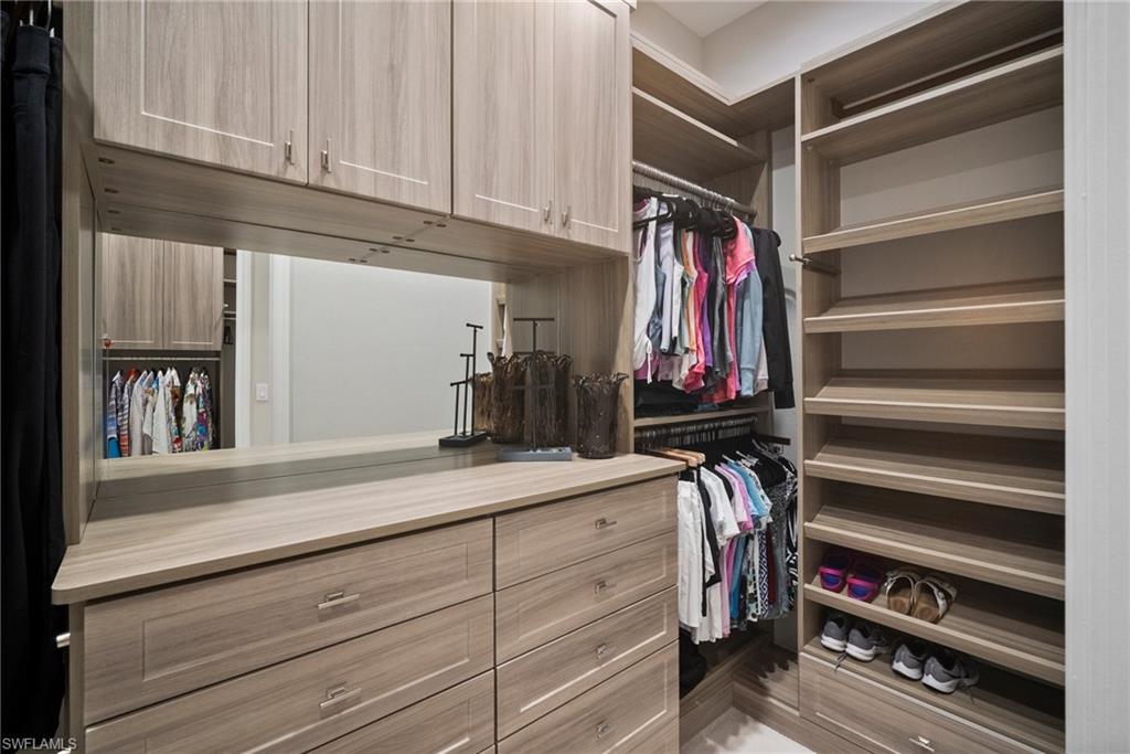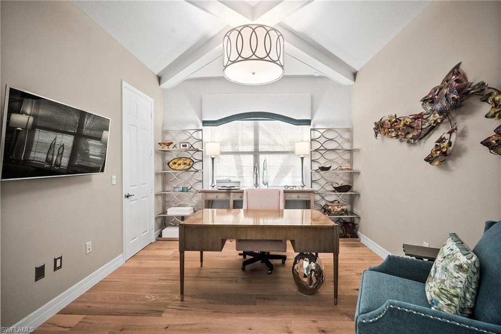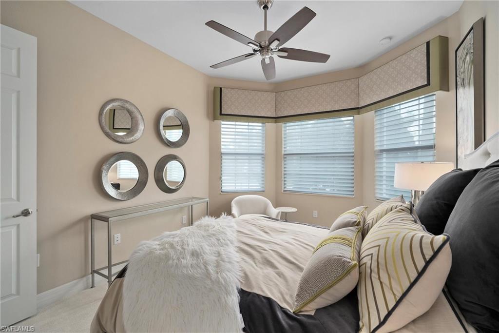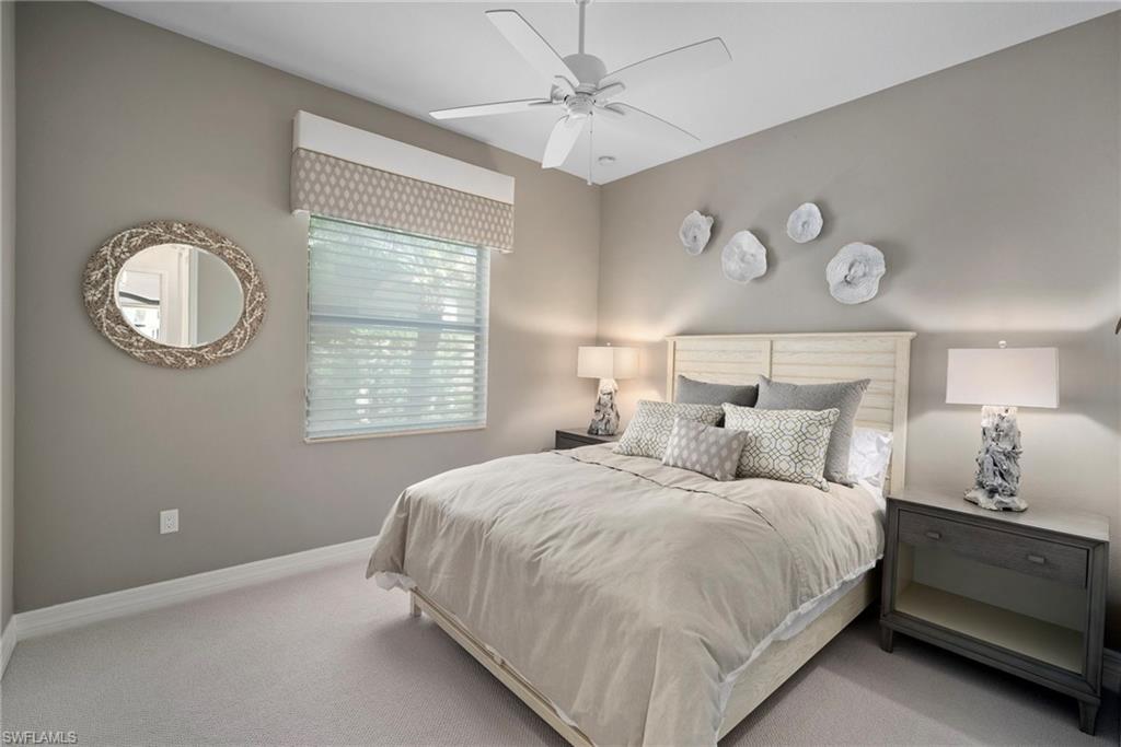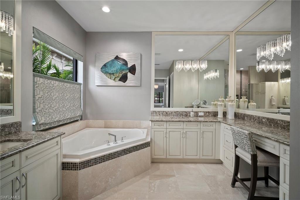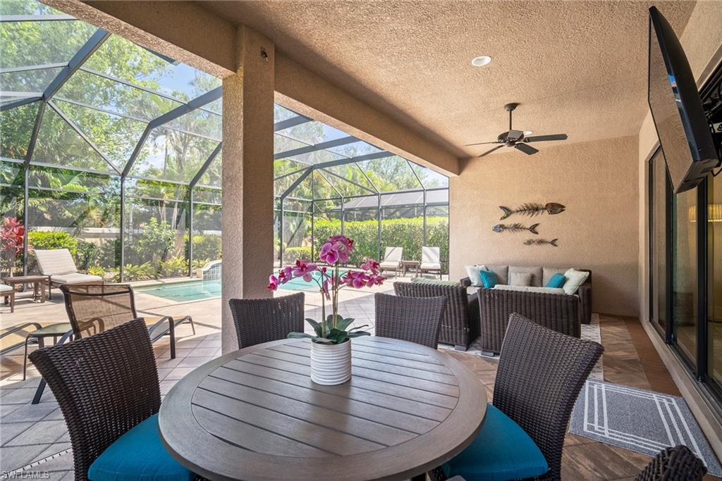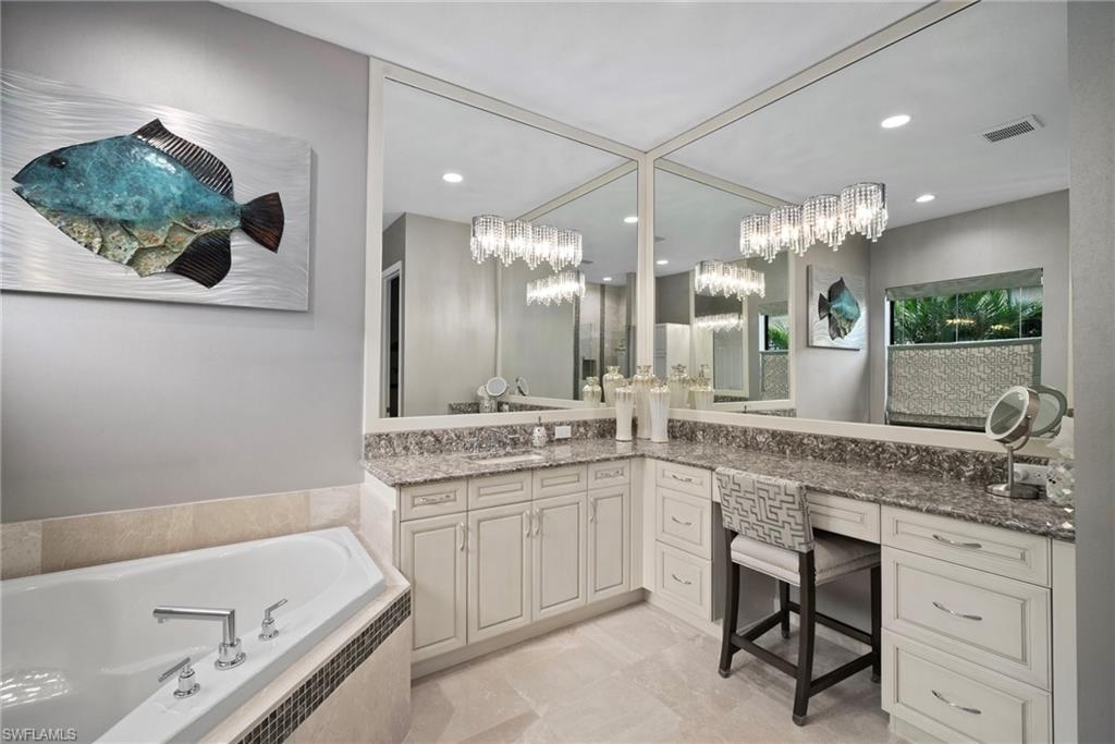 Professionally curated by Design West with over $300,000 in upgrades, this home showcases quality and style with custom coffered ceilings, elegant lighting, and premium finishes throughout. The open-concept layout blends everyday comfort with an entertainer’s flair featuring a custom media wall, and a built-in bar with wine cooler. There is meticulous attention to detail in the wall coverings, blinds and draperies which highlight the natural light and space. The kitchen offers quartz countertops, high-end appliances, and custom cabinetry with built-in pantry, and roll out drawers for smart, stylish storage. Every detail speaks to high end craftsmanship, from extensive woodwork around windows, doors, and mirrors, deep baseboards, crown molding, and intricate custom ceiling woodwork that elevate the entire space. All closets have been custom built as well. The owner’s suite is a true retreat with its custom ceiling and wall treatments. There are two fully built-out closets and a spacious spa-inspired bathroom that invites relaxation. Each guest suite enjoys its own private bath and wing for privacy. Throughout the home, custom window treatments—including silhouette shades and elegant drapery add warmth and privacy. All the bedrooms have remote powered blackout blinds. Step outside to a serene oasis with lush landscaping, a saltwater pool with a tranquil fountain, and a spacious covered lanai—perfect for year-round dining and entertaining. A whole house generator with 500 gallon propane tank, impact-rated windows and StormSmart hurricane screens provide peace of mind, while the epoxy-coated garage floor with built-in storage completes this one-of-a-kind offering. Marbella Isles offers world-class amenities and is conveniently located in the heart of Naples, in a great school district, just minutes from beaches, shopping, and downtown. Amenities include active pickleball & tennis programs, bocce courts, a resort-style pool, separate pool & play area for kids, world-class clubhouse with a fitness center, half-court basketball, & kitchen and games rooms. The community is meticulously maintained, has a solid HOA board and strong cash reserves.
