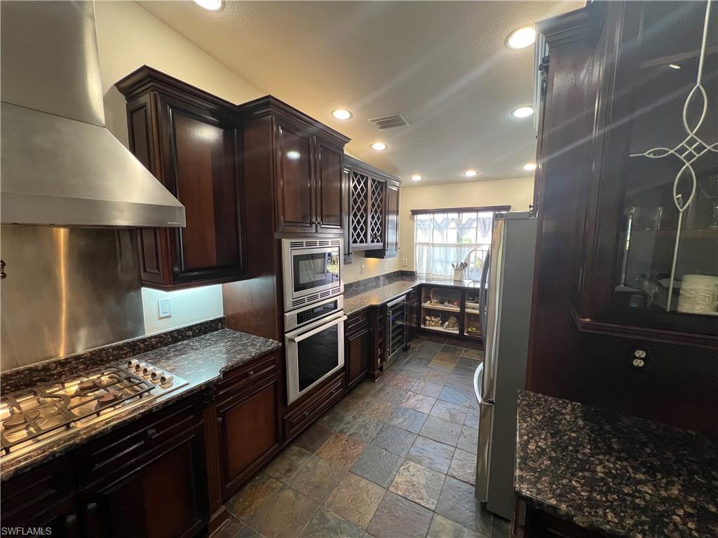 Spectacular villa with gourmet chef's kitchen! This is a cook's dream. Tons of counter space, storage, gas stove, copper sink, fan hood, wine cooler, solid wood cabinetry and more. In addition, this home is storm ready with accordion shutters, whole house generator, buried propane tank and a sunroom with impact glass. The comfortable master suite offers two walk-in closets, tile shower and dual sinks. The guest bedroom has 3 closets offering tons of storage and an office setup with cabinets and desk that could be easily removed if desired. All of this with nice lake views, lush landscaping and a spacious two car garage. Sapphire Lakes offers gated entry, 4 pools, tennis, pickleball, low fees and an active social calendar. This is a very unique find at this incredible price. ***Seller is open to closing cost assistance or other buyer concessions.