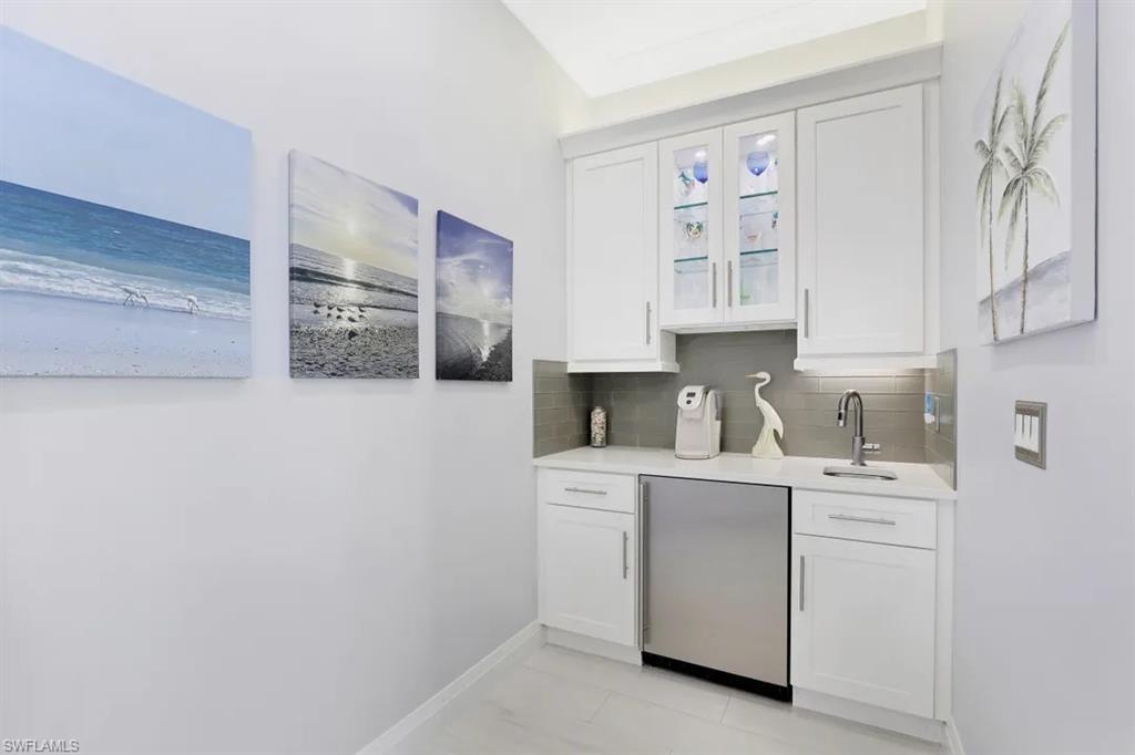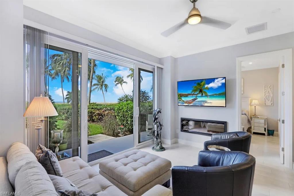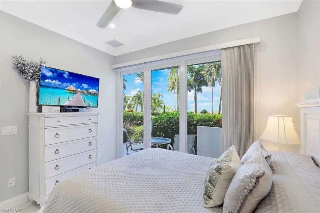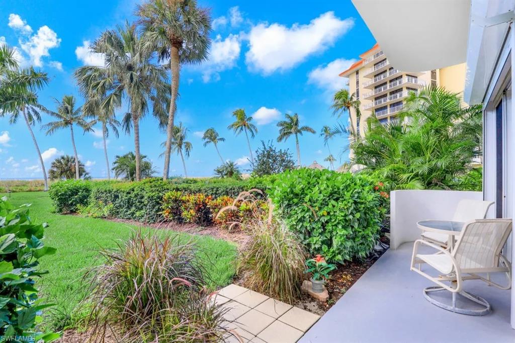 This condo was taken down to its bare walls and reimagined to the highest standards. Ceilings were raised to take full advantage of the 1st floors 10 foot height which gives you that extra spacious feel. The kitchen was relocated and enlarged with an added coffee/wet bar. Master bath was enlarged and feels like walking into your own private spa. Every detail of this condo was carefully thought out, from the remodel down to the furnishings (yes, everything stays) to make this a comfortable retreat. Aside from the beauty of its inside, just step out your impact sliding glass doors to a very private patio and enjoy the view (and your favorite beverage) as well as the convenient access to the Beach or pool, (not to mention the beautiful sunsets). All this plus the amenities that come with this polished gem include secured building, tennis, car wash area, covered parking and barbecue by the pool. This condo has also experienced a successful rental past with renters returning year after year.