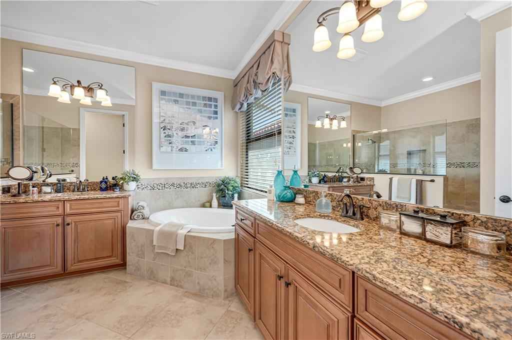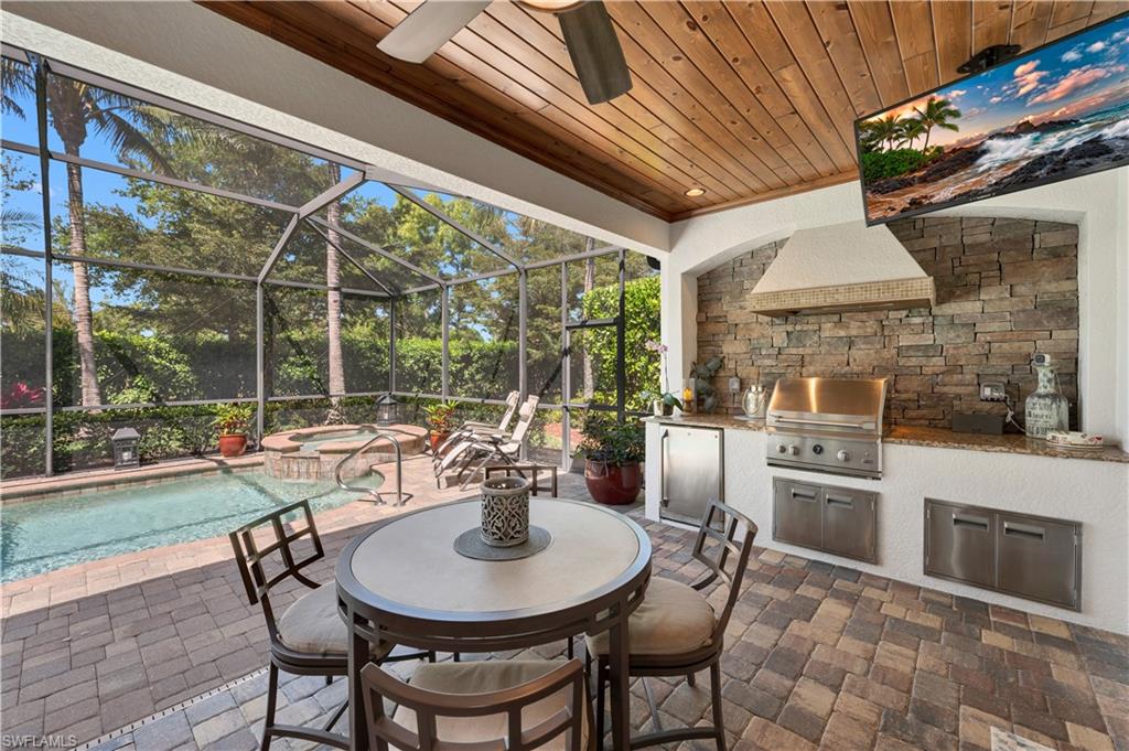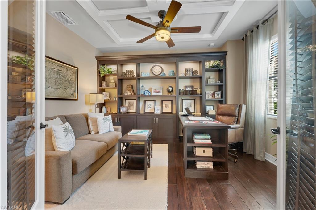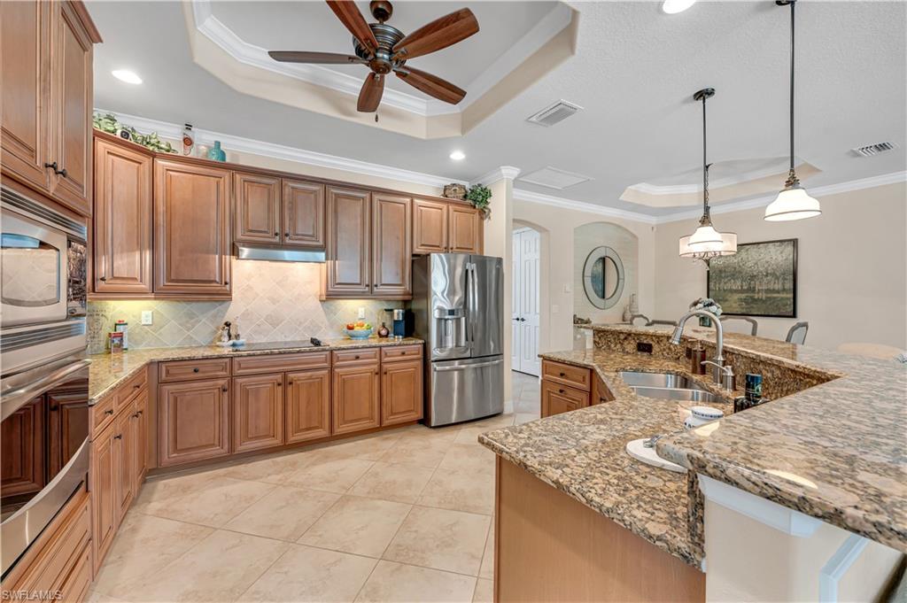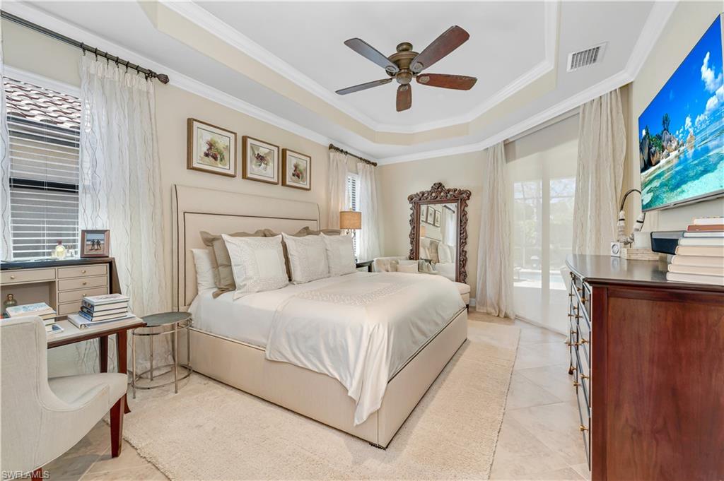 Fresh Price Drop! Lowest Priced Available Single Family Home with Golf Membership. Welcome to this exceptional Victoria model home built in 2014, located in the prestigious TPC Treviso Bay with DEEDED GOLF MEMBERSHIP & very close proximity to the Treviso Bay Club. This stunning 1,901 sq/ft residence features 2 bedrooms + Den and 2.5 bathrooms, offering both comfort and flexibility. With Western Exposure, you'll enjoy breathtaking sunsets from your luxurious outdoor retreat-perfect for entertaining. Inside, you'll find tray ceilings with crown molding throughout, granite countertops, stainless steel appliances, a wine fridge, and custom built-in cabinets in the great room and office area. The master bath features dual sinks, a separate tub, and a large walk-in shower. The expansive pool deck with a spa, outdoor kitchen with pool bath, and large palm landscaping package create an ideal setting for relaxation. Recent upgrades include a new AC and exterior paint in 2024. The garage is equipped with a mini split for added air conditioning, a built-in storage wall system, and epoxy-coated floors. Residents of Treviso Bay enjoy a wealth of amenities, including a 64,000 sq/ft luxurious main clubhouse, Villa Rilassare, resort-style lagoons, lap pools, a tennis center with pro shop, a fitness center, an aerobics and Pilates studio, and bocce ball courts. This home truly offers the perfect blend of luxury and comfort.