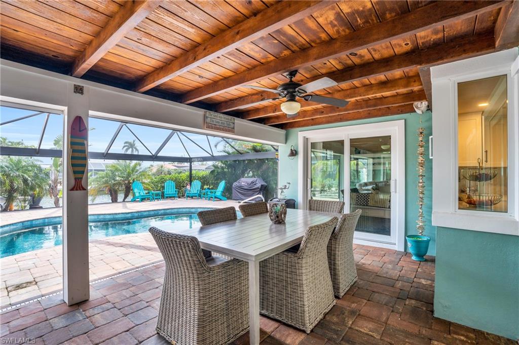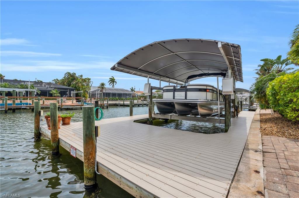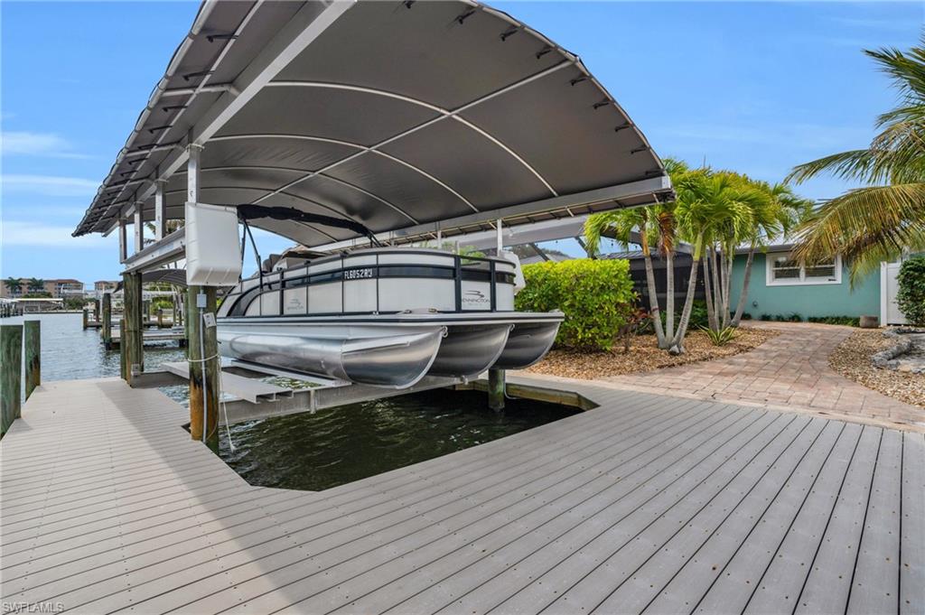 Beautiful Fairview Isles 3BR/3BA Canal Home with Pool and Dock! Located in the desirable Fairview Isles community, this well-maintained canal-front home offers 3 bedrooms and 3 full baths, a sparkling pool, and a covered dock with a 10,000 lb. lift—ideal for up to a 34' boat (approx.). Enjoy low-maintenance living with pavered driveways and walkways, and mature tropical landscaping. The spacious owner’s suite features direct lanai access and a custom walk-in closet, as well as a spacious walk-in shower in Master Bathroom. Both guest bedrooms also include private en-suite baths, perfect for family or visitors. Updates include: 2016: New "Super Screen" wide-view pool cage, pool resurfacing, and exterior paint. 2018: Single-seam aluminum roof 2022: New tile pool border. Enjoy peace of mind with impact windows and doors throughout, plus electric shutters on the lanai for added storm protection. New pool equipment, new A/C, new appliances! The dock features durable Trex composite decking, wrapped pilings, and a covered lift—perfect for boating enthusiasts. Turn left at the end of the canal for quick access to Estero Bay. Head north to reach the area's lively waterfront dining, or cruise south for fast access to the Gulf of Mexico. Fairview Isles also offers deeded beach access, giving you the best of both boating and beachside living!