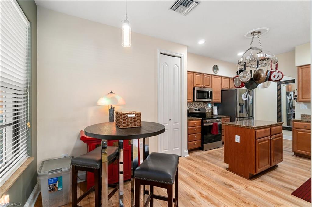 **No Stairs** Experience comfortable Florida living in this spacious first-floor condo featuring 3 bedrooms and 2 bathrooms across 1,744 square feet. Enjoy upgraded LVP flooring throughout, a bright open layout, and newer stainless-steel appliances. The home offers a screened-in lanai, a 1-car garage, and is set in a desirable non-gated community with resort-style amenities—including a large pool, fitness center, and community clubhouse. Perfectly located close to major highways, Waterside Shops, Seagate Beach, Mercato, and vibrant Downtown Naples, this residence is ideal for those seeking convenience and lifestyle. Families will appreciate access to a top-rated school system. Don’t miss the opportunity to own a move-in-ready home in the heart of Naples!