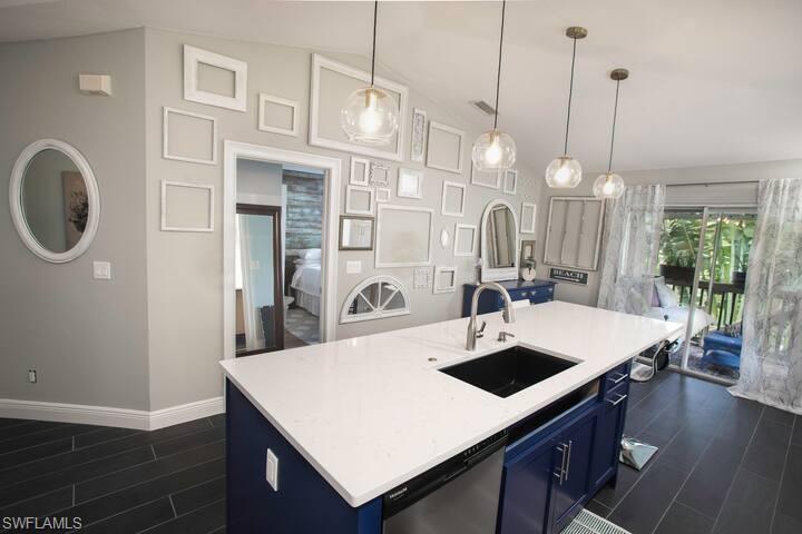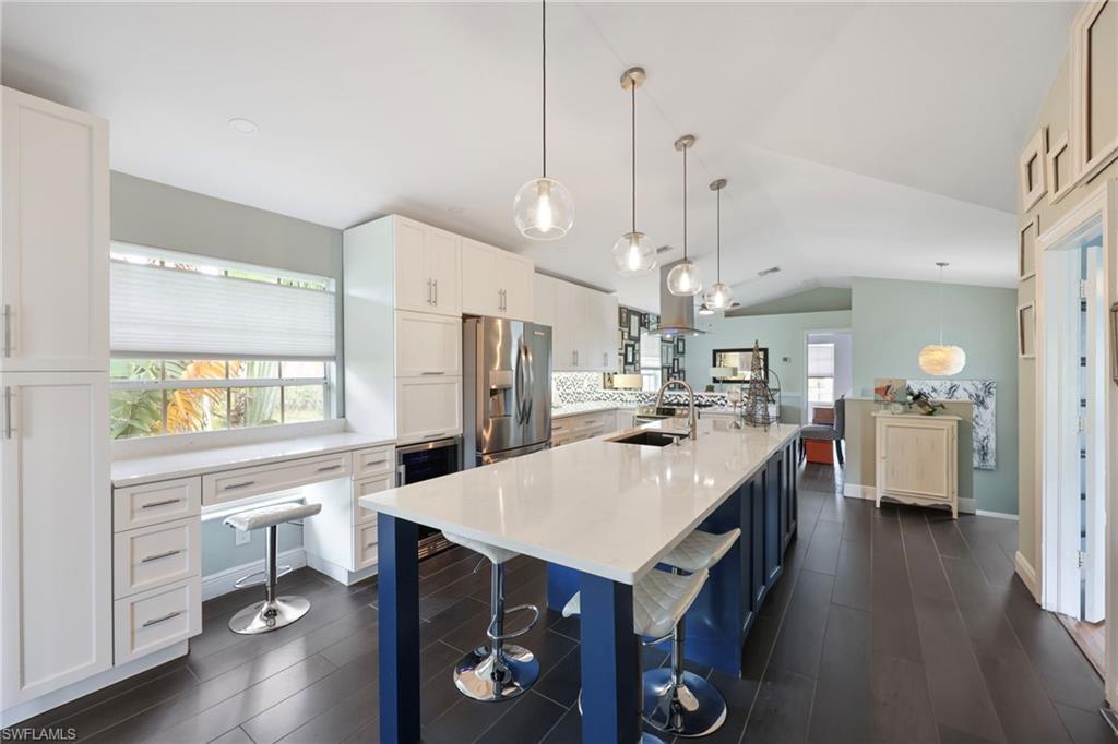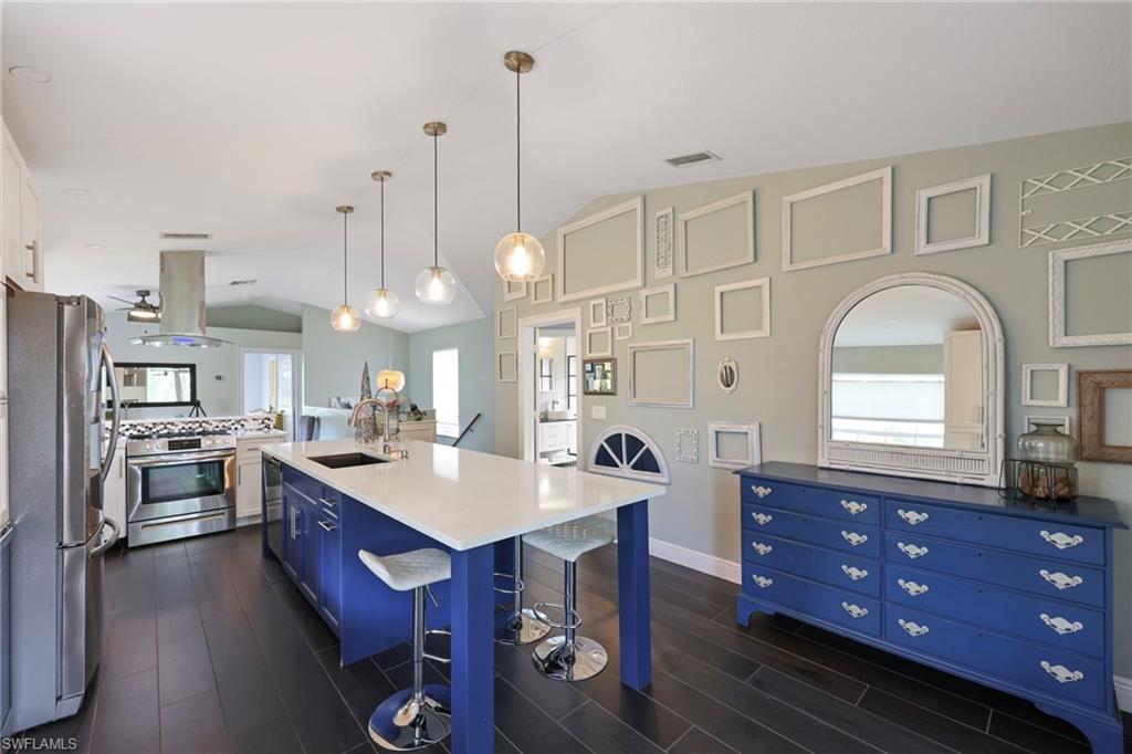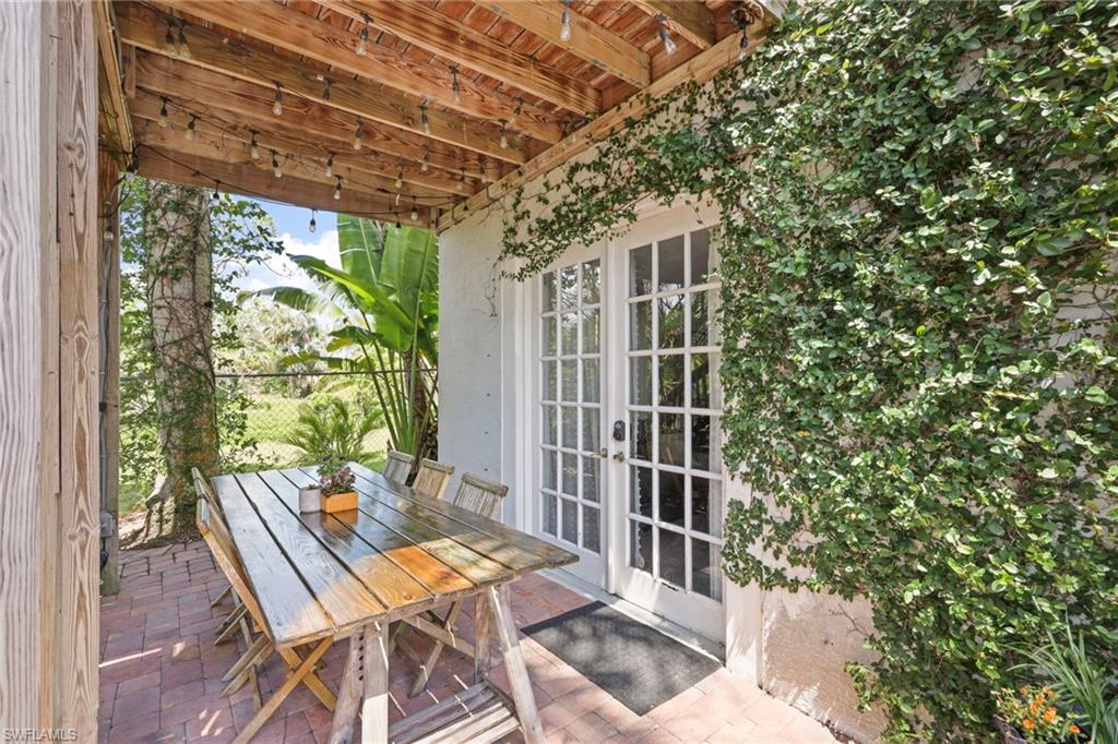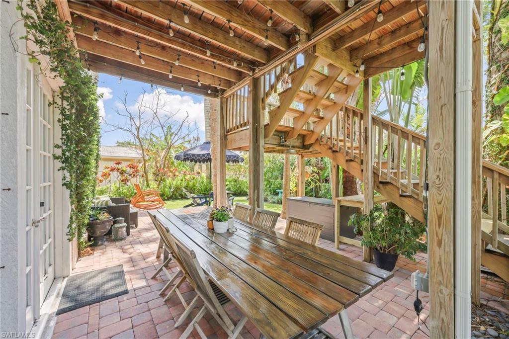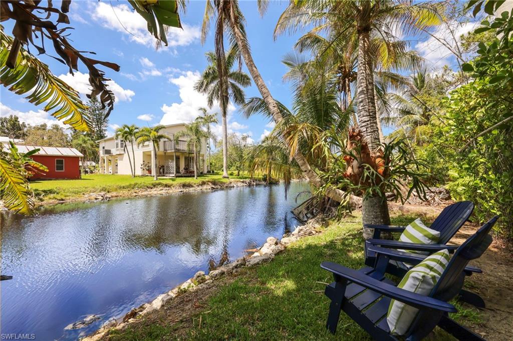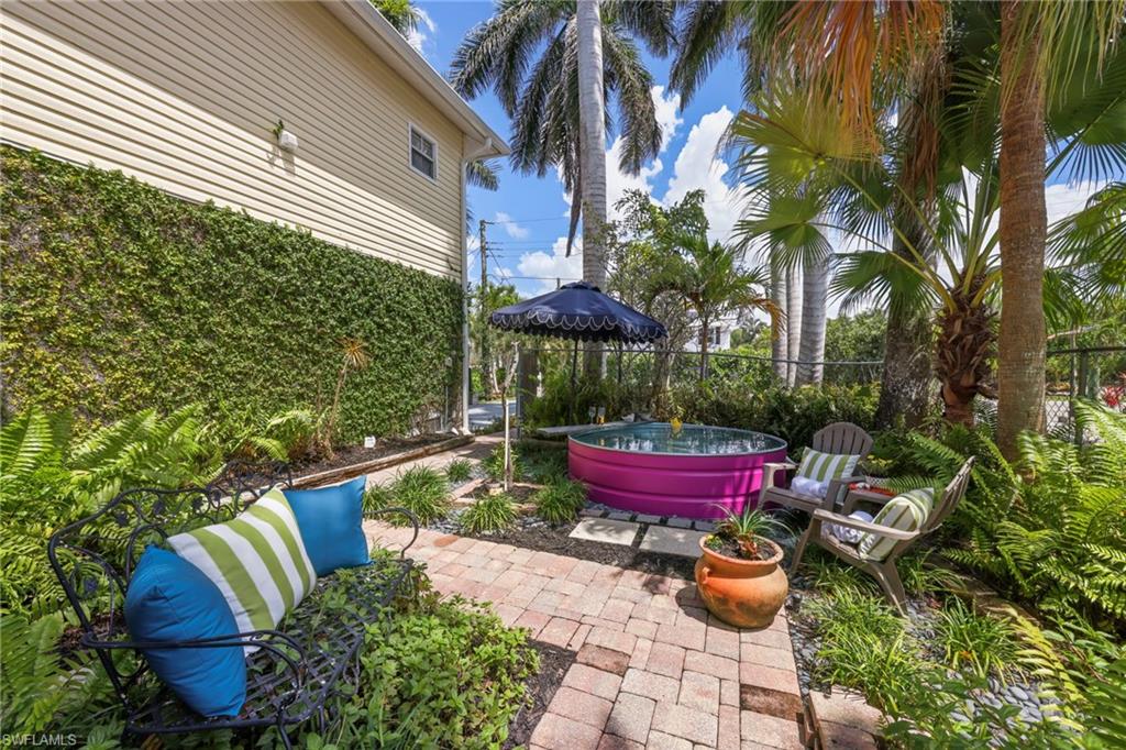 Motivated Seller on this INVESTOR READY home. Tucked away at the end of a quiet, dead-end street in the vibrant Bayshore Arts District, this 2/2 with bonus studio apartment is an income producing oasis. Currently operating as a successful short-term rental, this home is ready to keep earning for you—or become your own private escape (or both!). Enjoy total flexibility with two upstairs bedrooms, each with a private ensuite, plus a separate 1-bedroom, 1-bath efficiency suite on the lower level—perfect for guests, extended family, or maximizing rental income. Everyday convenience includes a one-car garage and washer/dryer in the garage. Step inside to an updated kitchen featuring a stunning 10-foot island—perfect for gathering friends and family or hosting unforgettable dinner parties. Enjoy new stainless appliances, a wine fridge, and plenty of storage—ideal for the chef in your life. Head outside and dine under the stars at the 10-foot farmhouse table, glowing under string lights. This is a special place your friends and family will want to visit again and again. Just minutes to the beach, Old Naples, the Bayshore boat launch, Celebration Park, Naples Botanical Garden, and plenty of pickleball, this home puts you at the center of it all—while giving you a private, peaceful retreat. Up in the treetops and surrounded by lush gardens filled with flowering trees and majestic king palms, you'll enjoy daily visits from songbirds, lake bass, turtles, and even the occasional iguana! Launch your kayak right from the backyard, cast a line in the lake, or simply unwind in your fully fenced sanctuary—perfect for pets and total privacy. you’re soaking in the 8x2-foot plunge pool, lounging by the fire pit, napping in the hammock ,or rinsing off under the stars in your outdoor shower, you’ll find endless ways to relax and recharge. This turnkey home is ready for its next chapter and new family. Don’t miss your chance to own this truly unique Naples retreat - where serenity, adventure, and unbeatable location come together. Schedule your private tour today!