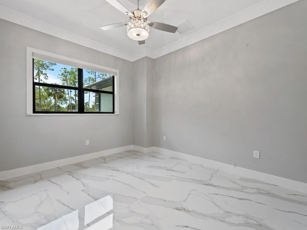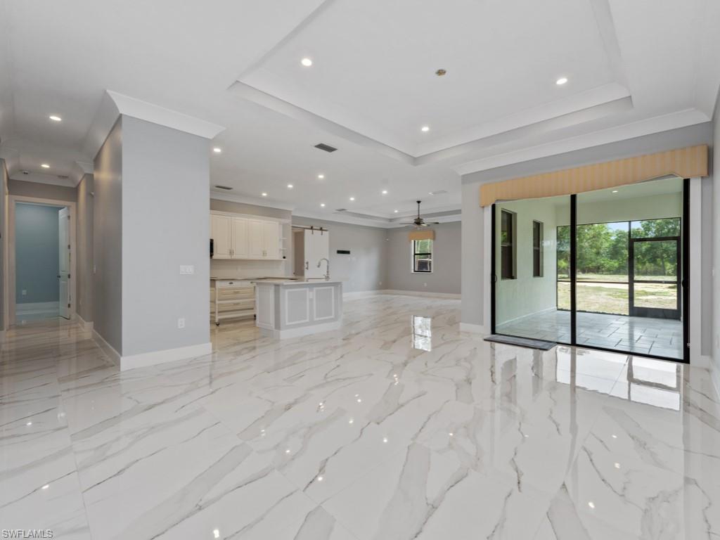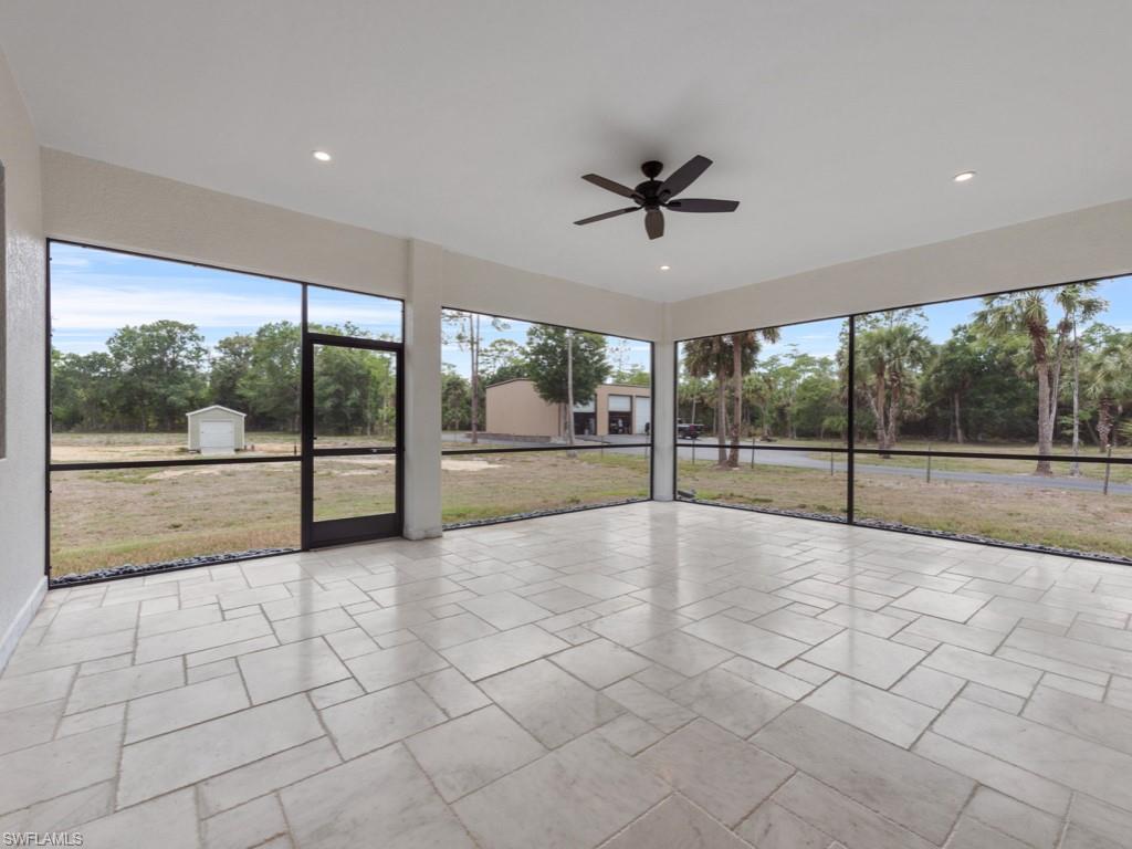 Why pay new construction prices when you can have all the upgrades and modern touches—without the wait? This beautifully maintained home, only three years young, offers all the amenities of a new build and sits on a fully fenced, almost 2.5-acre lot with a private automated entry gate, offering space, privacy, and endless possibilities. Step through glass double doors into a bright, open-concept layout where 24” porcelain tile flows seamlessly throughout, giving the home an elegant and cohesive feel. The expansive living area offers incredible flexibility for furniture arrangement and entertaining. Hosting is a breeze in the oversized dining area that easily accommodates large gatherings. At the heart of the home is a chef’s dream kitchen featuring upgraded appliances, pristine white quartz countertops, soft-close cabinetry, and sliding shelves for maximum storage and convenience. With abundant counter space and a wide-open layout, this kitchen is both functional and stunning. The spacious master suite features a tray ceiling, large window for natural light, and a luxurious ensuite bath with dual sinks, a freestanding designer soaking tub, and a couple’s walk-in shower with dual shower heads. All bedrooms feature upgraded custom closet shelving, and a split-bedroom design ensures guest privacy. One bedroom even has its own private bath—ideal for visitors or multigenerational living. Working from home? You’ll love the dedicated office space with French doors—quiet, private, and full of natural light. Additional highlights include impact-resistant windows, a whole-house reverse osmosis water purification system, and plenty of room on the cleared lot to add a pool, workshop, or garage for RVs or construction equipment. Located just four blocks from the new shopping center with a supermarket, restaurants, beauty salon, and more—and with easy access to Golden Gate Blvd—you’re close to everything, while still enjoying the peaceful privacy of estate living.