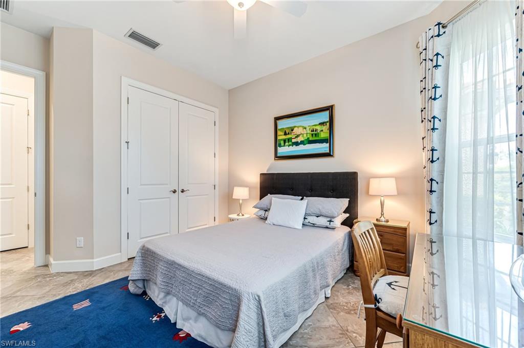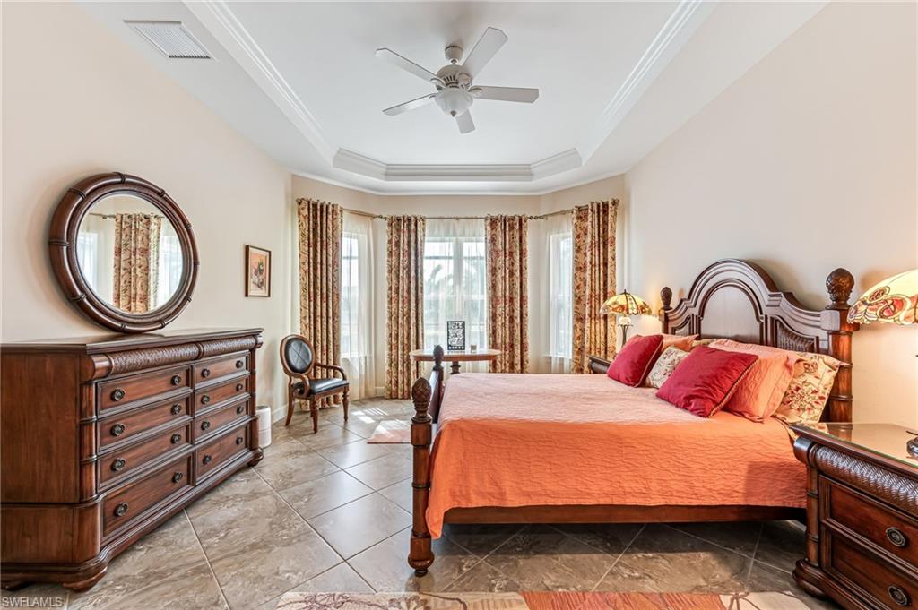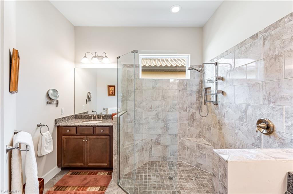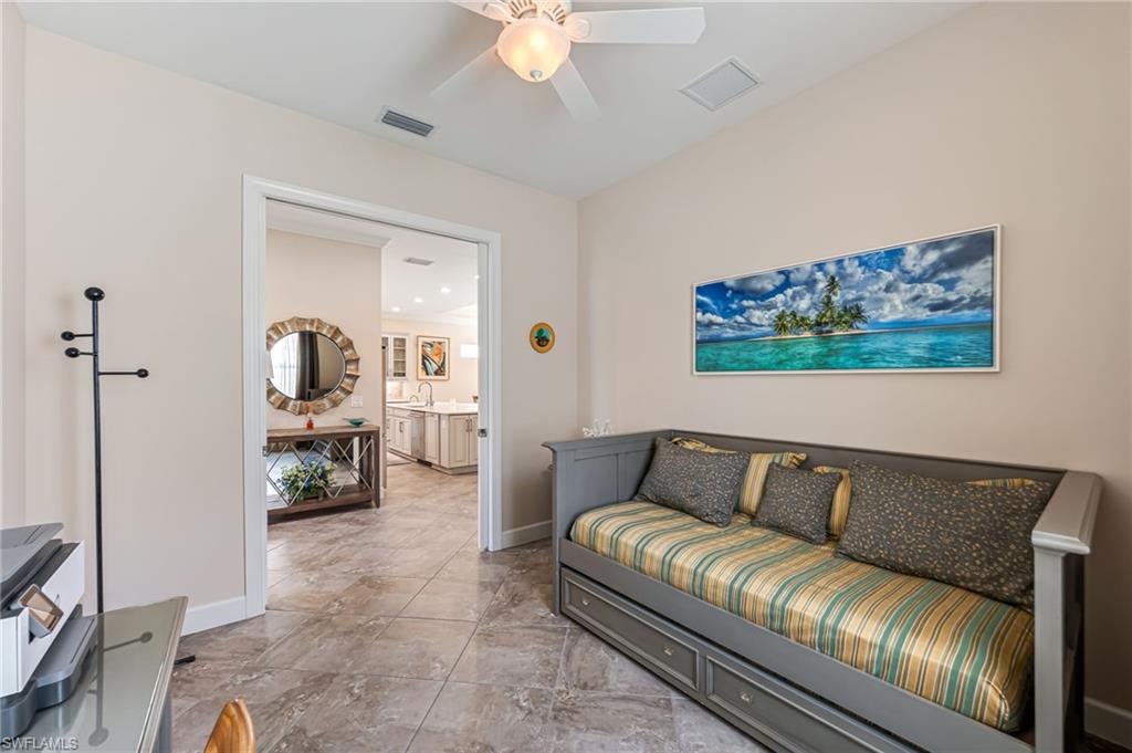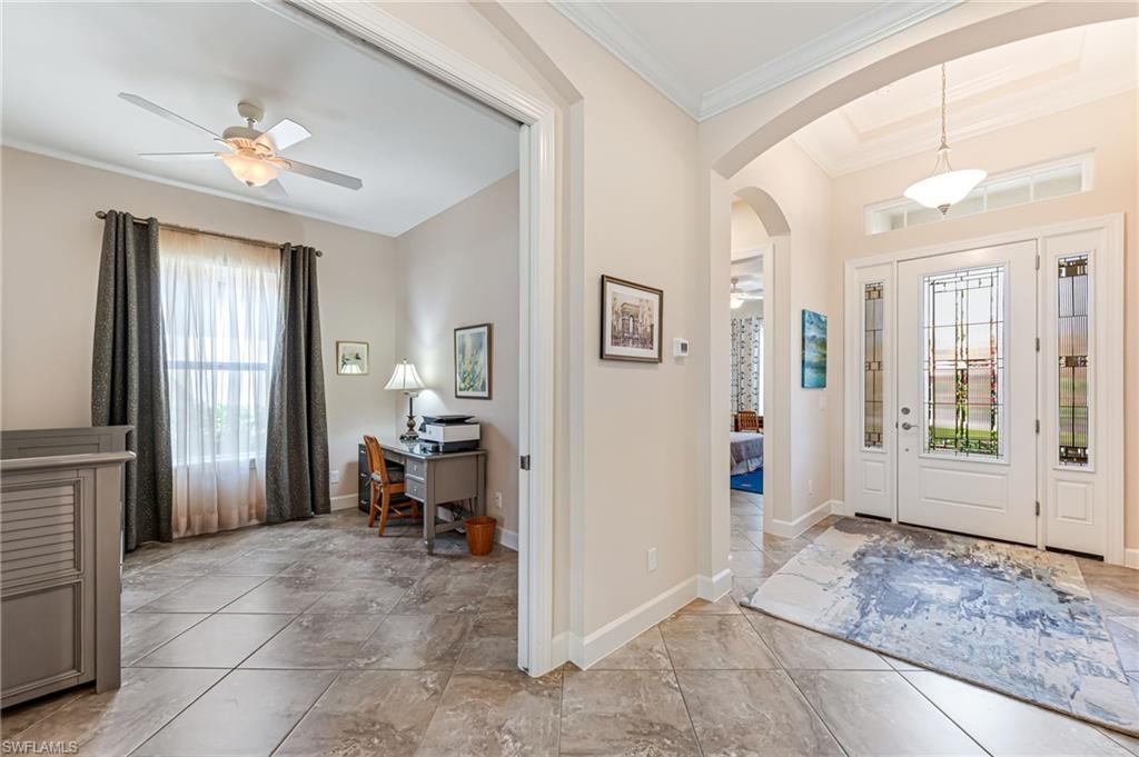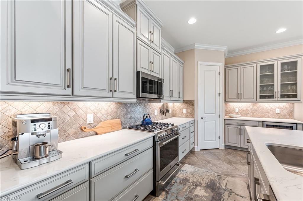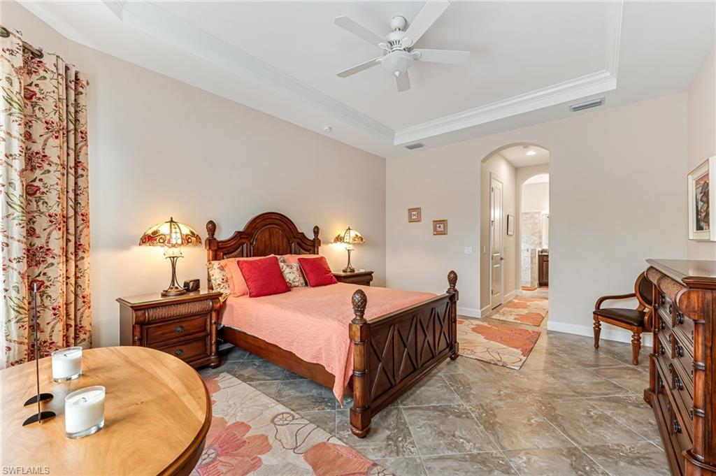 Move-in ready beautiful 2 Bed Plus Den, 2 Full Baths, 2 car garage with Furnishings Negotiable! Steps from the Clubhouse! The large outdoor extended lanai area includes an outdoor kitchen for entertaining, saltwater gas heated pool and a south eastern water view with added lush landscaping! Open great room and gourmet kitchen with quartz tops and wine cooler with natural gas cooking. The large primary suite has two walk-in closets and a large bathroom with glass shower and dual sinks. The guest bedroom is set apart from the primary suite for privacy. Large laundry room with laundry sink and plenty of cabinetry. Impact doors and windows and storm smart shutters! Tile on the diagonal throughout, tray ceilings and crown molding, tankless water heater, whole home surge protection and an electric car plug in. Esplanade at Hacienda Lakes resort style community with low HOA fees and close proximity to Marco Island and Downtown Naples beaches, dining and shopping. The clubhouse includes a lifestyle director with a fitness center, tennis and pickleball courts, pool and hot tub, gathering social room with catering kitchen and a dog park.
