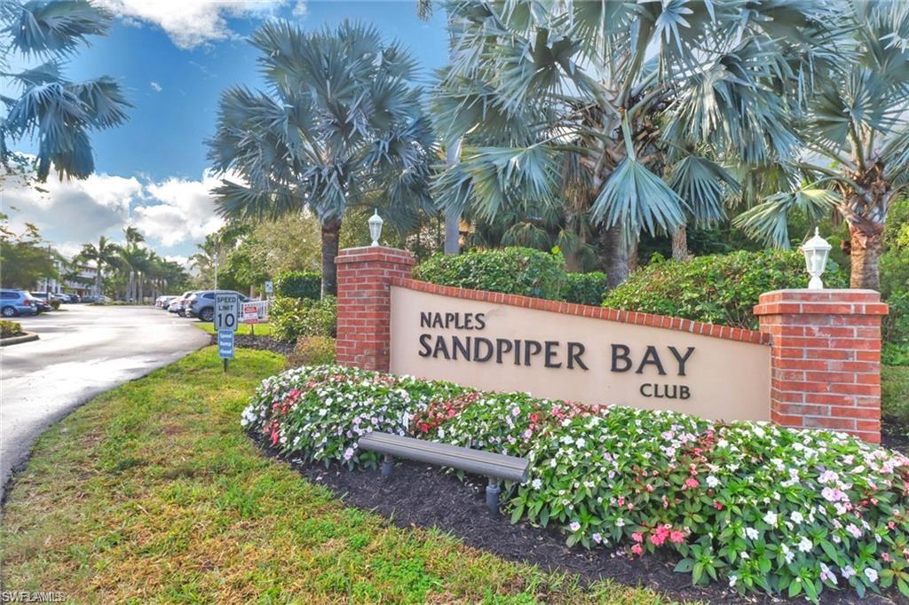 Huge investment opportunity in the heart of Naples! Welcome to Naples Sandpiper Bay Club—where location, lifestyle, and potential come together in this charming FIRST floor 2-bedroom, 2-bathroom condominium. Nestled along the quiet Haldeman Creek canal. The light-filled, split-bedroom layout features a kitchen with wood cabinetry, flowing seamlessly into the open living and dining area—ideal for entertaining or relaxing in style. The spacious in-residence laundry room includes built-in cabinets and shelving, offering ample storage. Both bathrooms are well-appointed. Located just minutes from the vibrant dining, shopping, and beaches of Downtown Naples—including 5th Ave South, 3rd Street South, Baker Park, and Naples Pier—this home is also steps from one of two beautifully maintained community pools, mailboxes, and a clubhouse featuring a full kitchen, activity room, and outdoor patio. Additional amenities include BBQ areas, cable, water, sewer, and lush 15-acre landscaping—all included in the HOA. With convenient parking right outside the front door, this gem is perfect as a seasonal getaway, full-time residence, or income-generating investment. Ready for your personal touch!